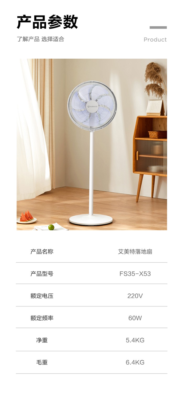【分仓直发包邮】艾美特机械落地扇FS35-X53