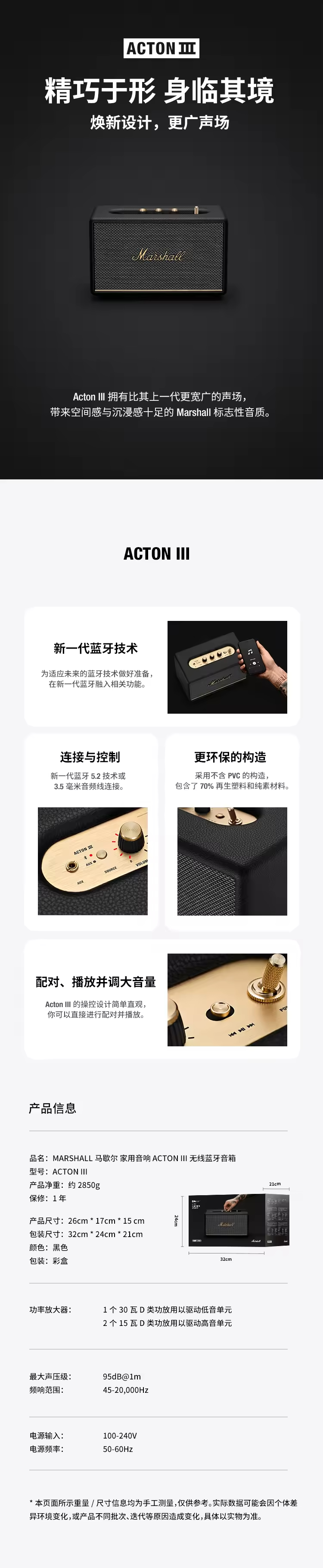 MARSHALL马歇尔 家用音响 ACTON III 无线蓝牙音箱