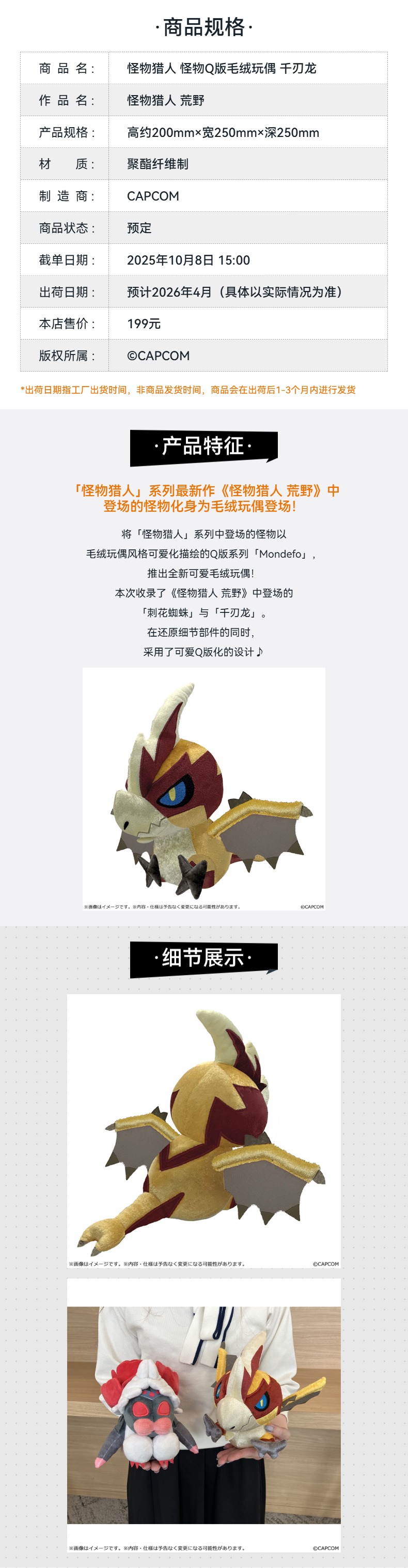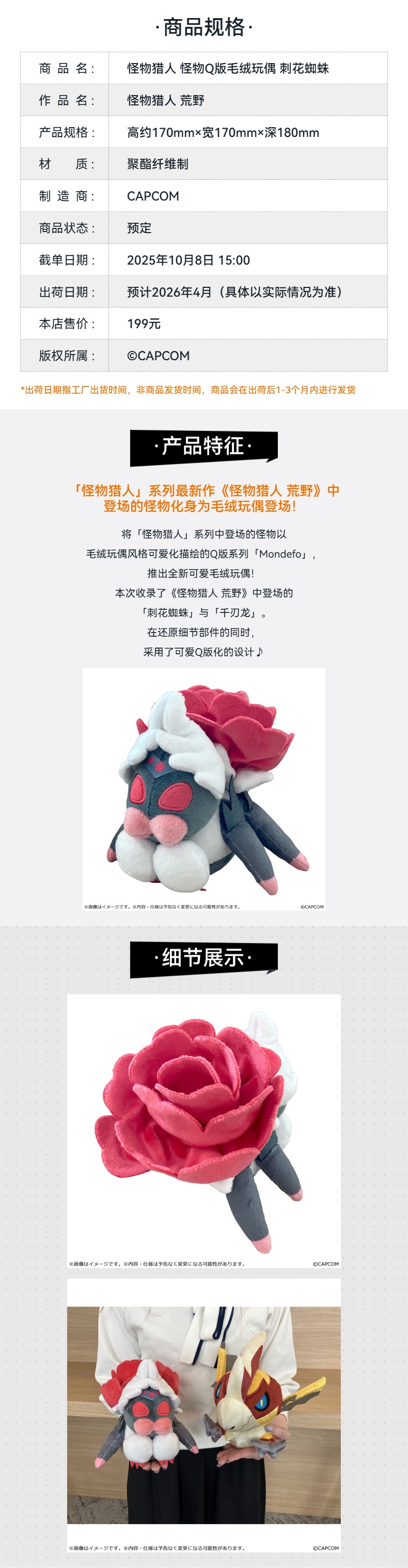 【GSC预售定金】怪物猎人 怪物Q版毛绒玩偶 刺花蜘蛛/千刃龙