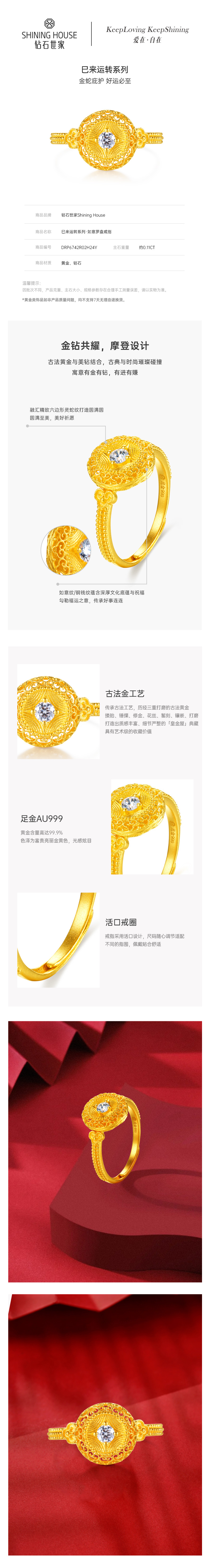 【巳来运转系列】钻石世家 如意罗盘戒指 足金钻石戒指 以象征财运富贵长寿的灵蛇纹融入吉祥元素,黄金与闪耀钻石的时尚设计寓意金蛇庇护 蛇来运转【黄金产品不支持无理由退换货】预计3-5天发货