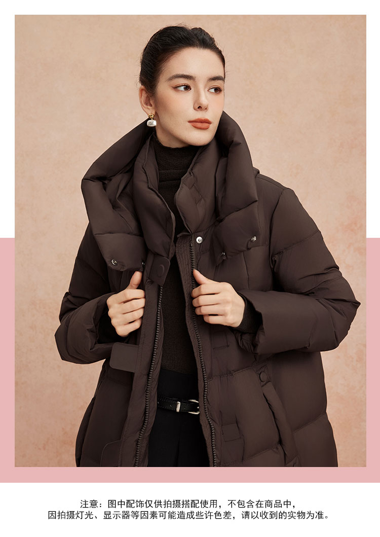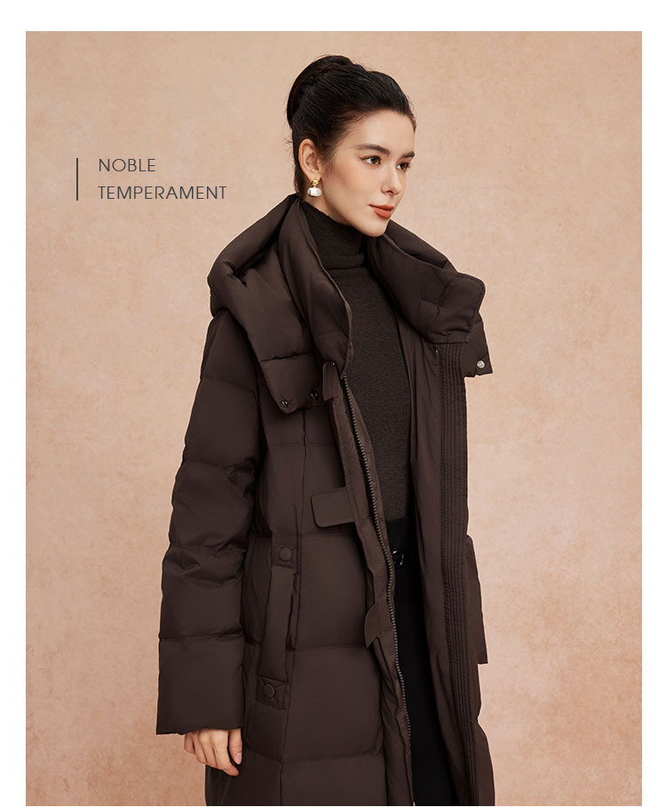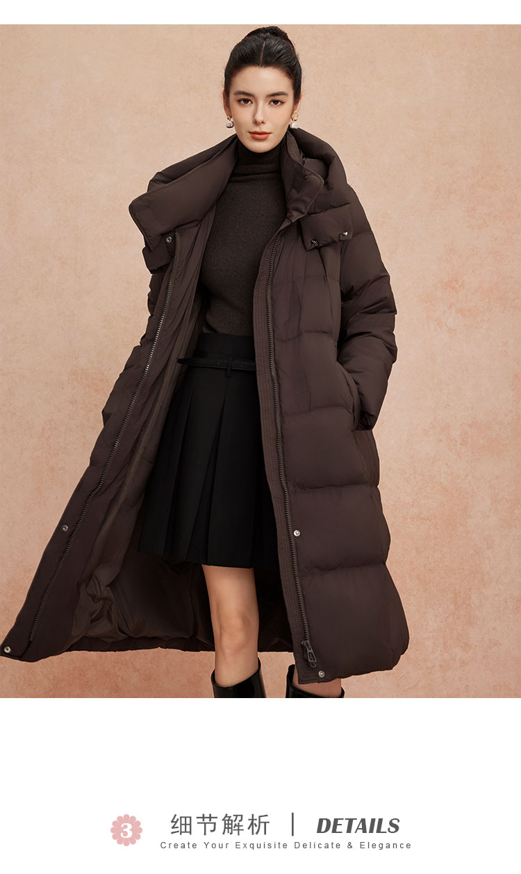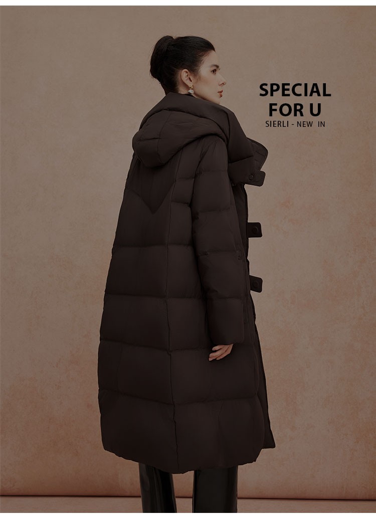 QR010斯尔丽25新款冬季连帽长款休闲面包服宽松加厚90绒时尚减龄羽绒服