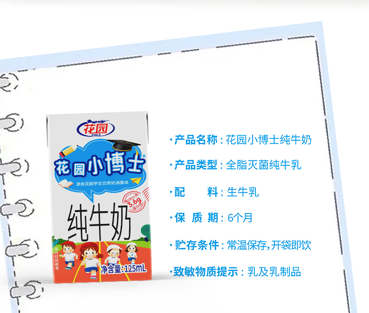 花园1983小博士纯牛奶/1箱(125ml*20盒)生产日期 3月15日左右