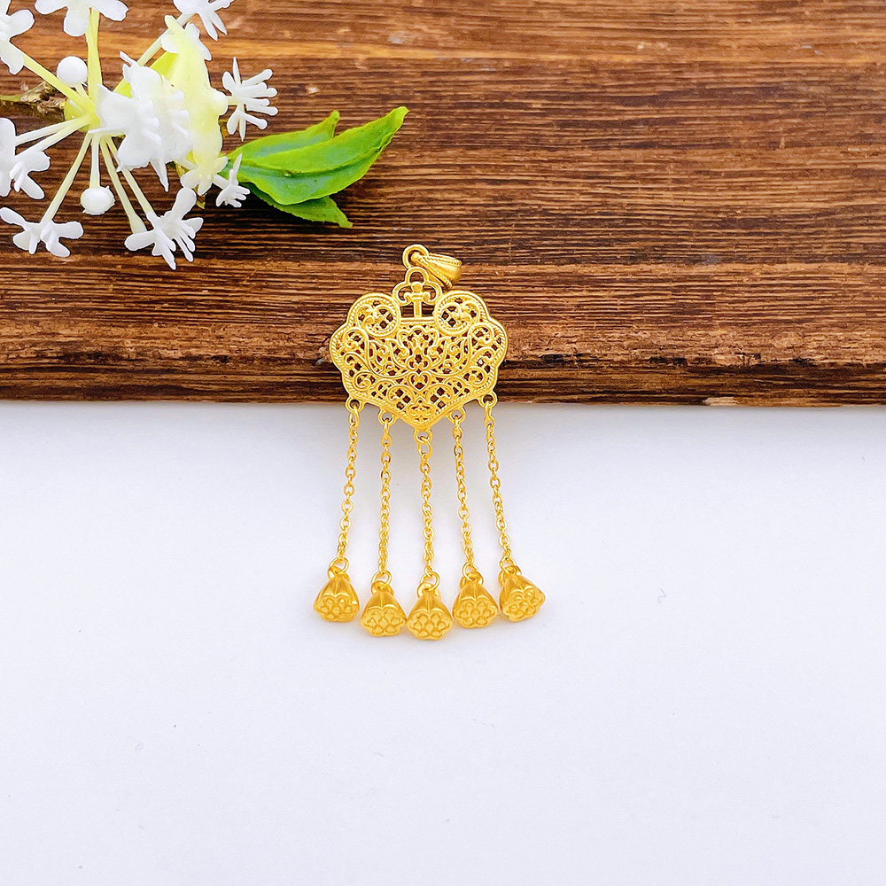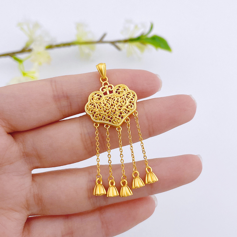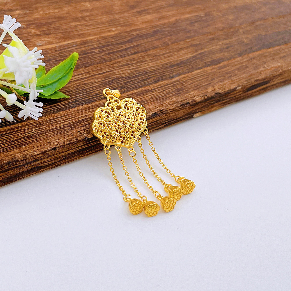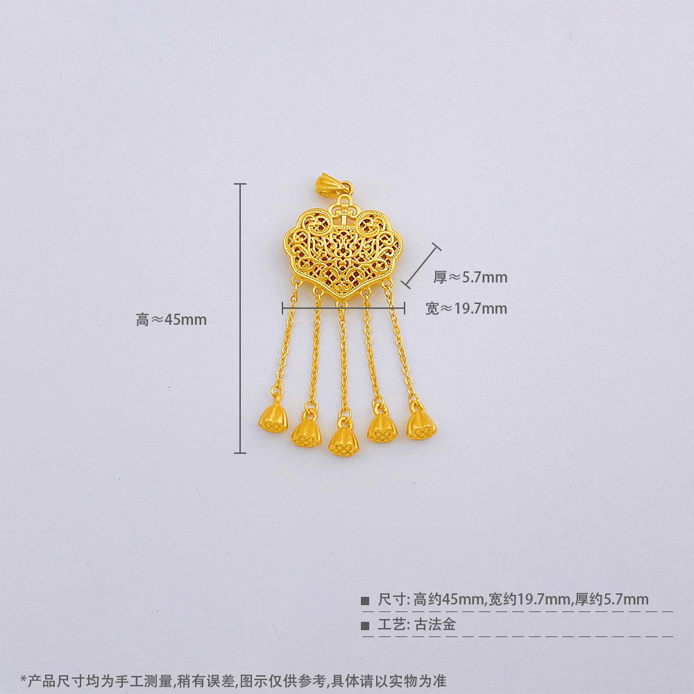 【限时克减150元】足金999.9 古法空心镂空莲花莲蓬流苏如意锁包璎珞锁吊坠(ANWZGFDZ00121-1)(预售产品下单后不退款不退货不换货不补差价)