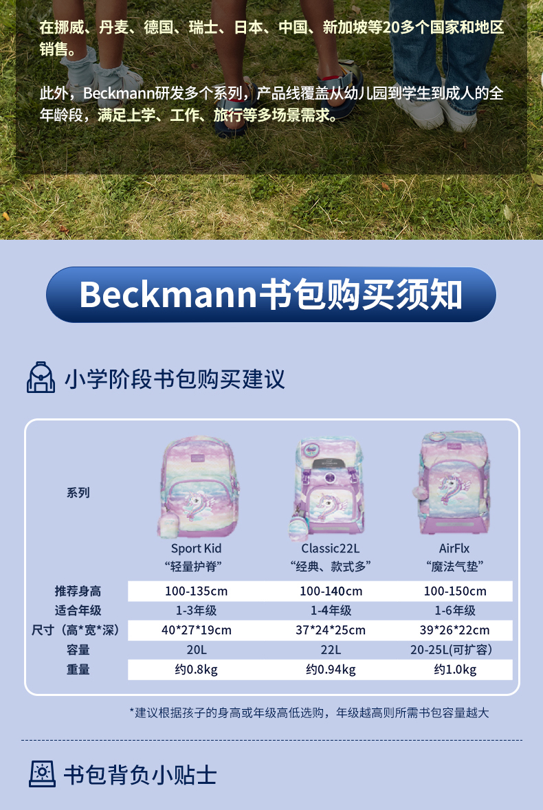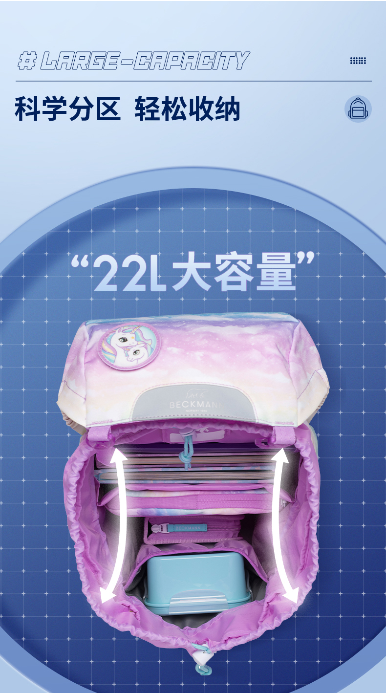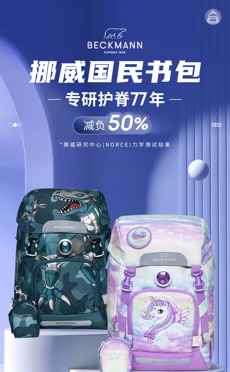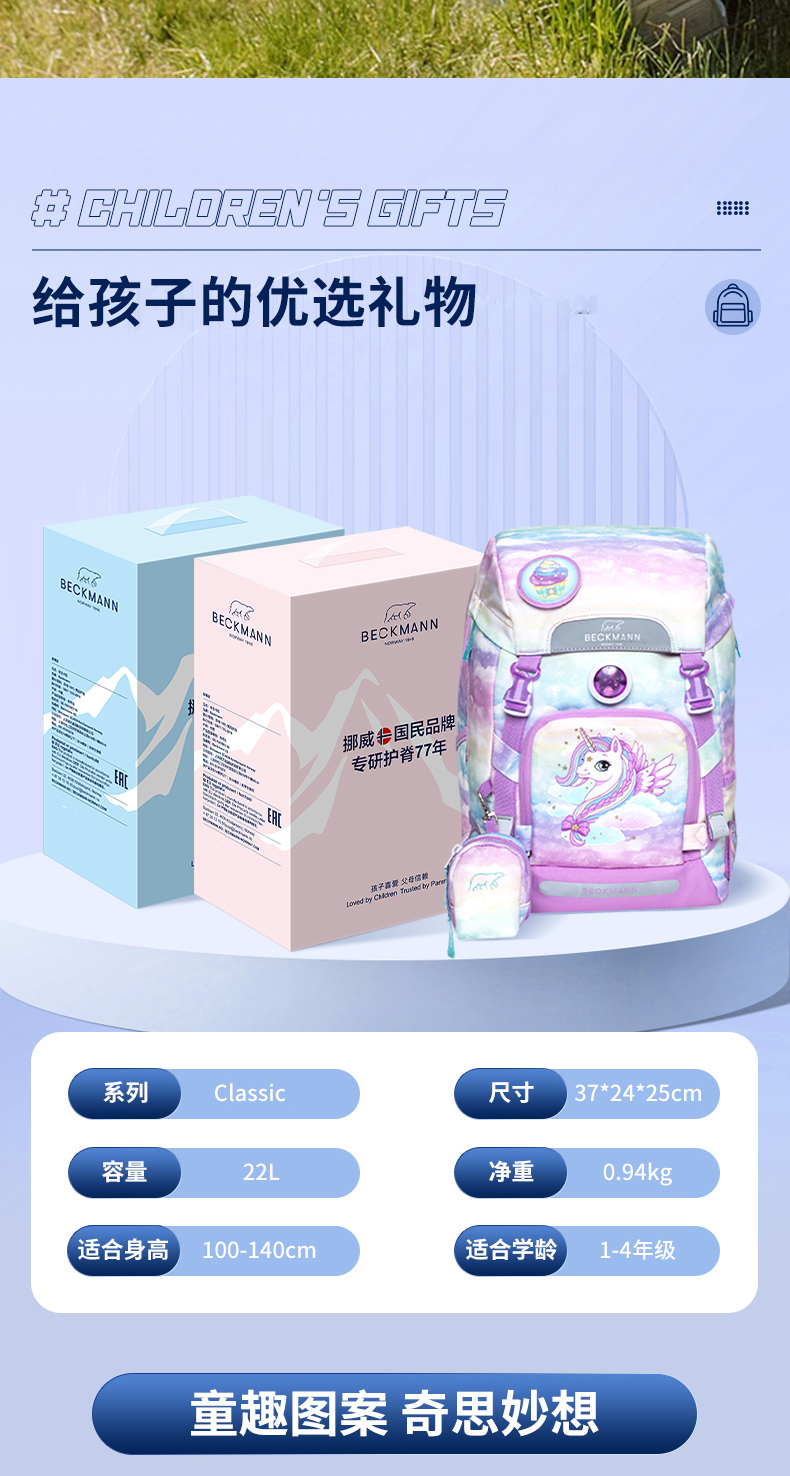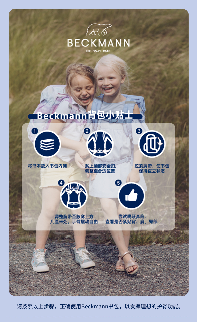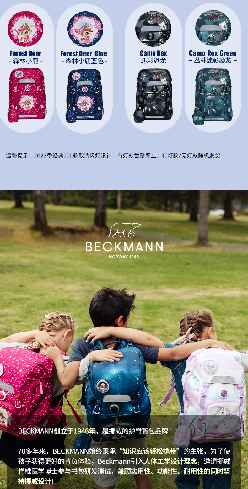Beckmann贝克曼挪威经典22L小学生1-4年级护脊书包男女儿童双肩包(送同款笔袋)