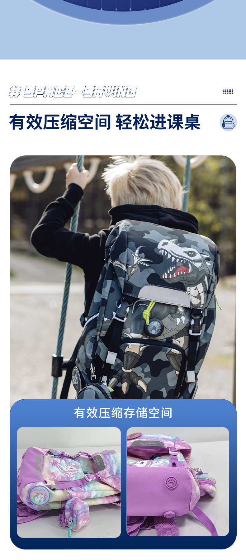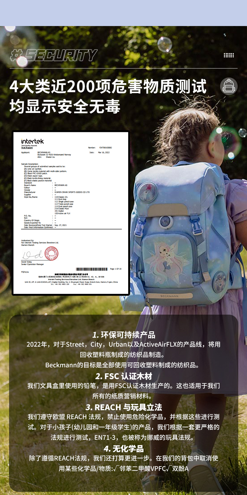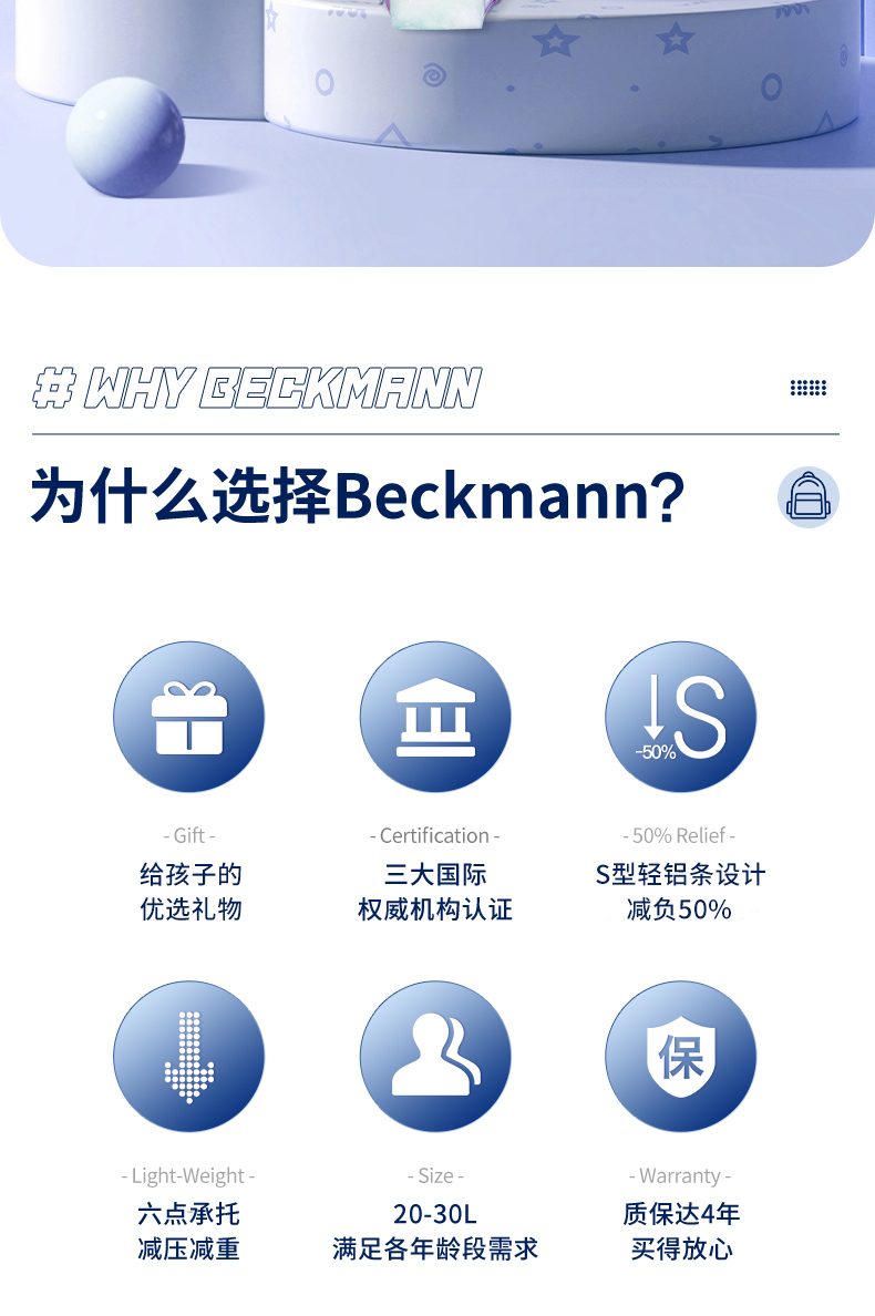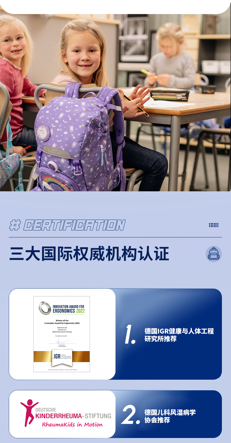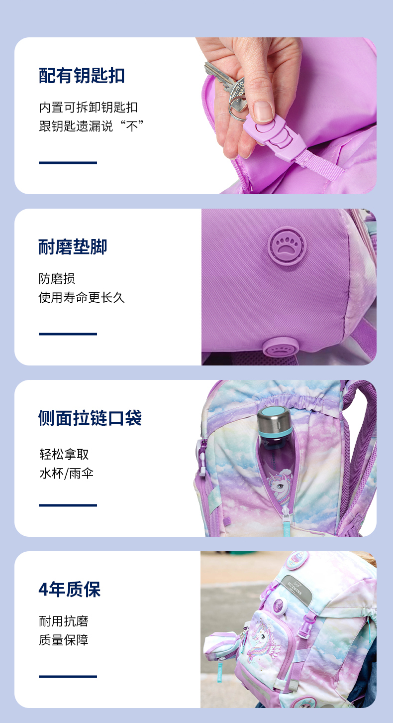 Beckmann贝克曼挪威经典22L小学生1-4年级护脊书包男女儿童双肩包(送同款笔袋)