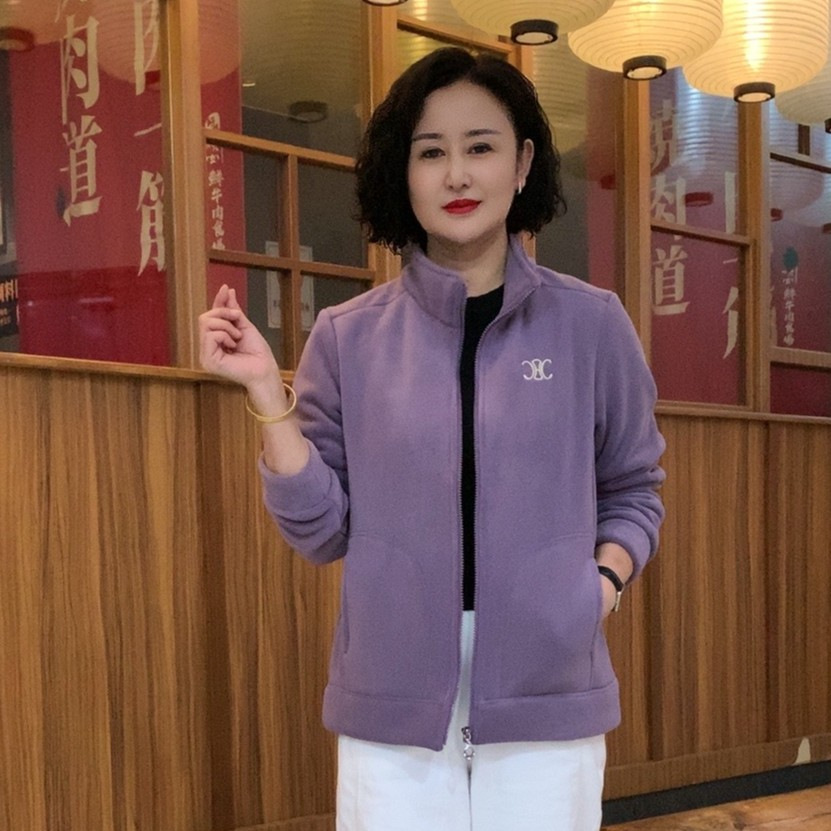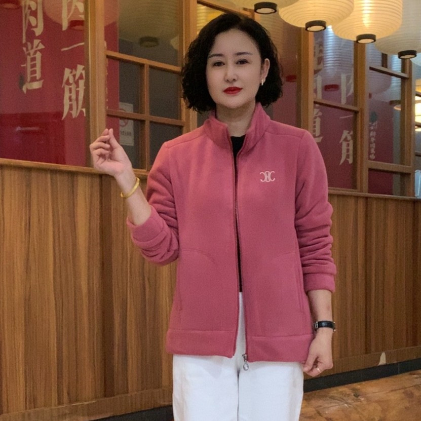 秋冬新款宽松保暖时尚运动休闲加厚外套百搭加绒半高领上衣妈妈装