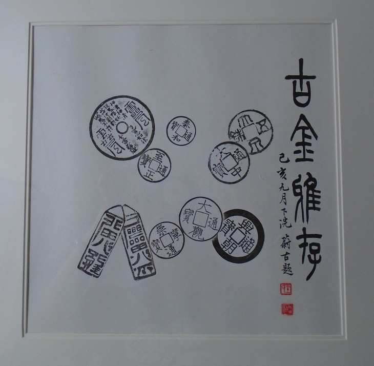 古泉书馆原拓挂件,书馆专职拓工精心拓纸而成,名家题字,精工装裱,超凡脱俗,钱币均为市面难寻的珍惜钱币,每一件都独一无二的精品, 精美绝伦!