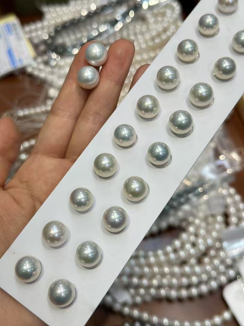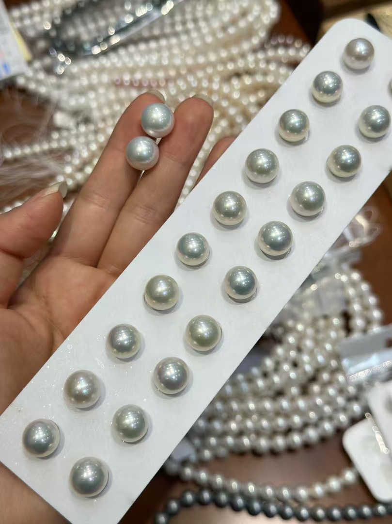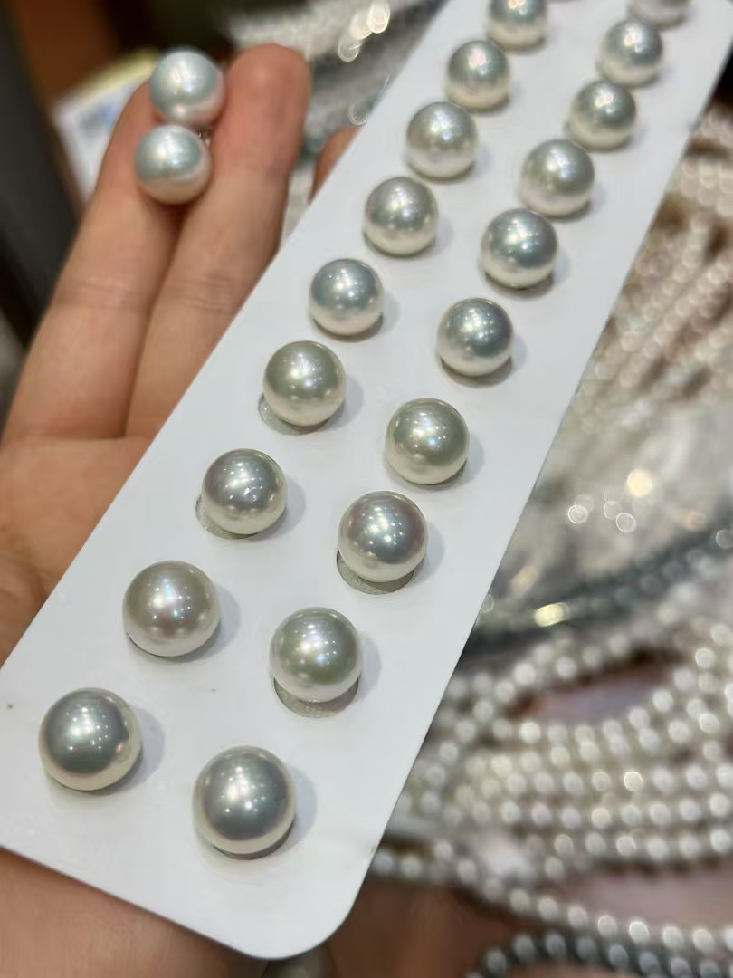11-12mm正圆极光爱迪生耳钉,极光光泽,颗颗正圆饱满,近无暇,不能完全无瑕哈,那是三倍价格,只能是接近无暇。