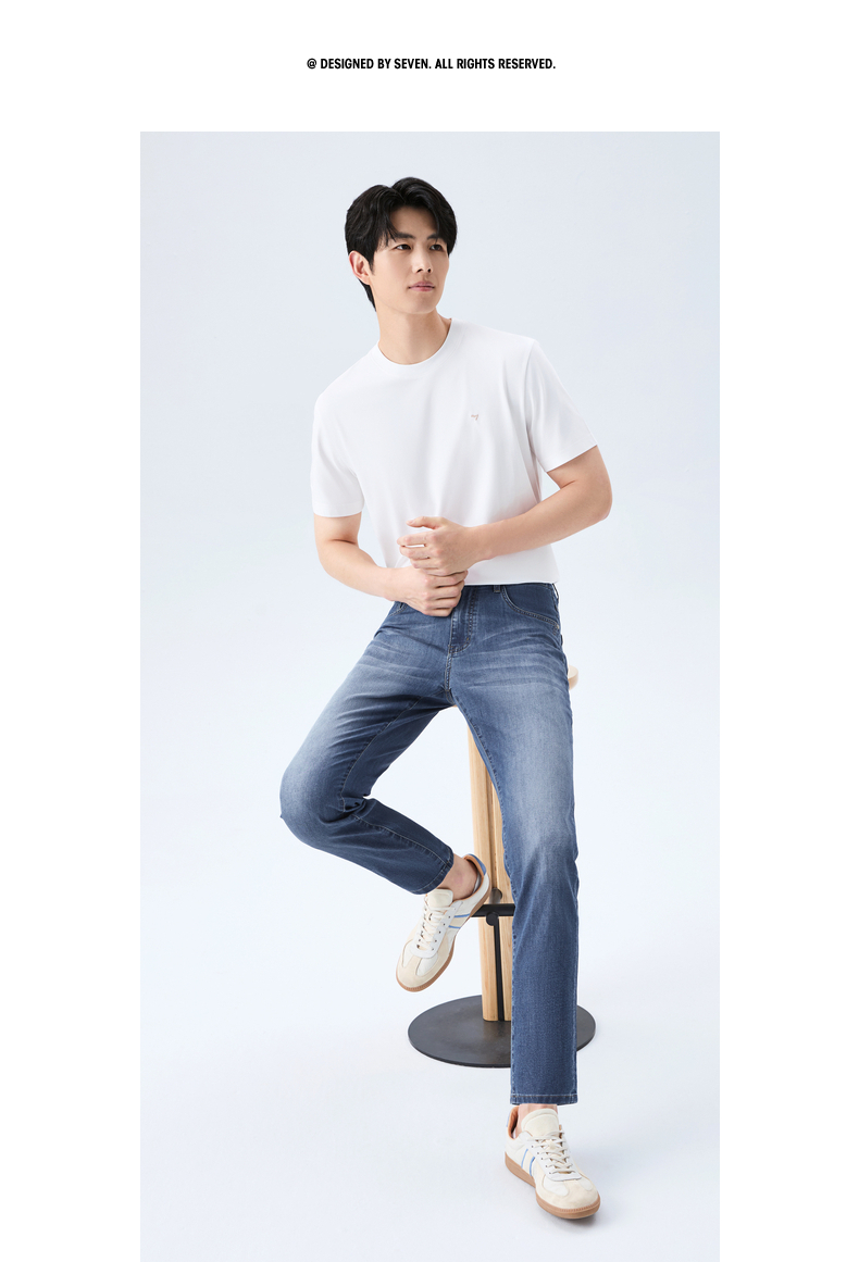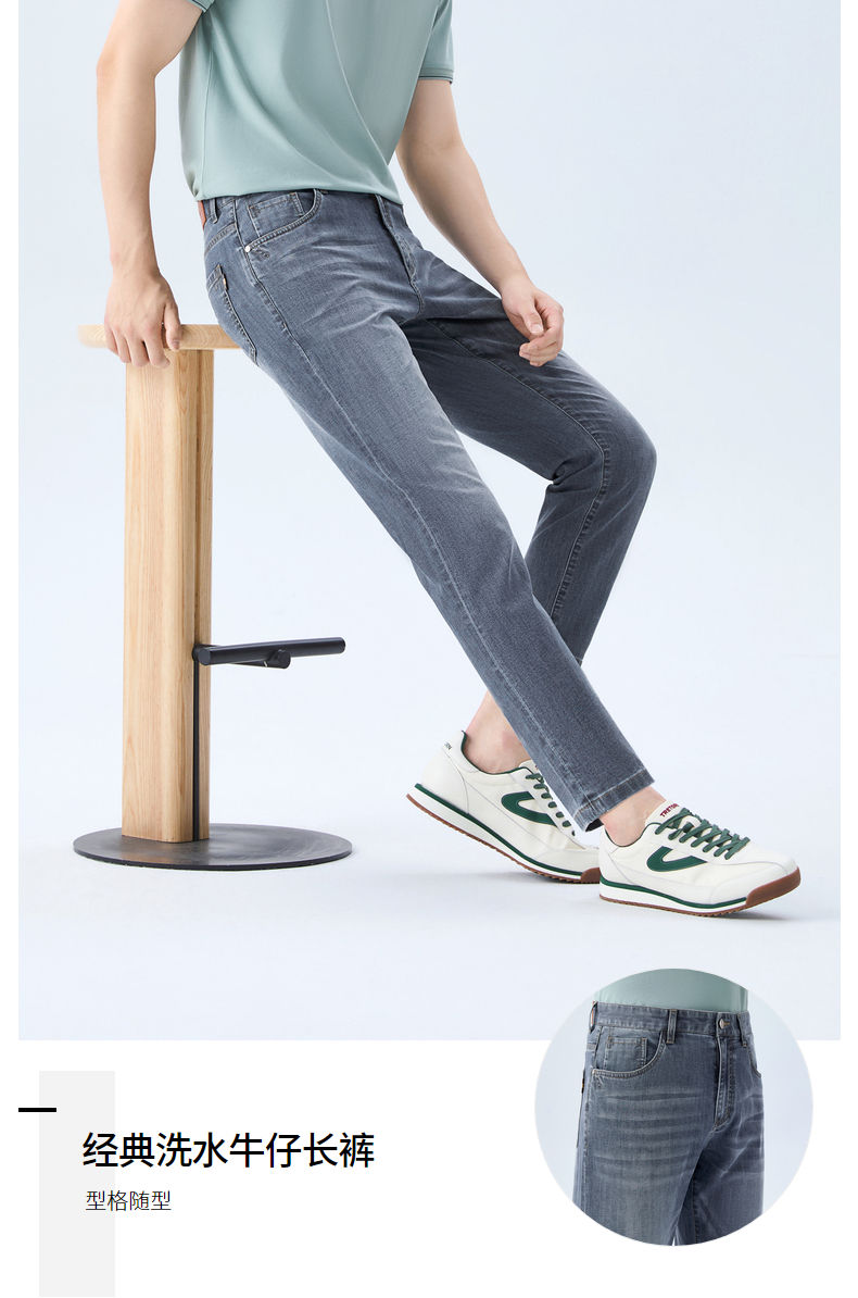 【经典水洗】柒牌牛仔长裤2026夏季新款弹力耐磨洗水九分裤子男130H70990