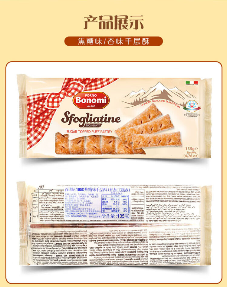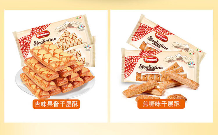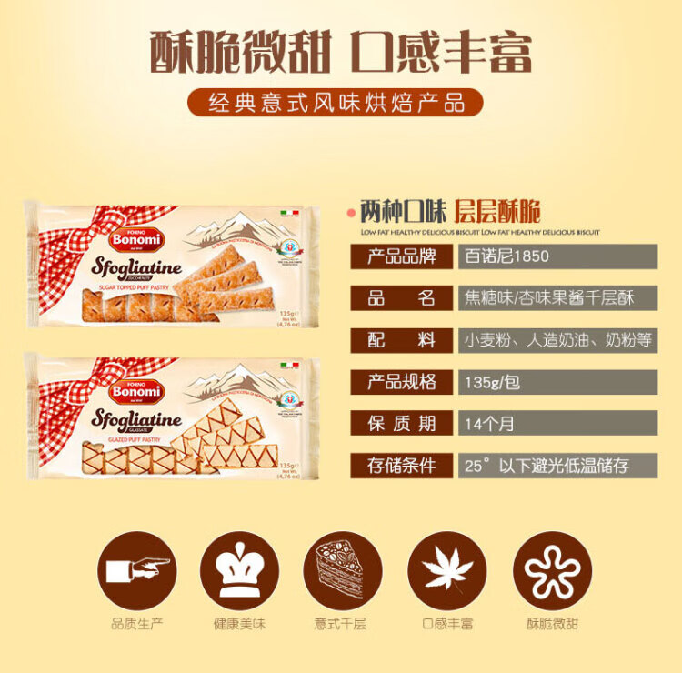 意大利百诺尼1850焦糖味/杏仁果酱千层酥135g 咬一口满满的香甜酥脆口感丰富 058316/050122