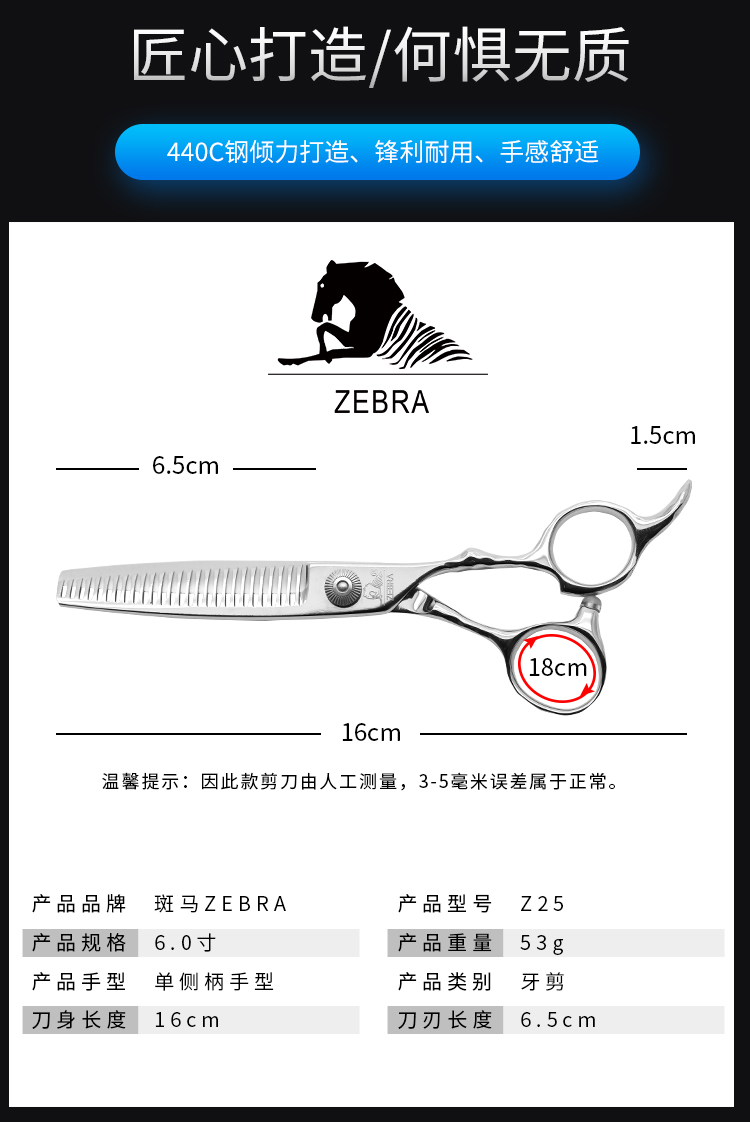 ZEBRA斑马 Z25 牙剪/调量剪//打薄剪/去发量10-15%/ 平齿/27根齿/正刃/6寸