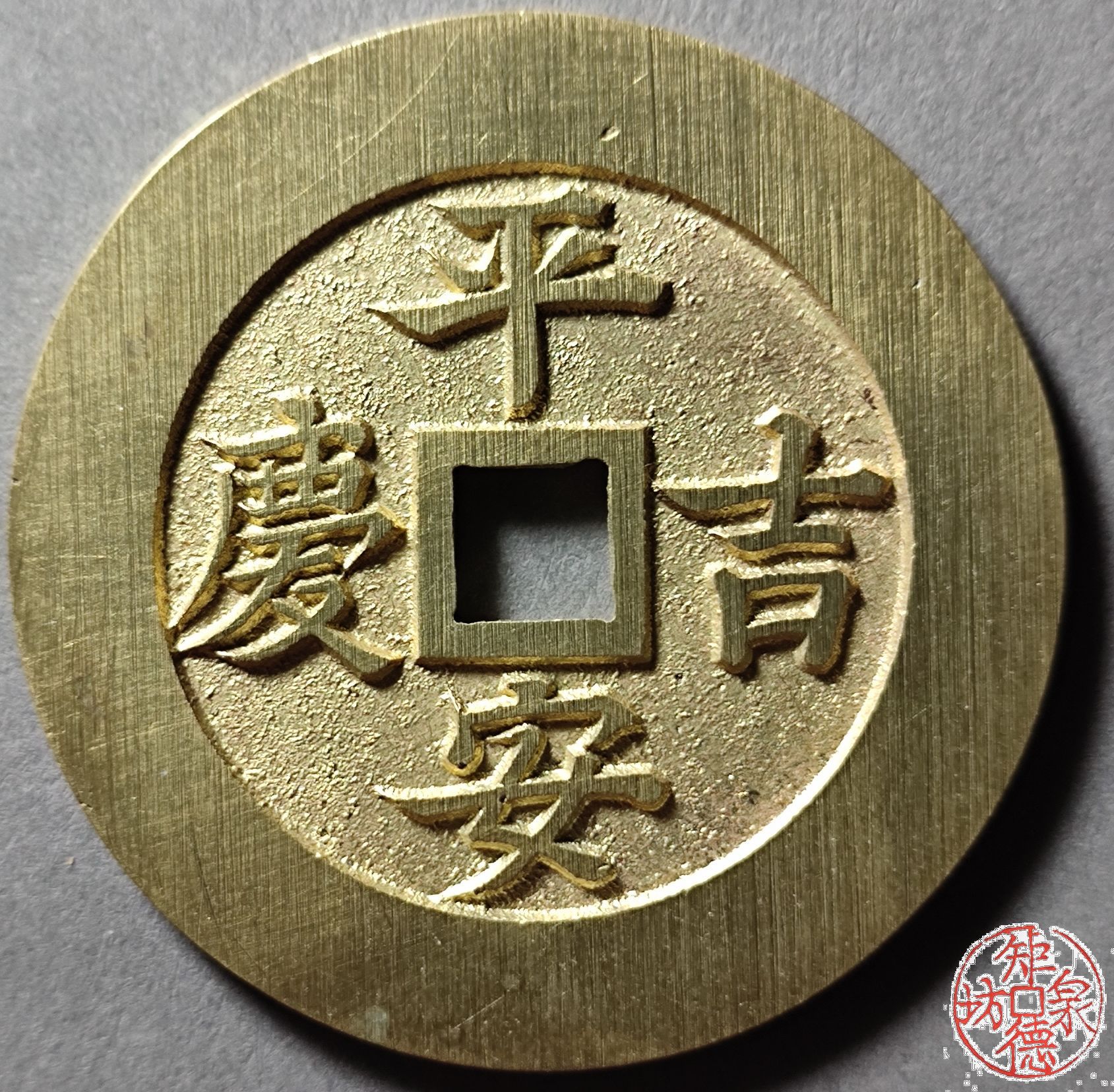 古法文创铸币 平安吉庆背戟罄 文房铜镇 HFH06