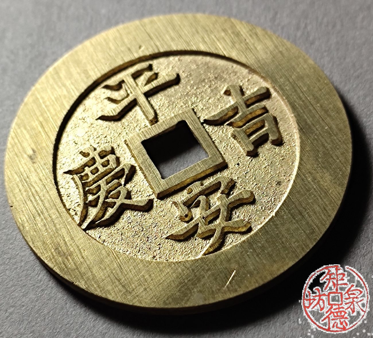 为了尽量还原古代钱币的文字神韵与时代铸造特征,每一枚都进行手工修刀、打磨。会有打磨痕迹、刻刀痕迹,铸造气孔或者微小沙眼,这正是手工与机器制作的区别,并非瑕疵。