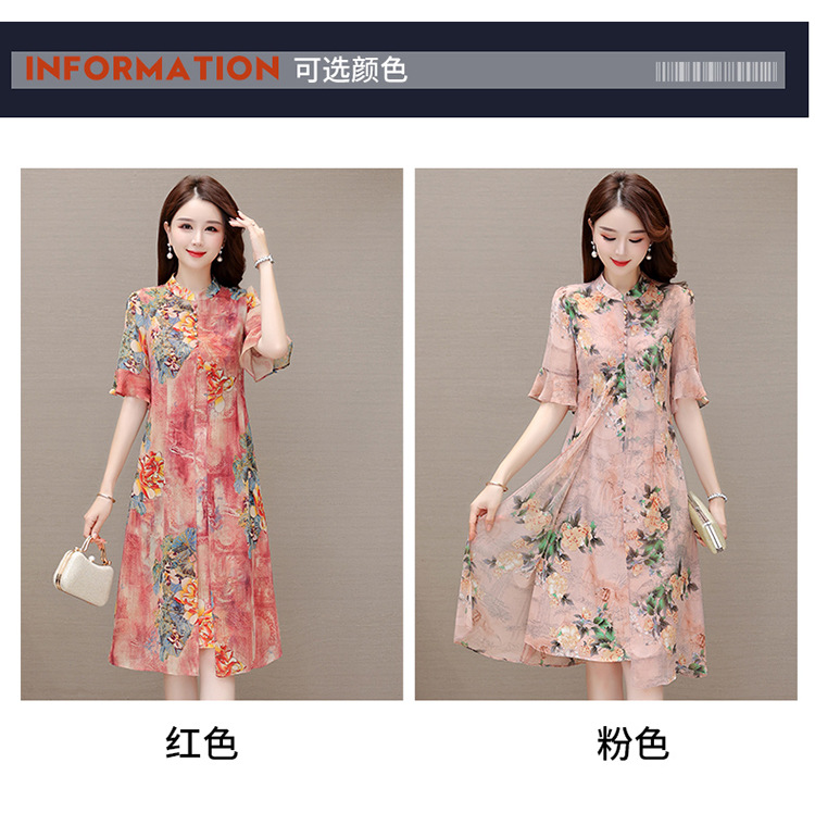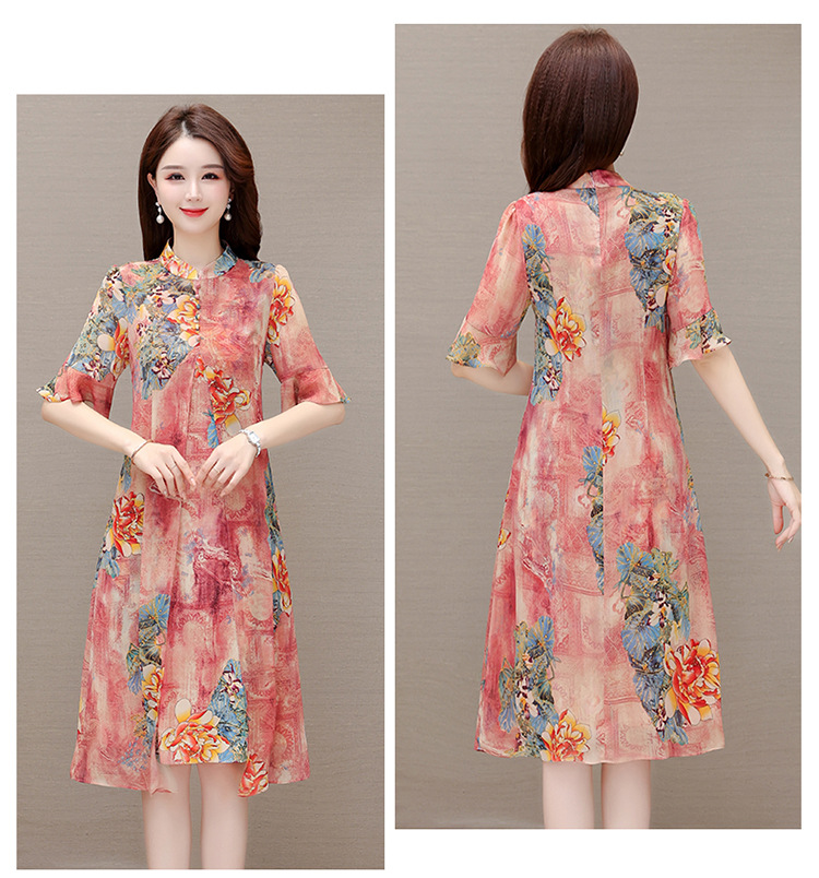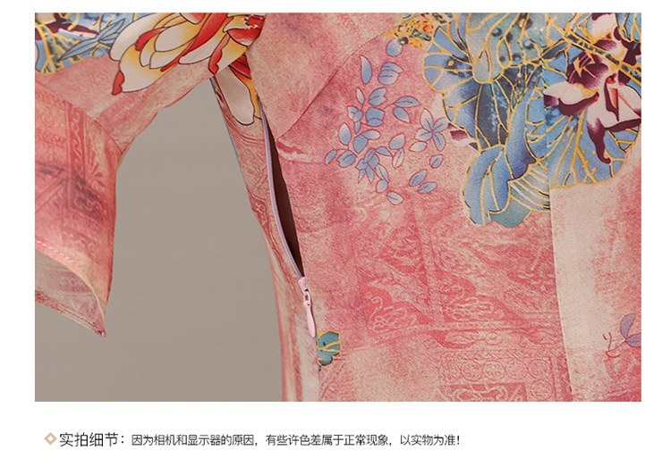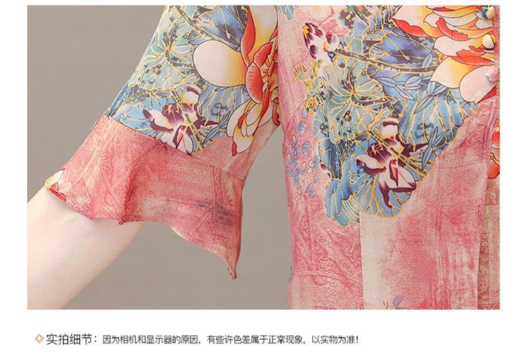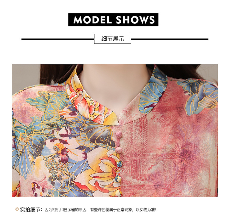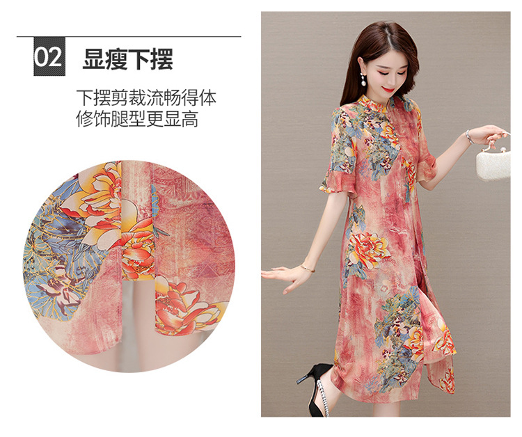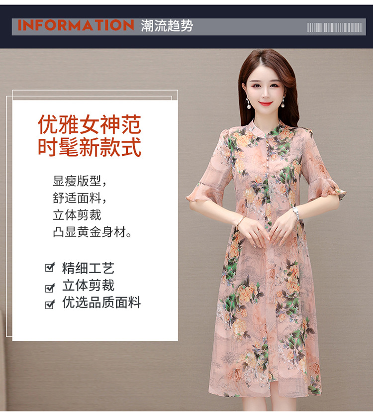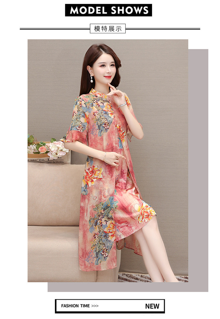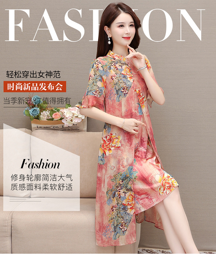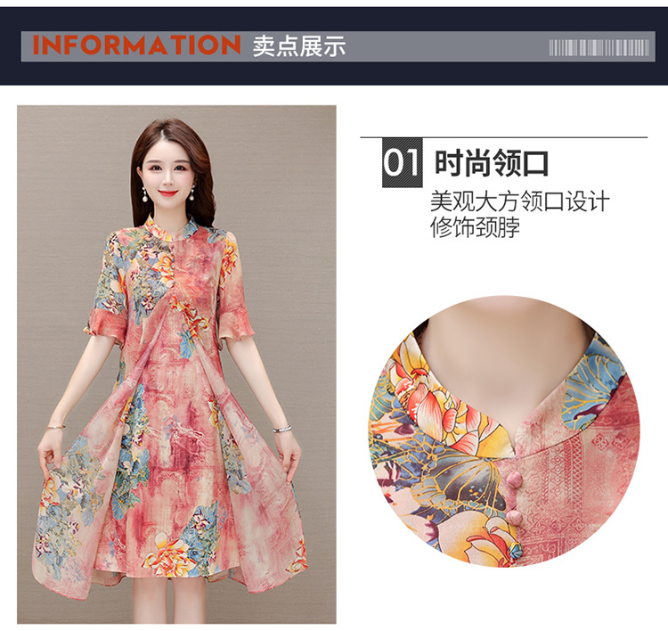 夏季印花连衣裙,中老年妈妈装短袖开衩中长裙复古旗袍裙QYM-JJ-KL23A50-Y