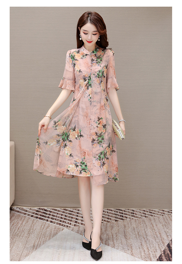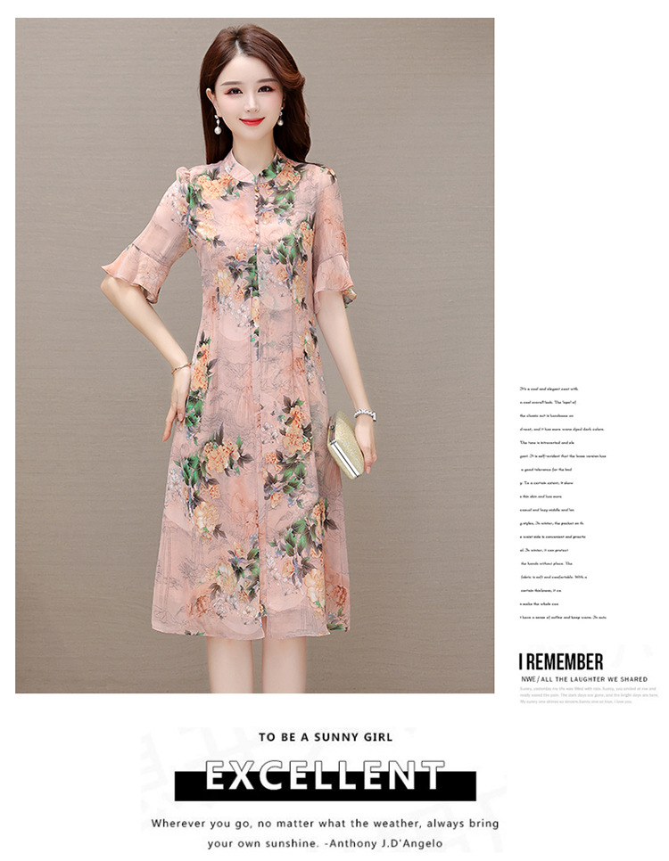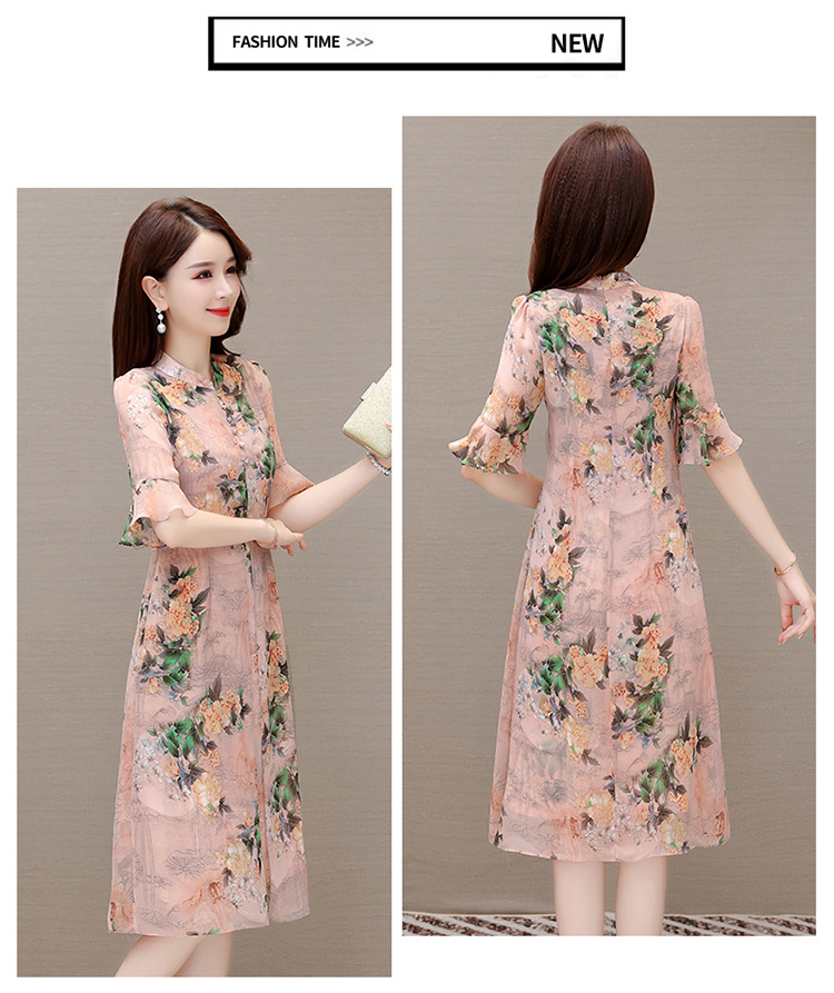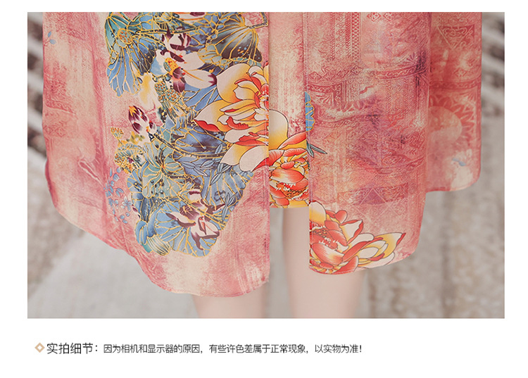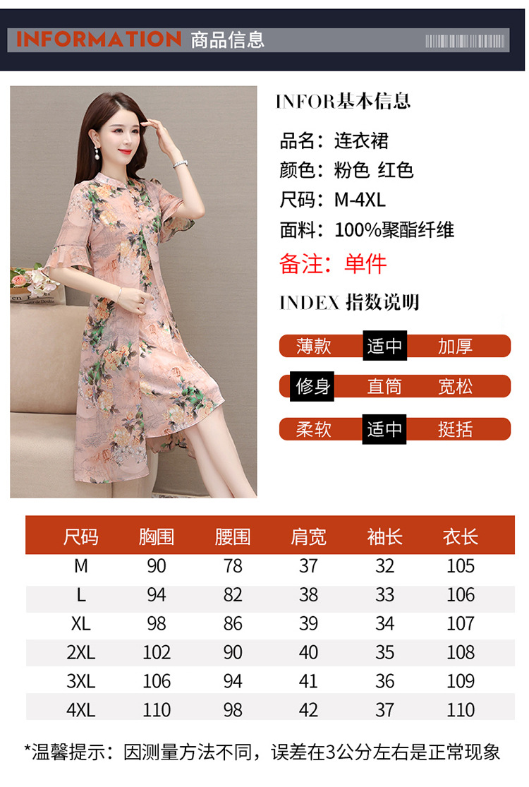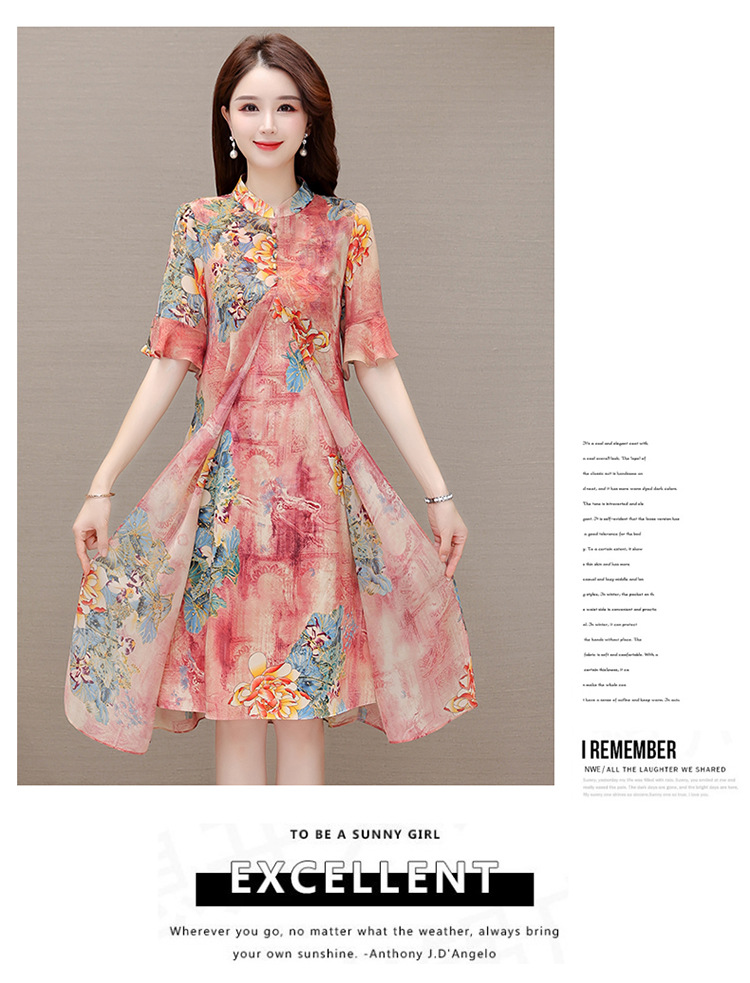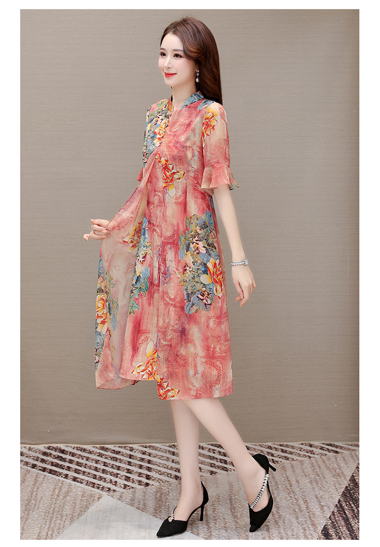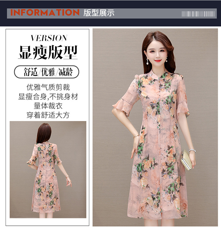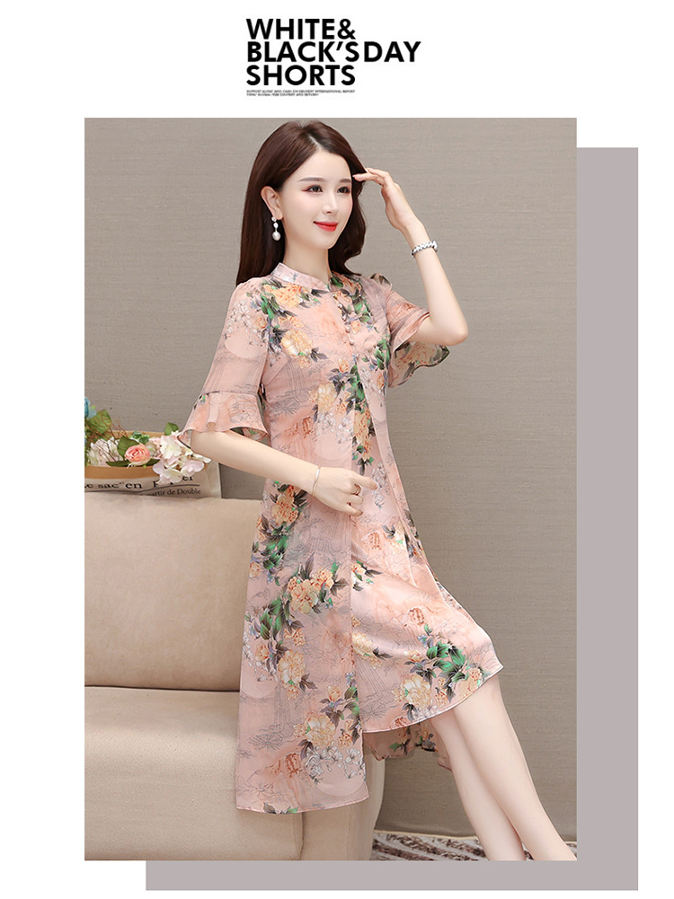 夏季印花连衣裙,中老年妈妈装短袖开衩中长裙复古旗袍裙QYM-JJ-KL23A50-Y