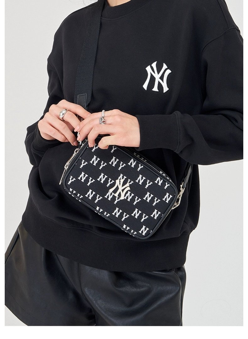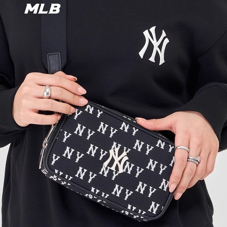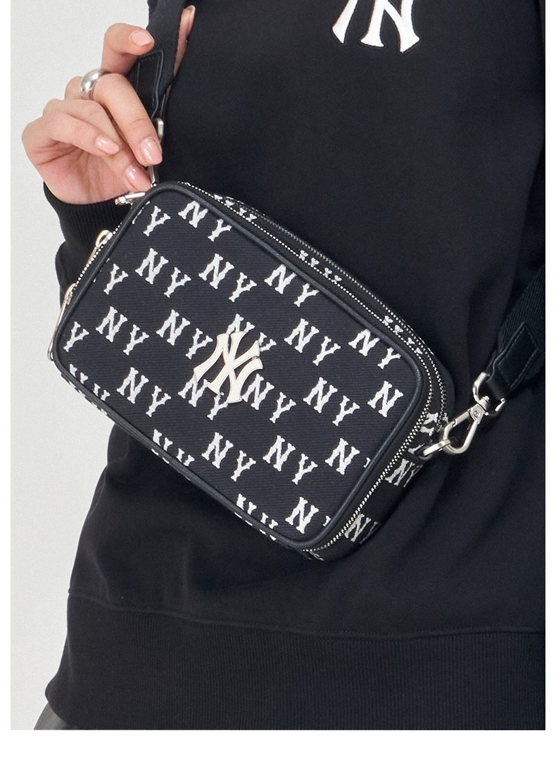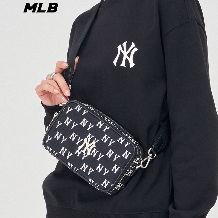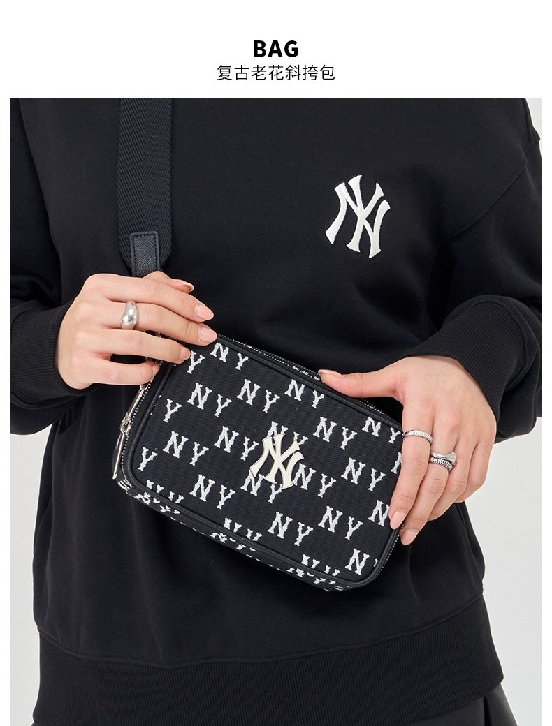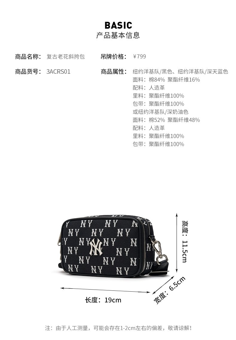 【品牌授权】防伪码 韩国MLB 复古老花斜挎包-黑色 深天蓝色 深奶油色 女新款老花满印休闲时尚运动背包单肩学生书包 3ACRS014N