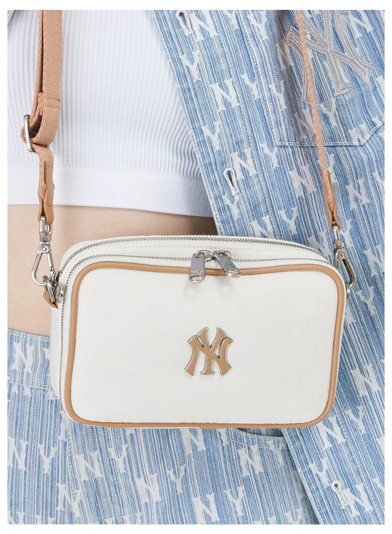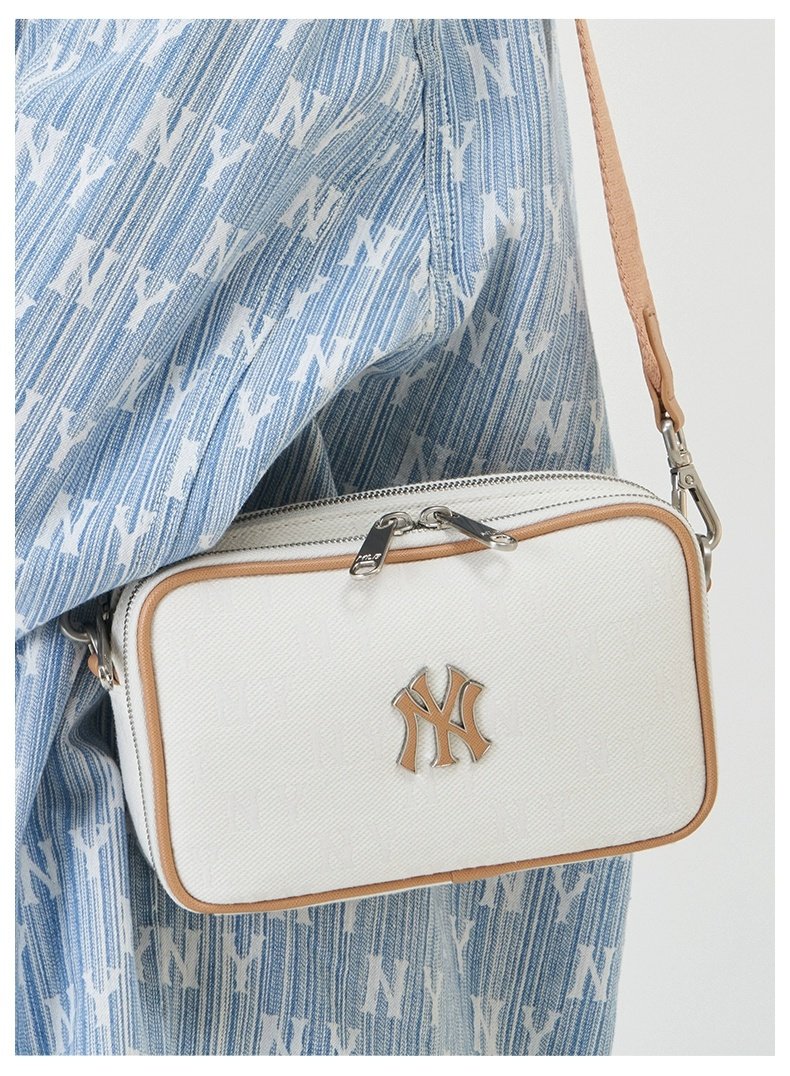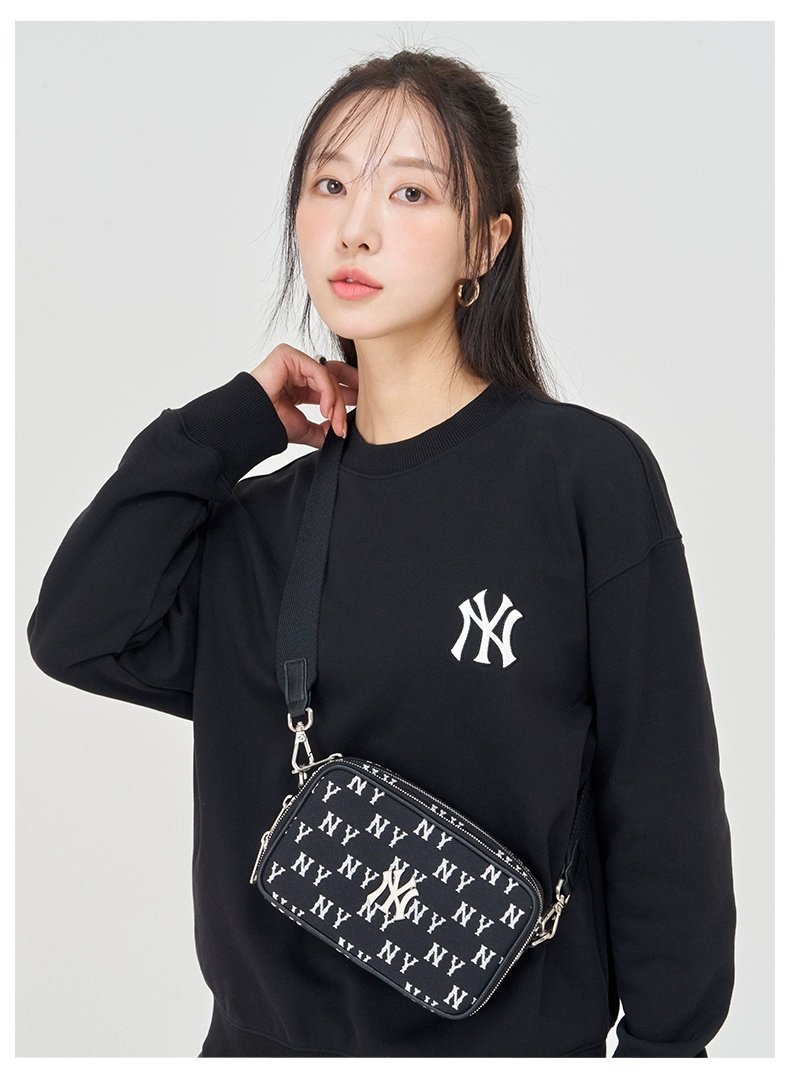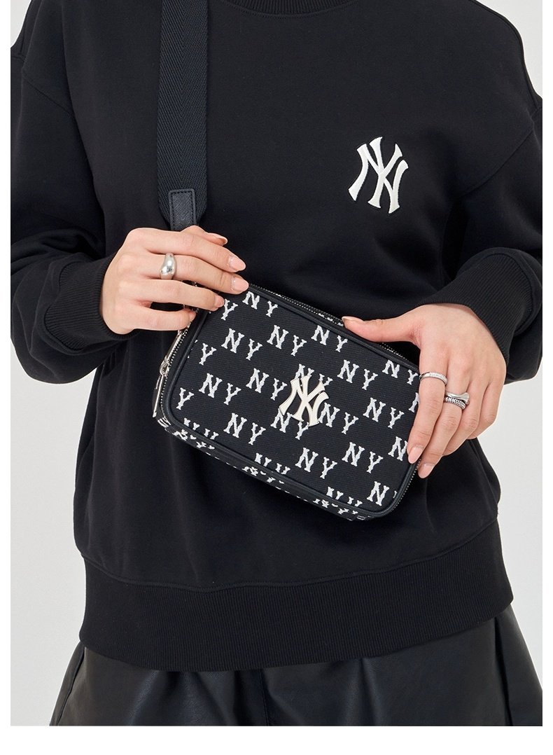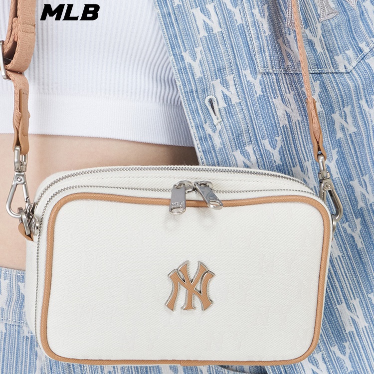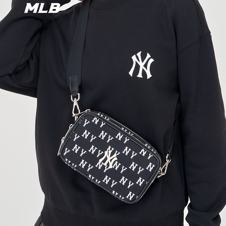 【品牌授权】防伪码 韩国MLB 复古老花斜挎包-黑色 深天蓝色 深奶油色 女新款老花满印休闲时尚运动背包单肩学生书包 3ACRS014N