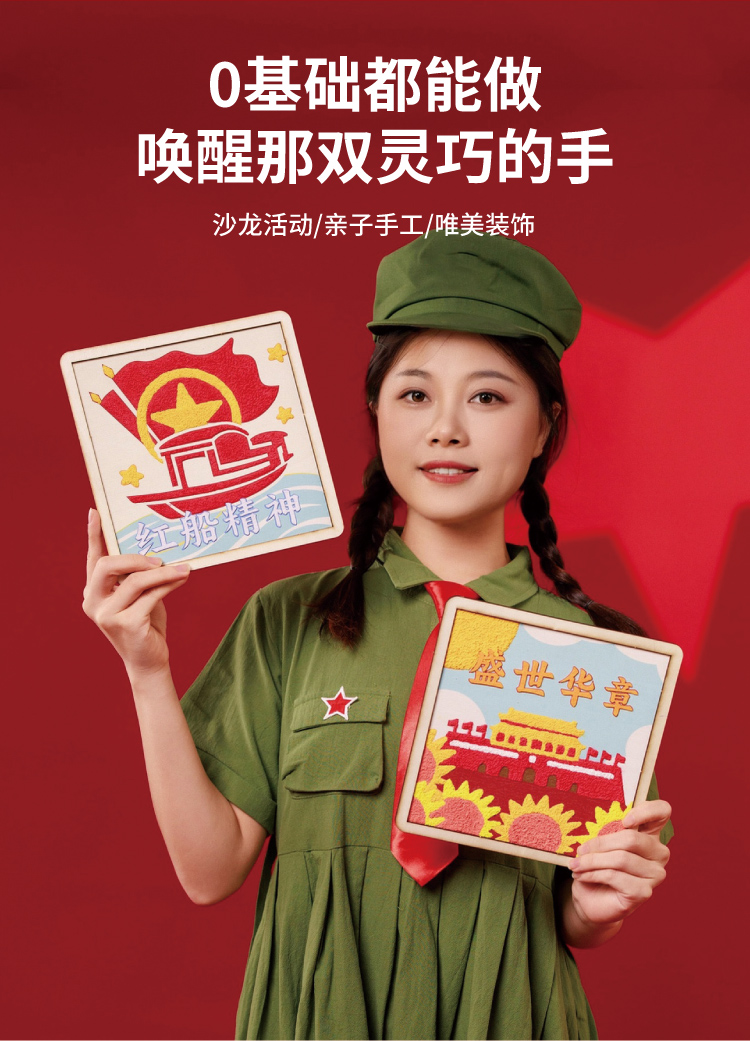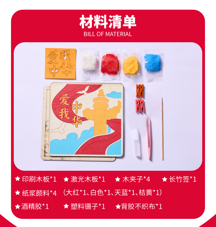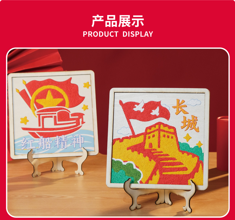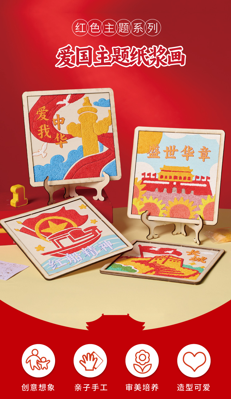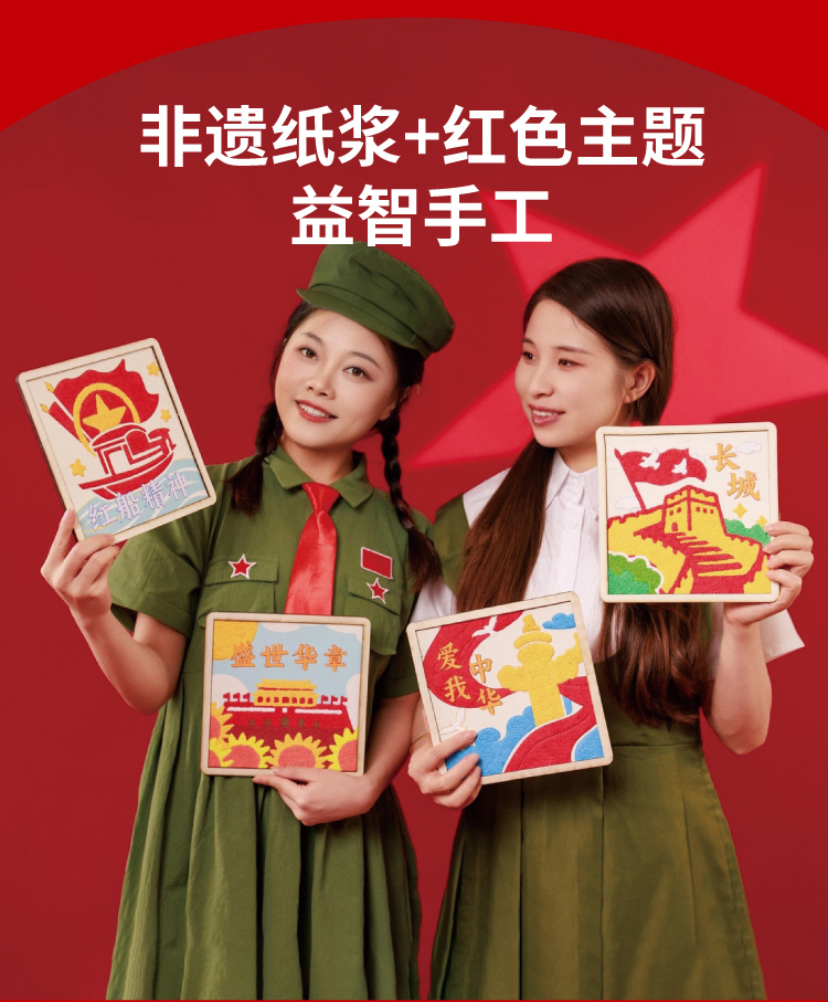 红色爱国主题纸浆画手工diy儿童制作材料摆件团建活动