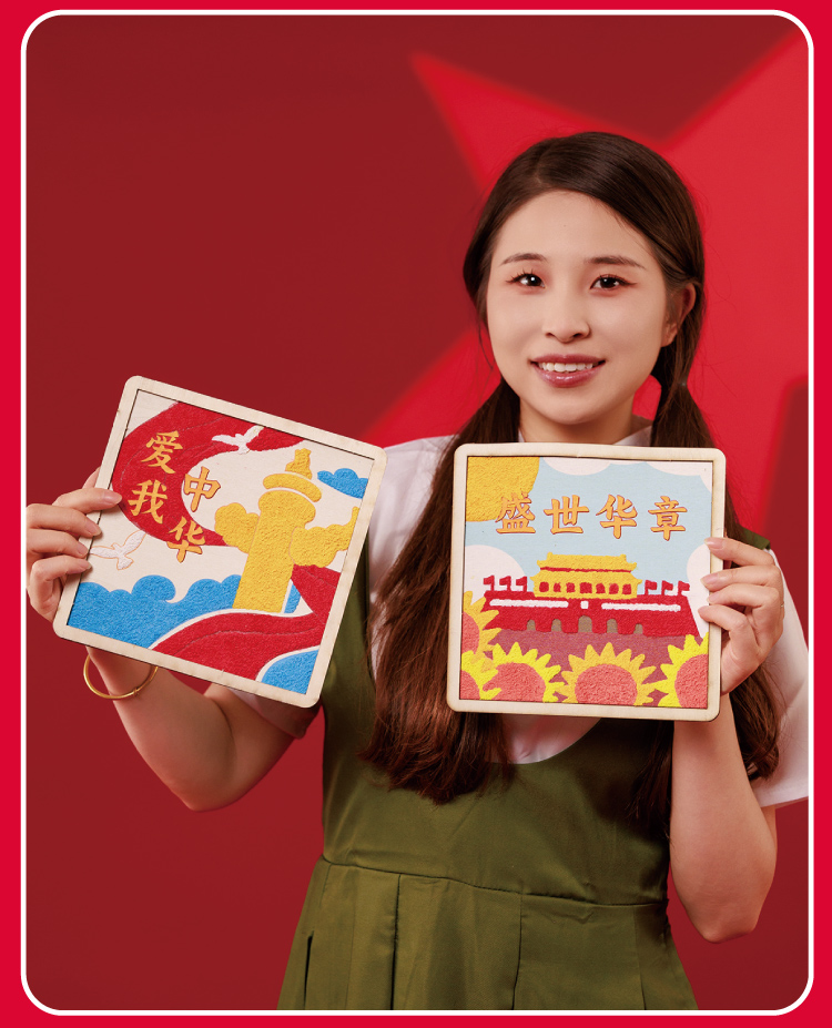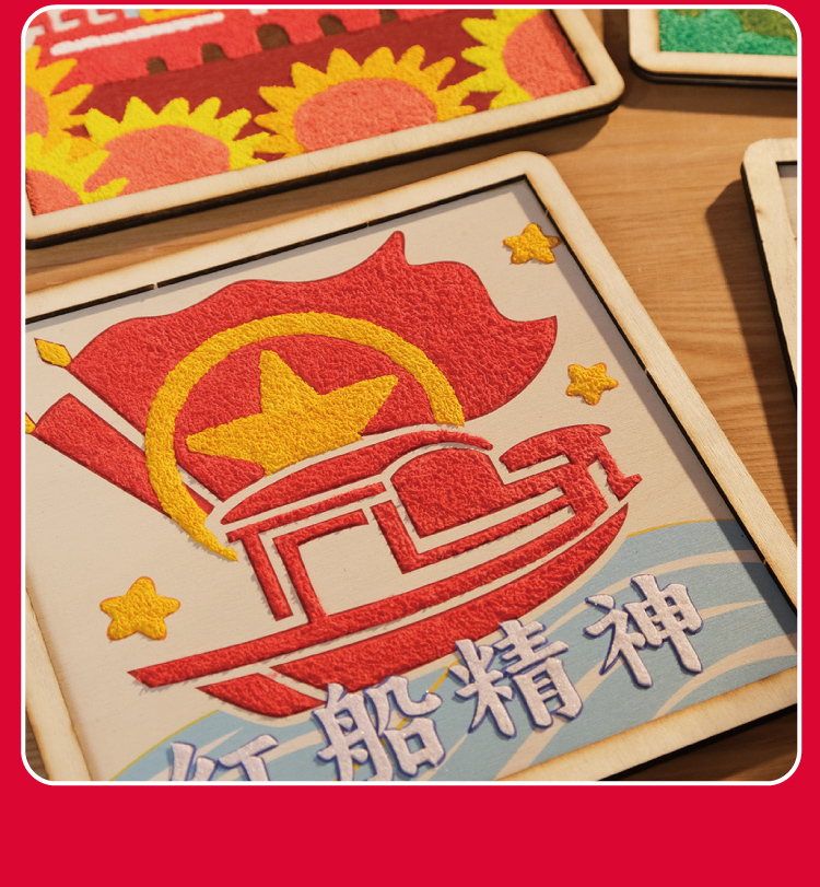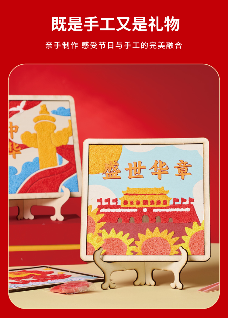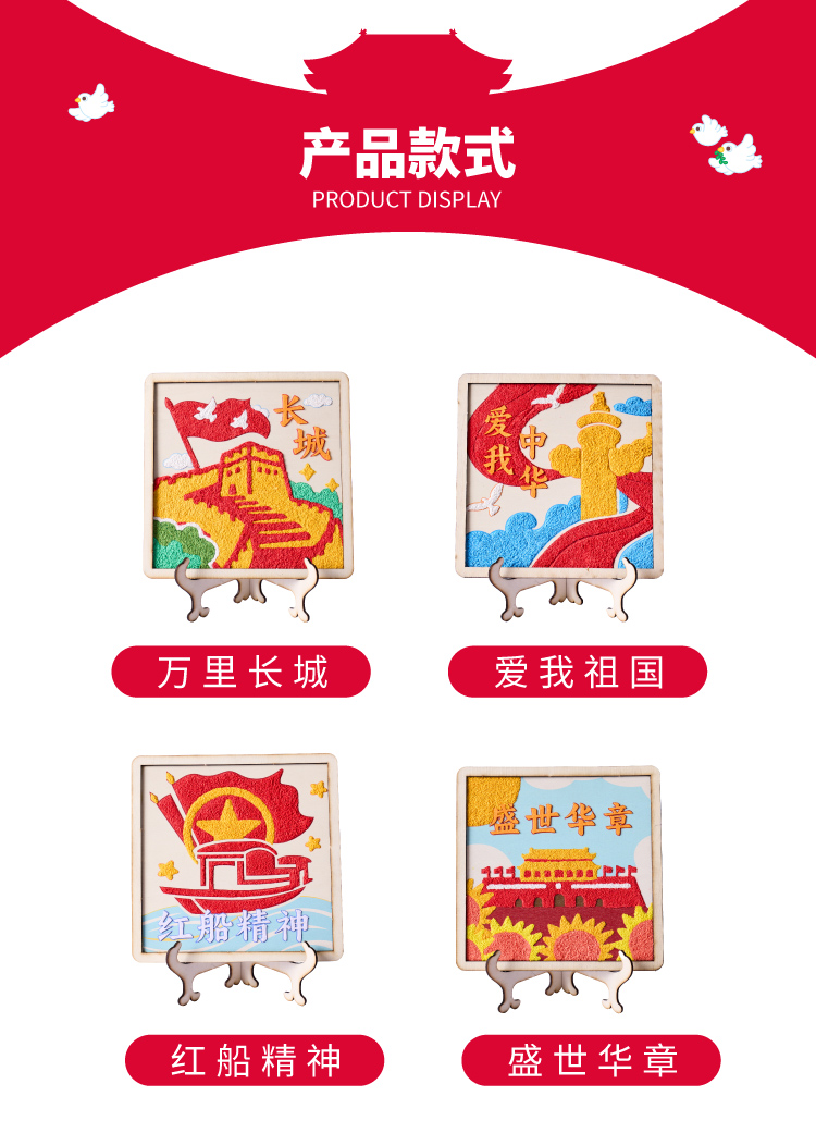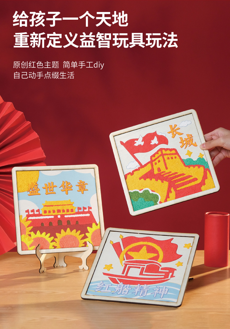 红色爱国主题纸浆画手工diy儿童制作材料摆件团建活动