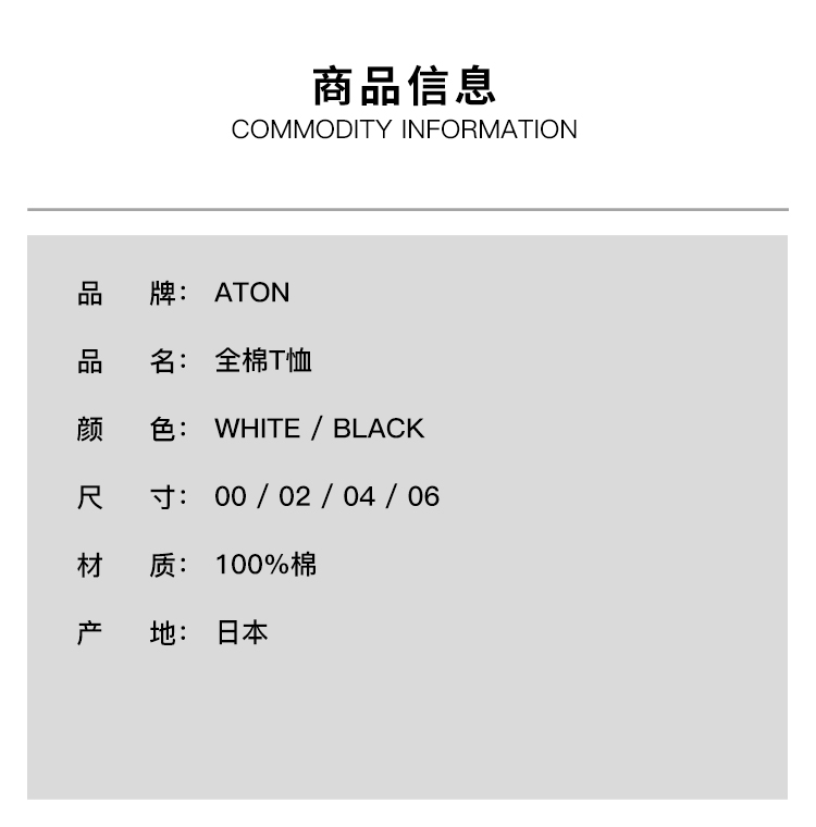 ATON COTTON中性款日本和歌山编织超长棉吸水速干全棉圆领短袖T恤