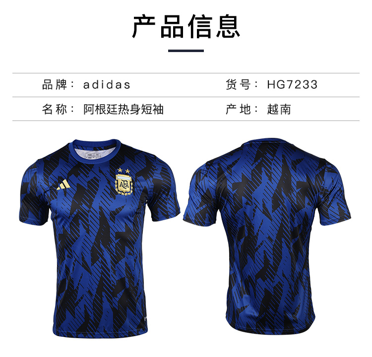 ADIDAS/阿迪达斯AFA PRESHI阿根廷队热身足球短袖球衣HG7233