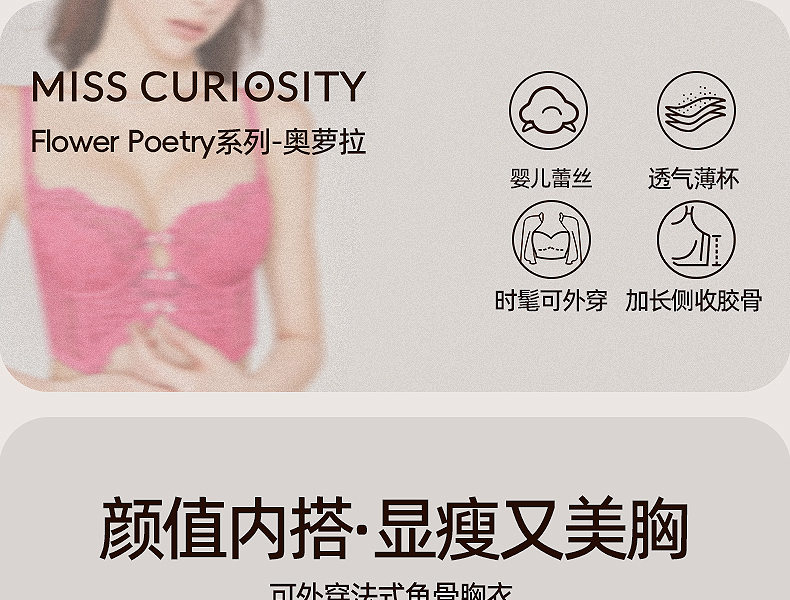 好奇蜜斯夏季蕾丝性感内衣女薄款显胸小文胸套装上托胸罩新款奥萝拉