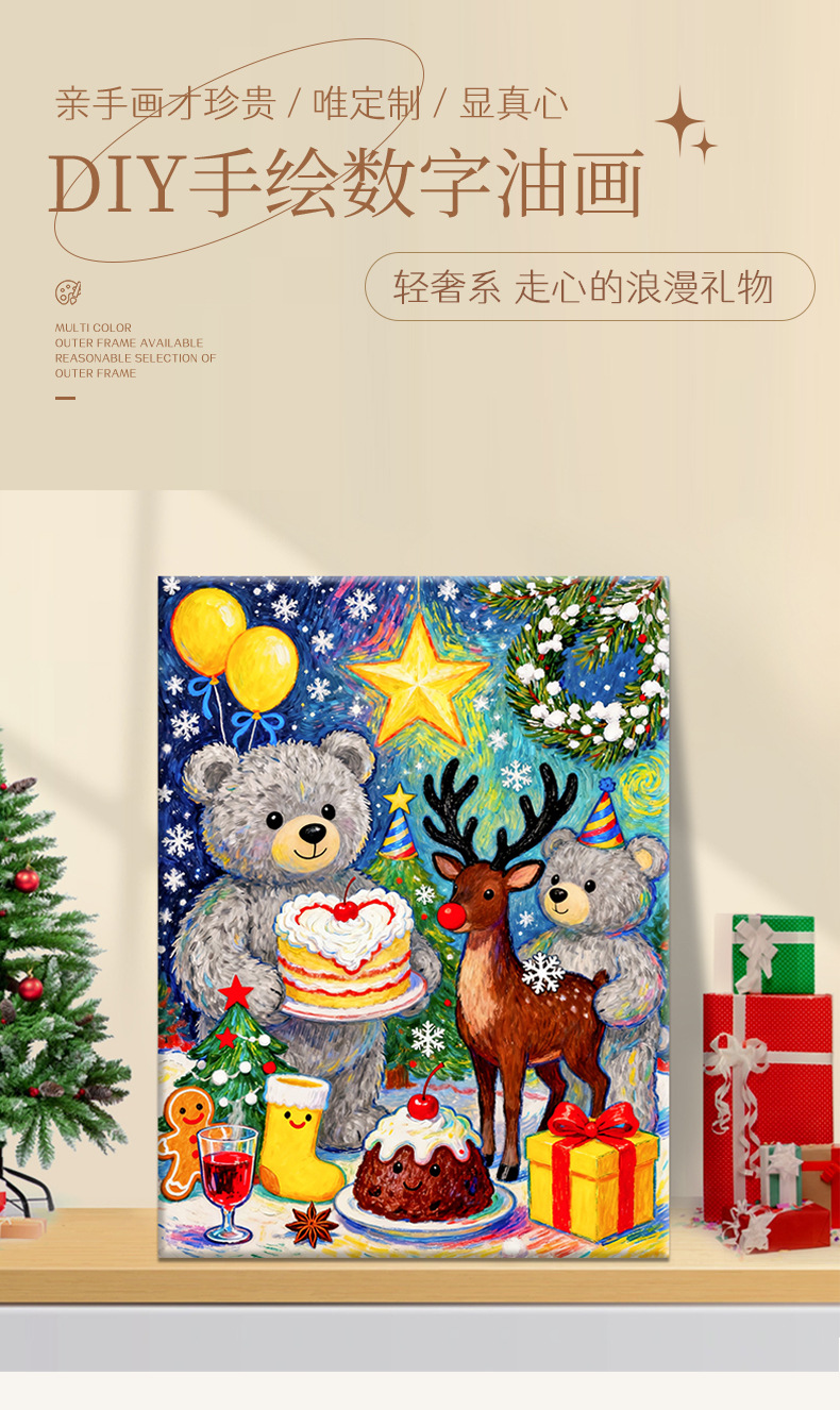 【送实木内框+颜料+画笔】圣诞节diy数字油画手工填色治愈解压油彩客厅卧室装饰画