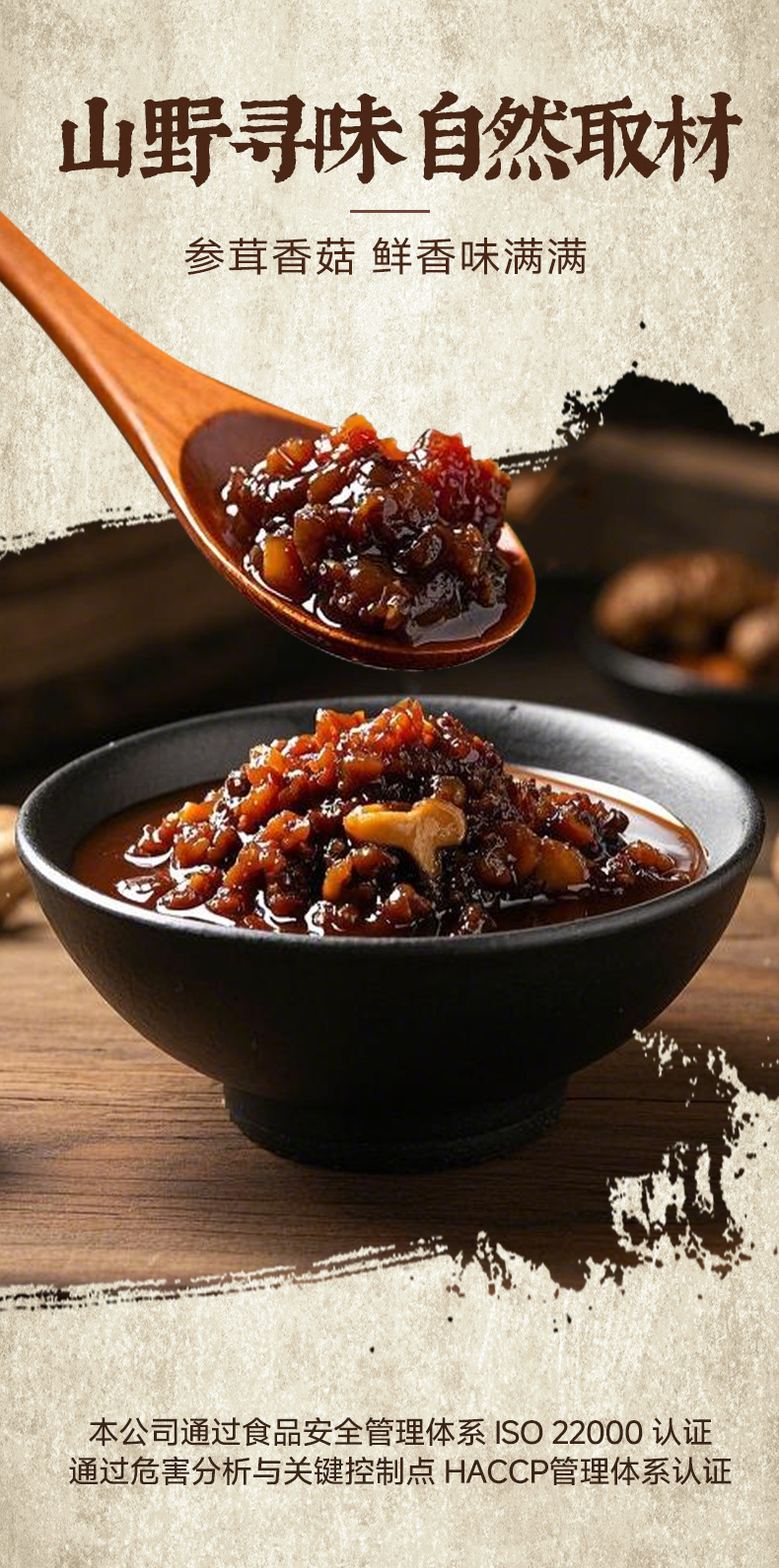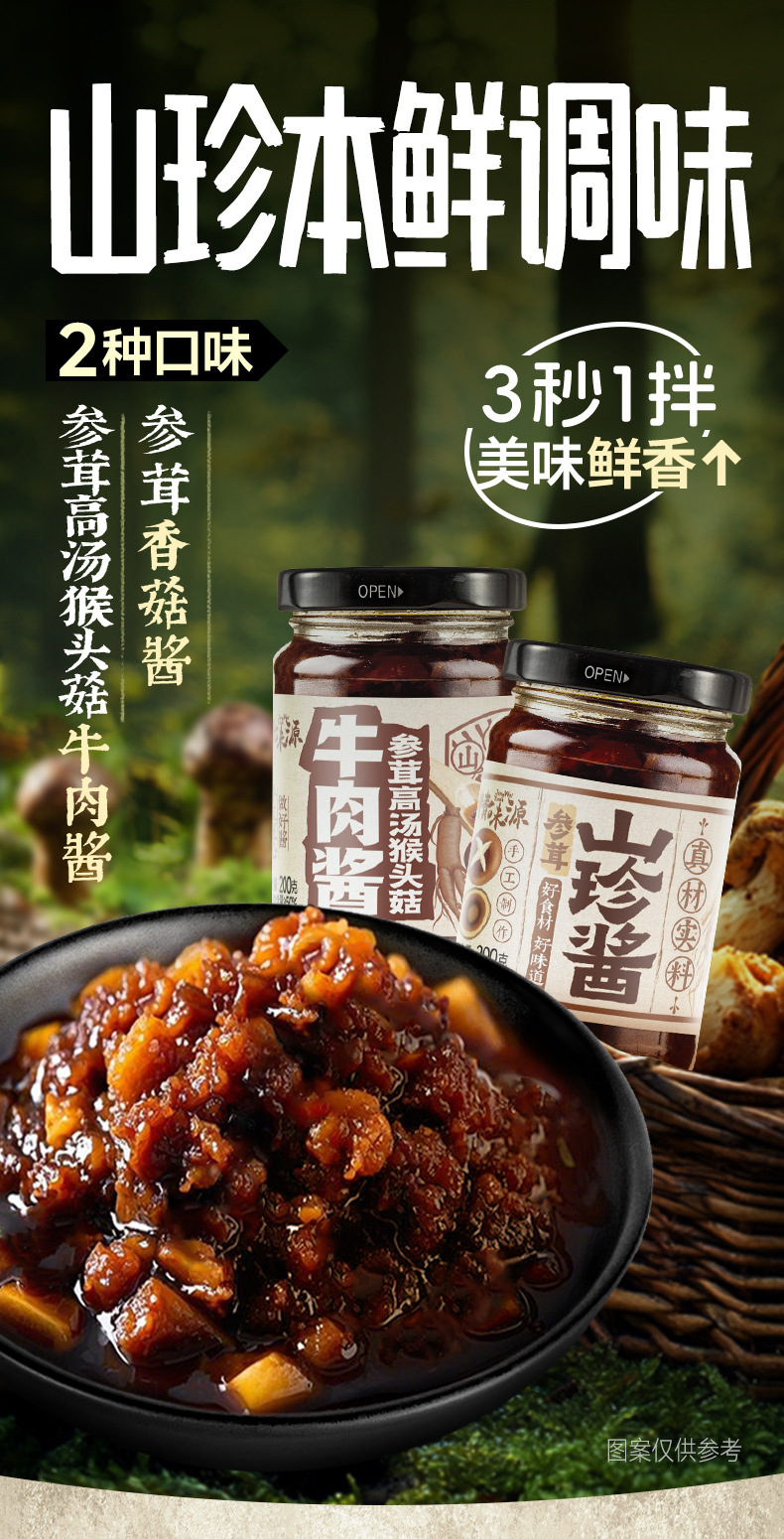 【山野鲜香❗️美味参茸山珍酱】自然取材调味,轻松变身美食大师!拌饭/拌面/烹饪皆可,高汤猴头菇牛肉酱200g瓶装调味下饭菜