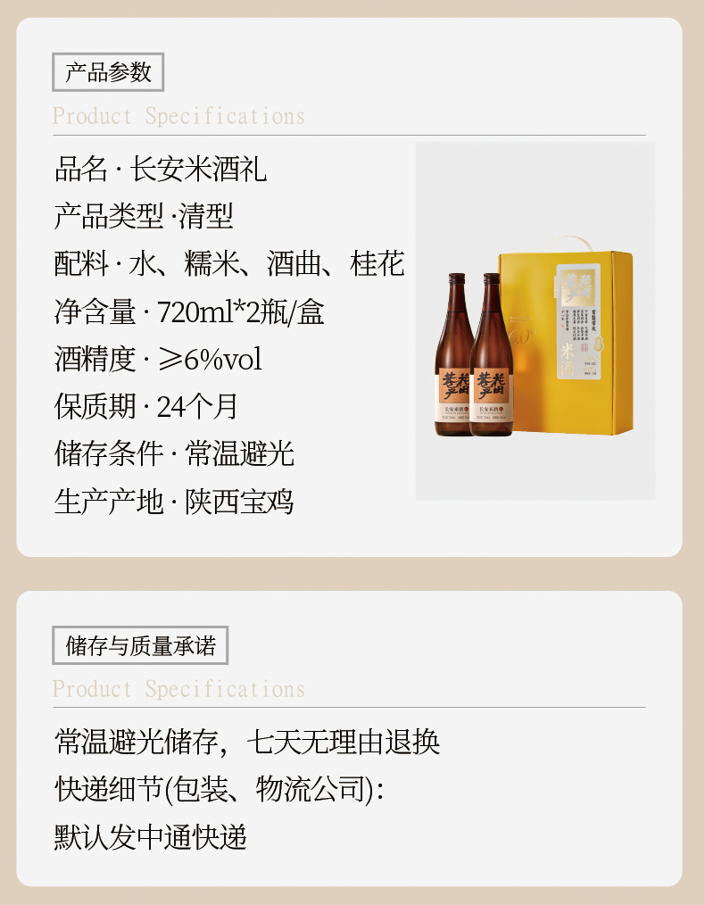 花田巷子 | 长安米酒礼 酒精度6%vol 720ml×2瓶(礼盒装)