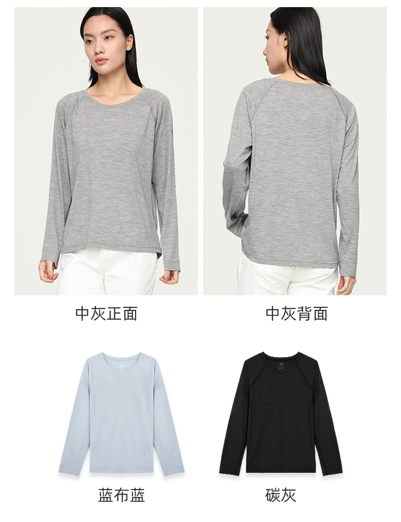 赛乐zealwood美丽诺羊毛长袖T恤男女保暖透气舒适羊毛内衣速干T恤