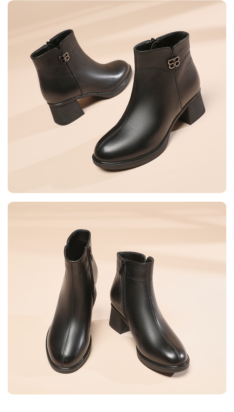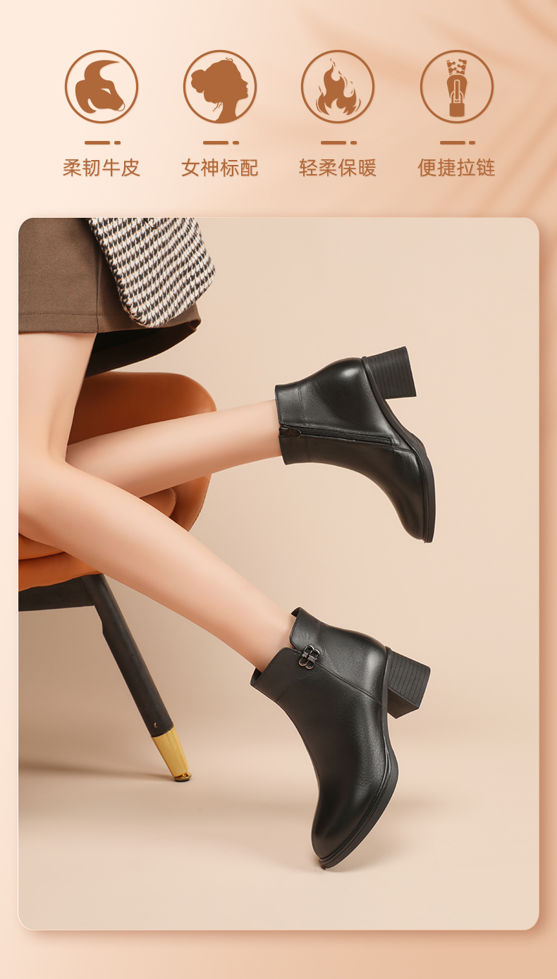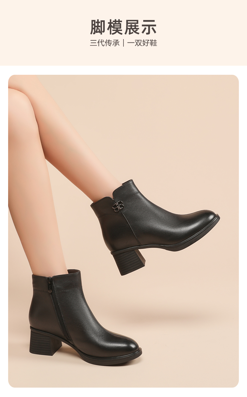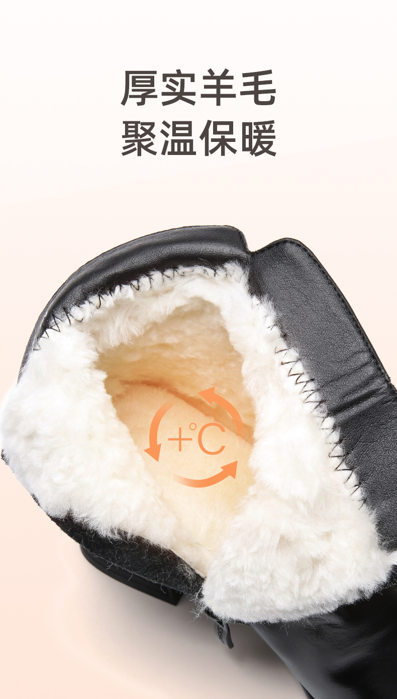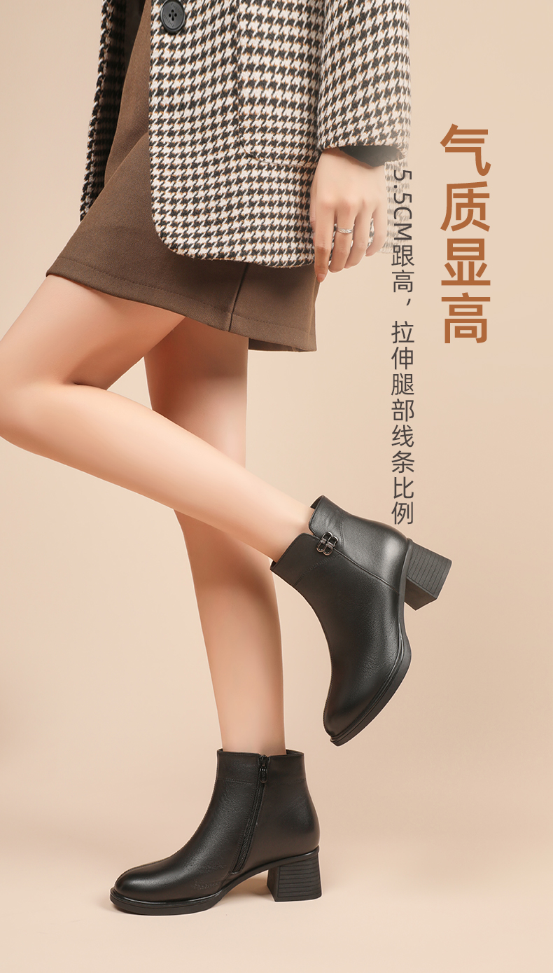 信诺羊毛妈妈靴子2022冬季女鞋粗跟中跟时装短靴加绒保暖舒适棉鞋22M193-02