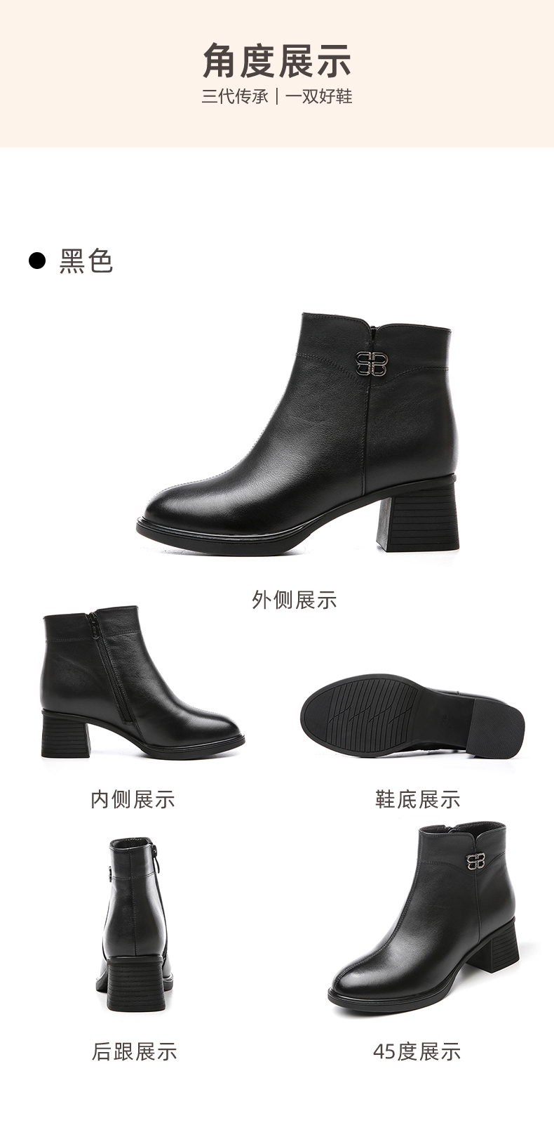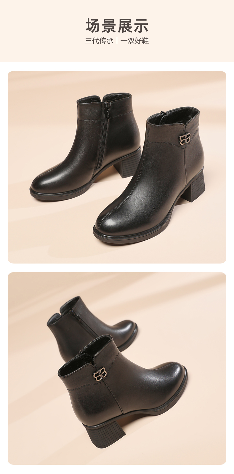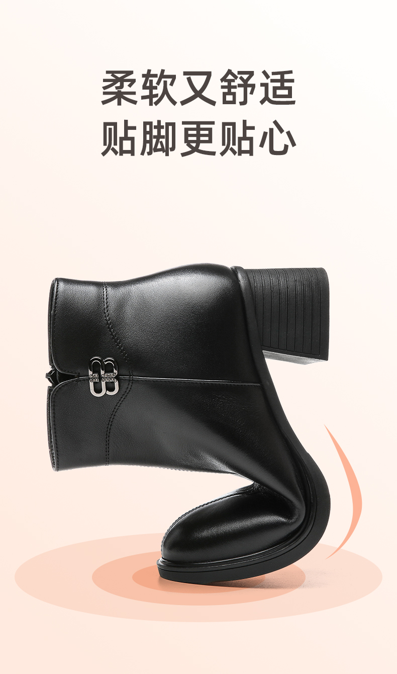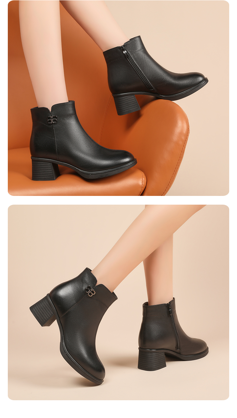 信诺羊毛妈妈靴子2022冬季女鞋粗跟中跟时装短靴加绒保暖舒适棉鞋22M193-02