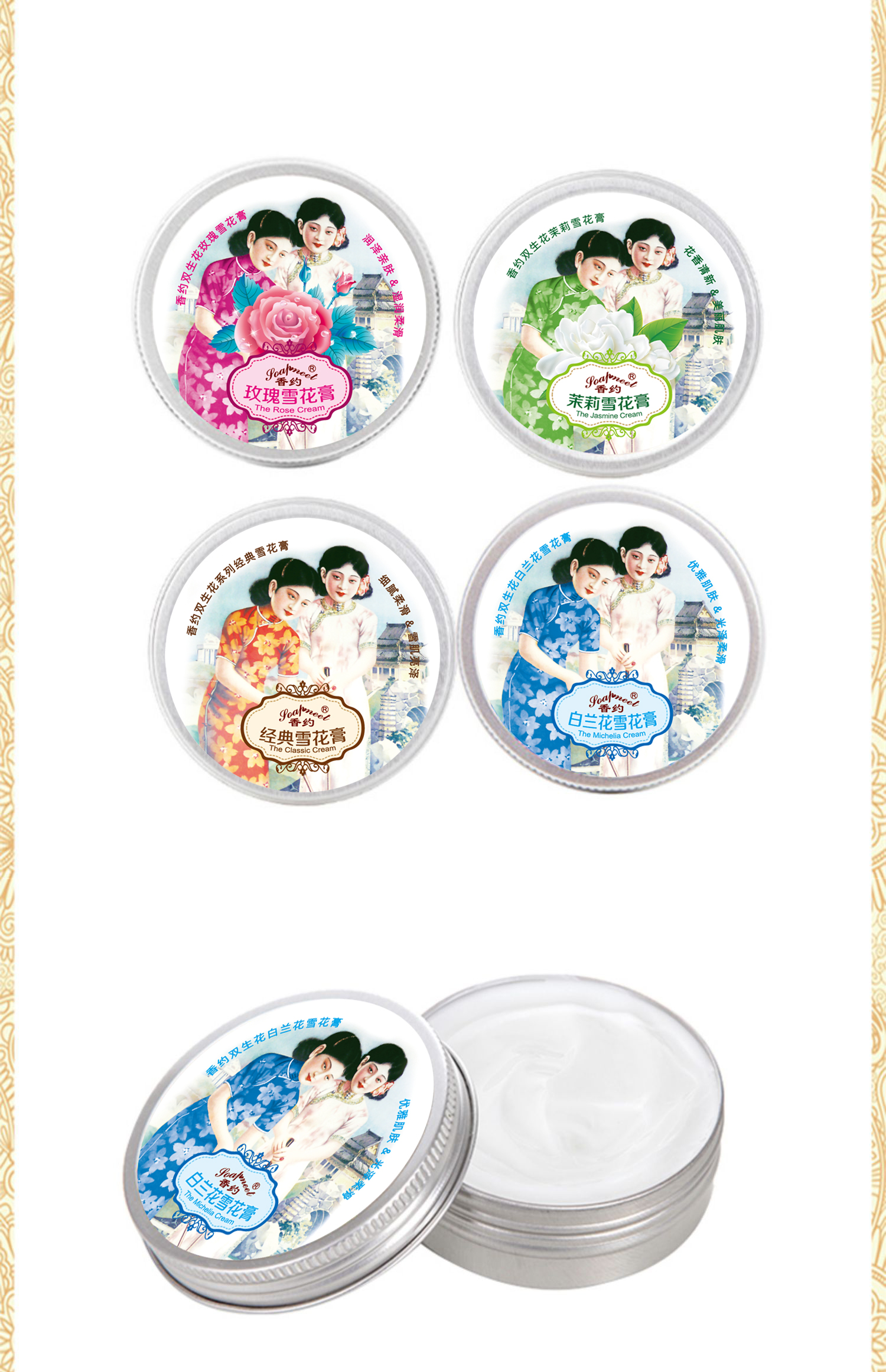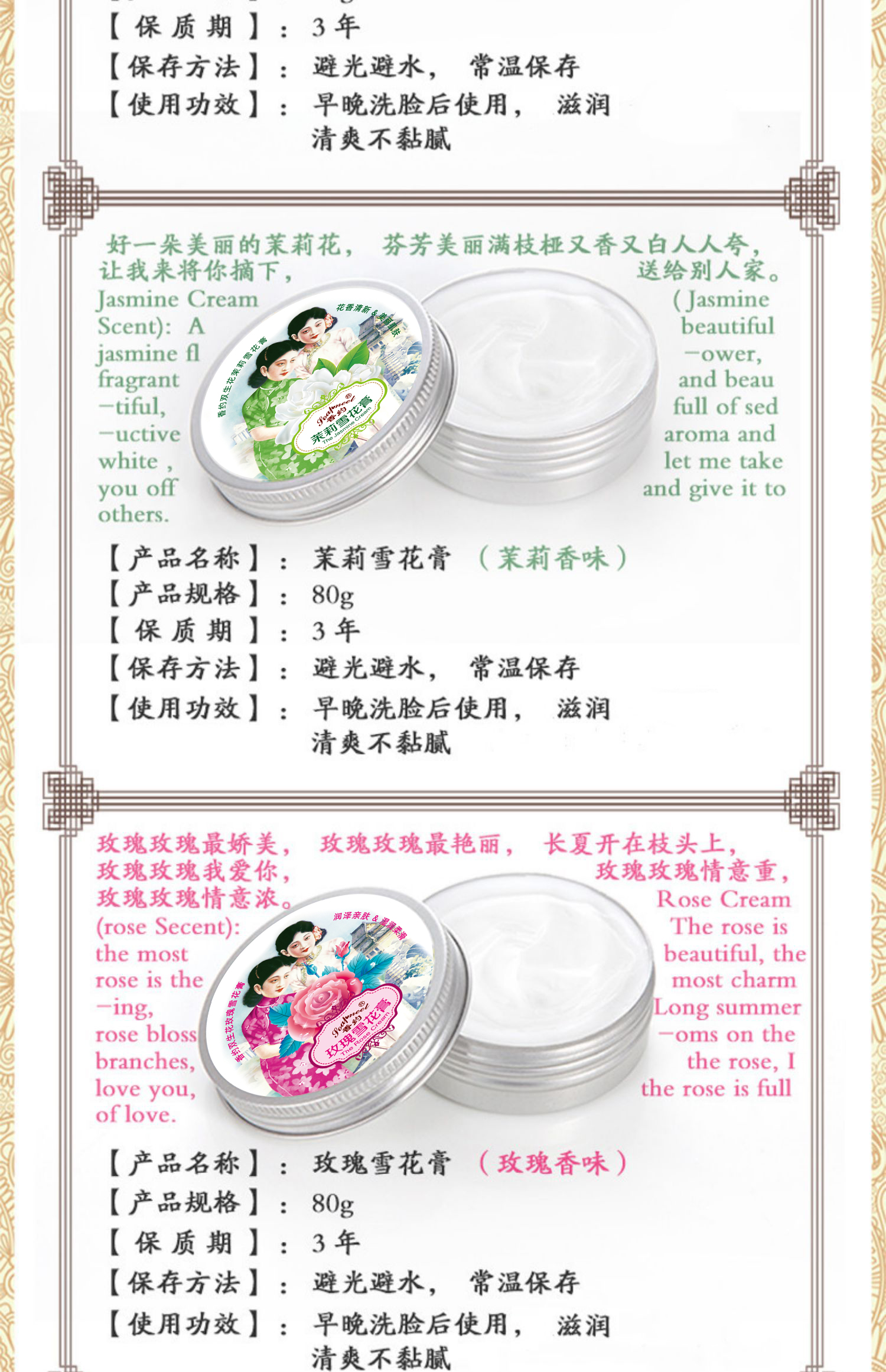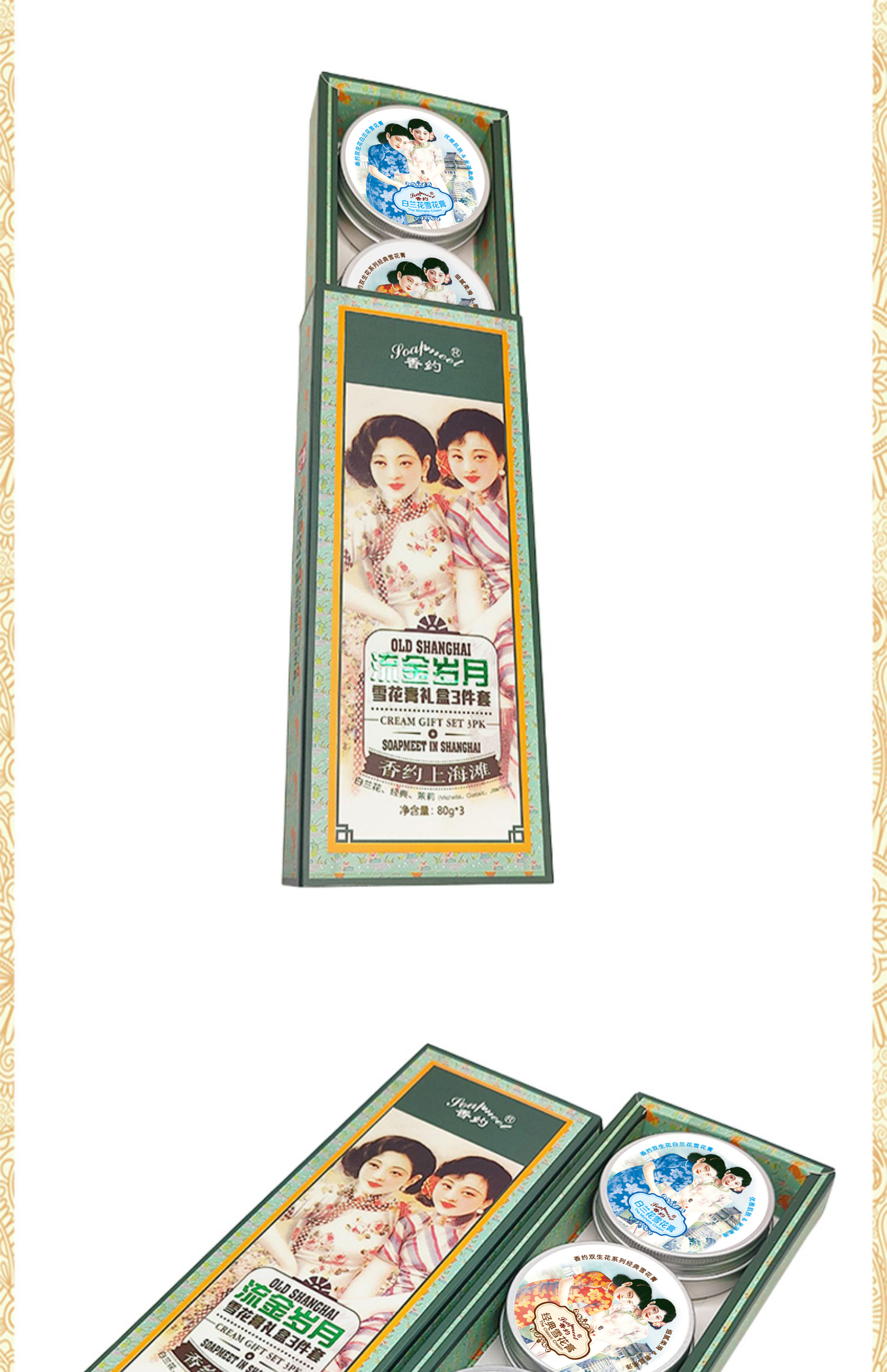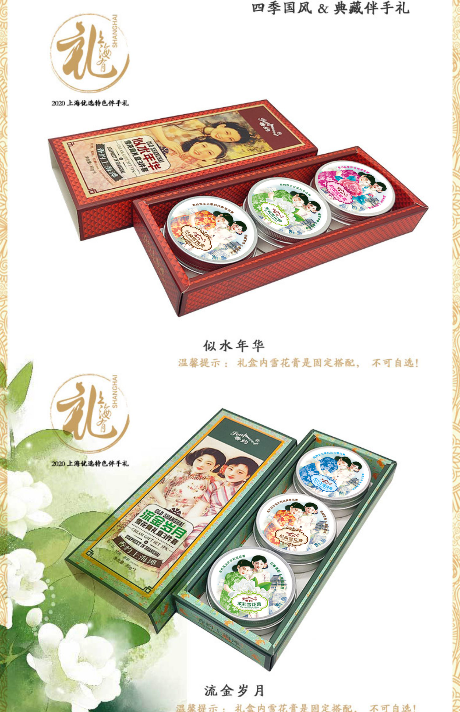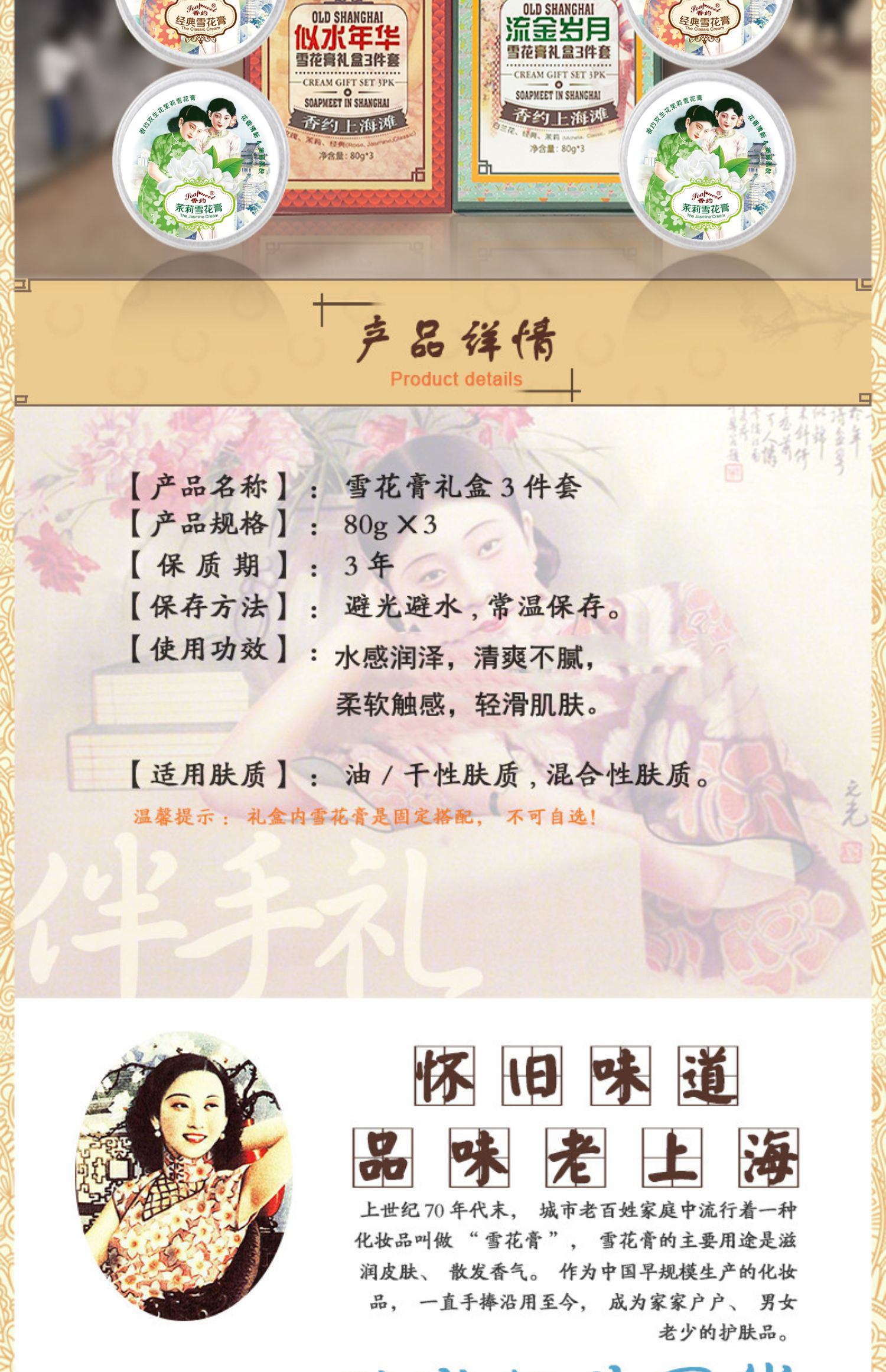 【632优选】香约似水年华/流金岁月雪花膏礼盒3件套-SH1125