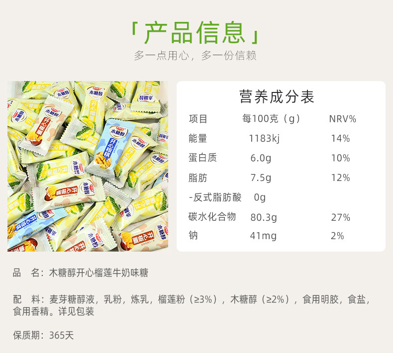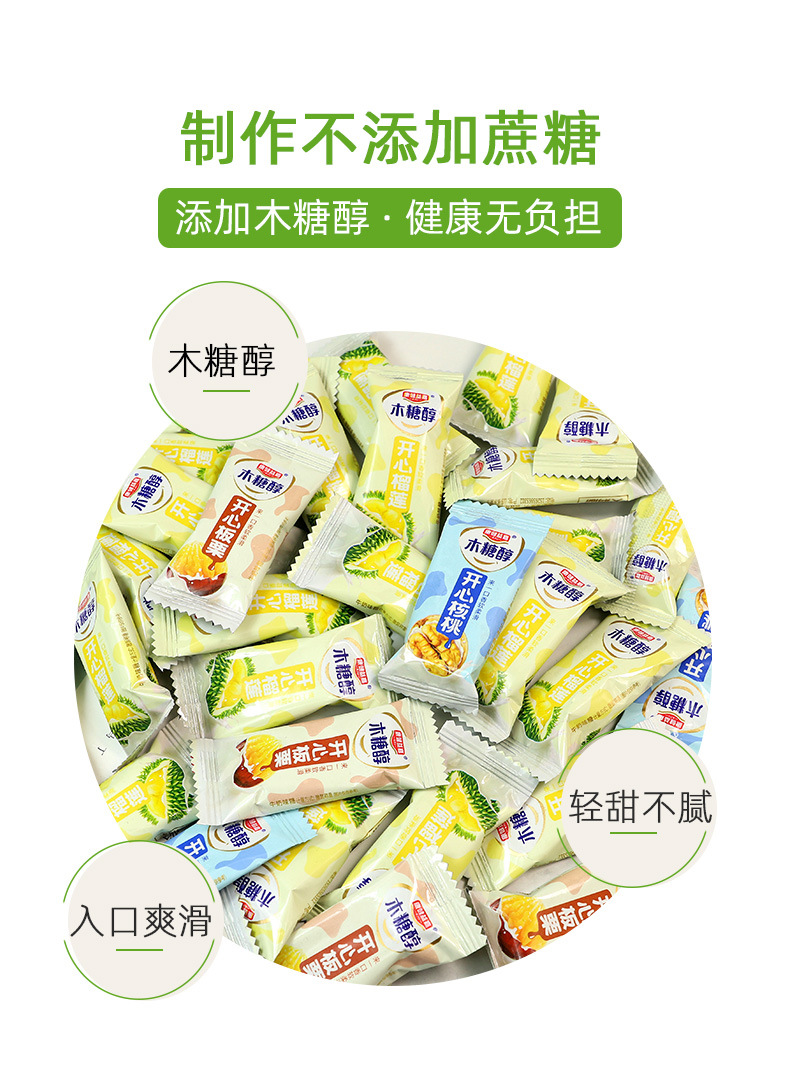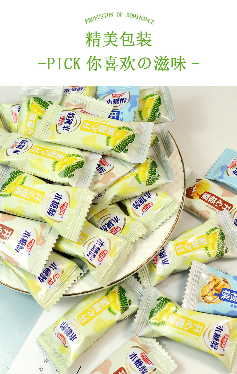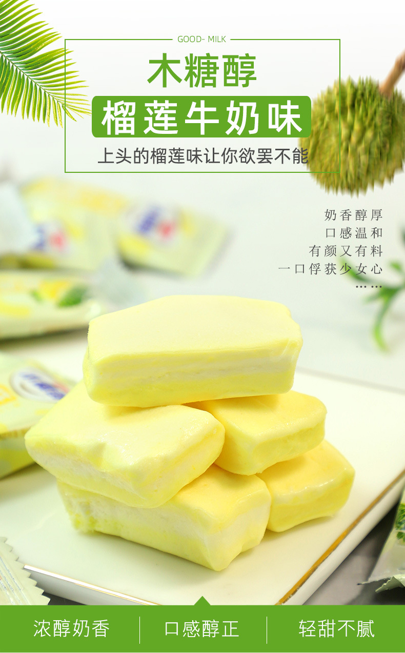 【不单独添加蔗糖!榴莲牛奶味糖果】上头的榴莲味让你欲罢不能,制作不单独添加蔗糖,健康解馋无负担,控糖期木糖醇奶糖,香浓软糖糖果散装喜糖,老人小孩零食品L