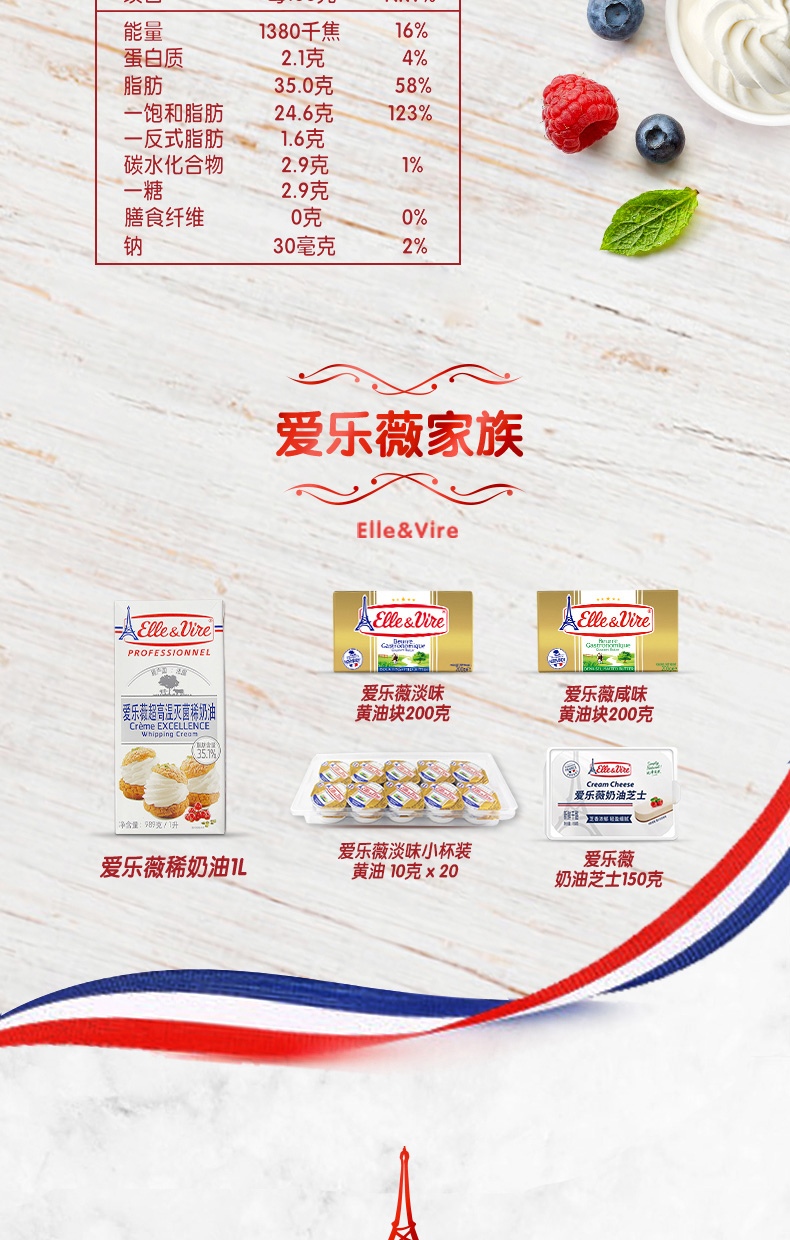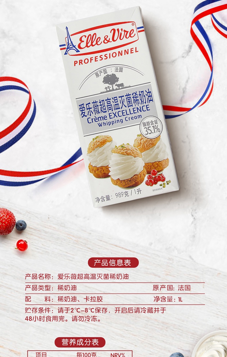 爱乐薇(Elle&Vire)法国进口 淡奶油 1L