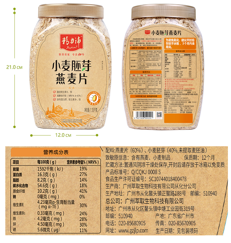 精力沛牌小麦胚芽燕麦片1.18kg