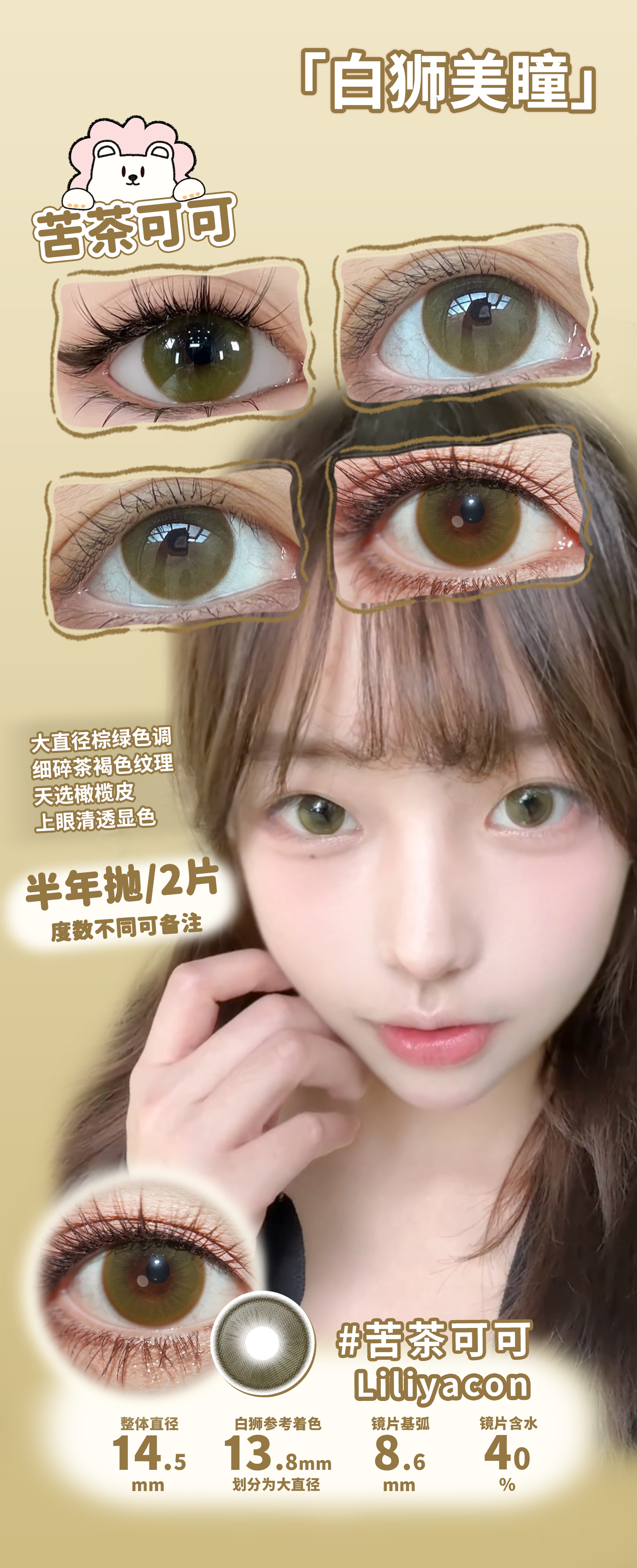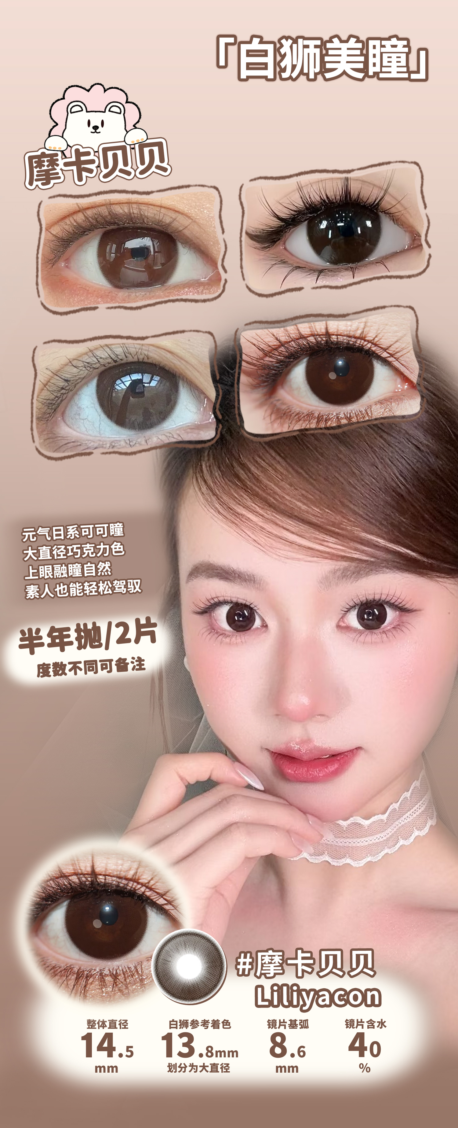 liliyacon旗下 ·苦茶可可&摩卡贝贝· 14.5mm白狮参考着色大直径 半年抛2片
