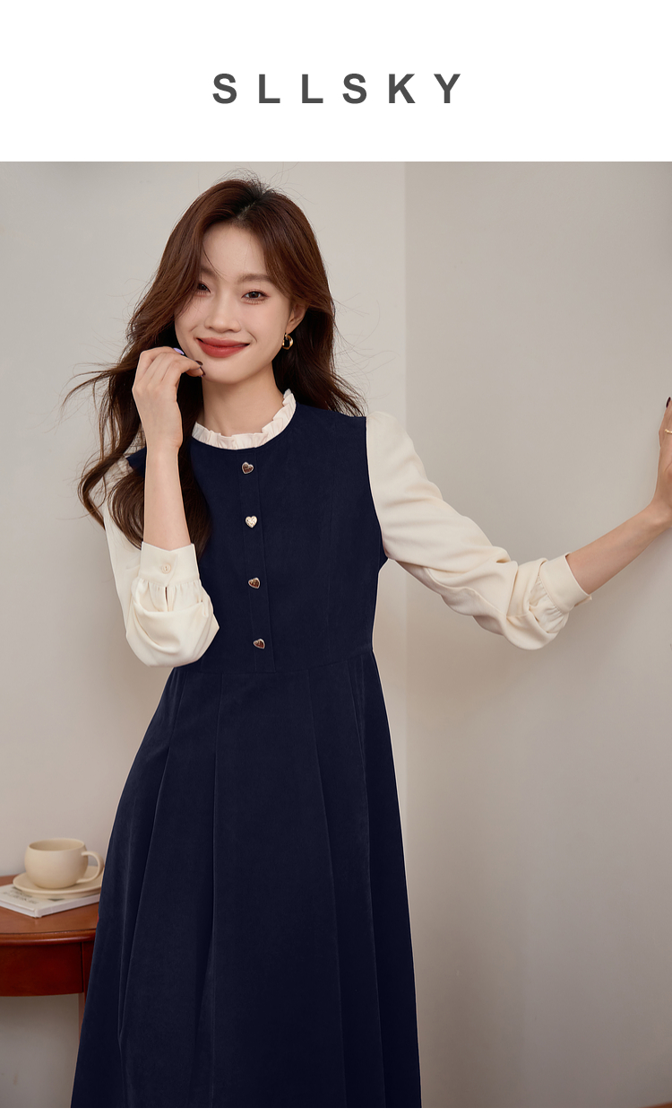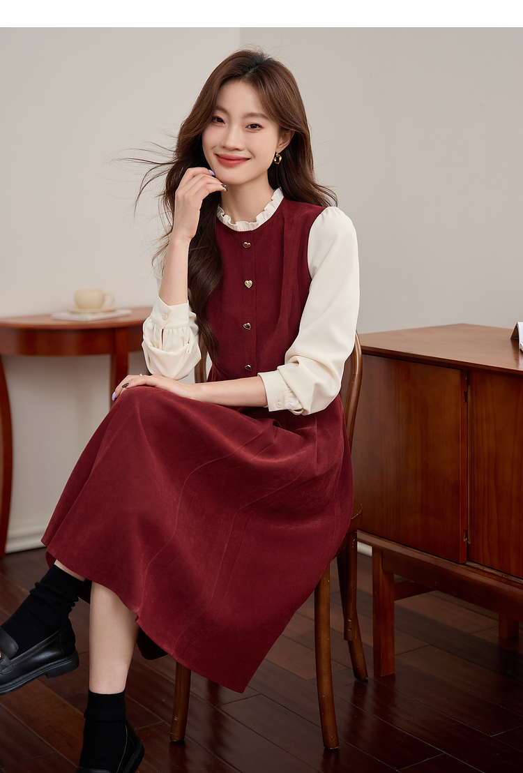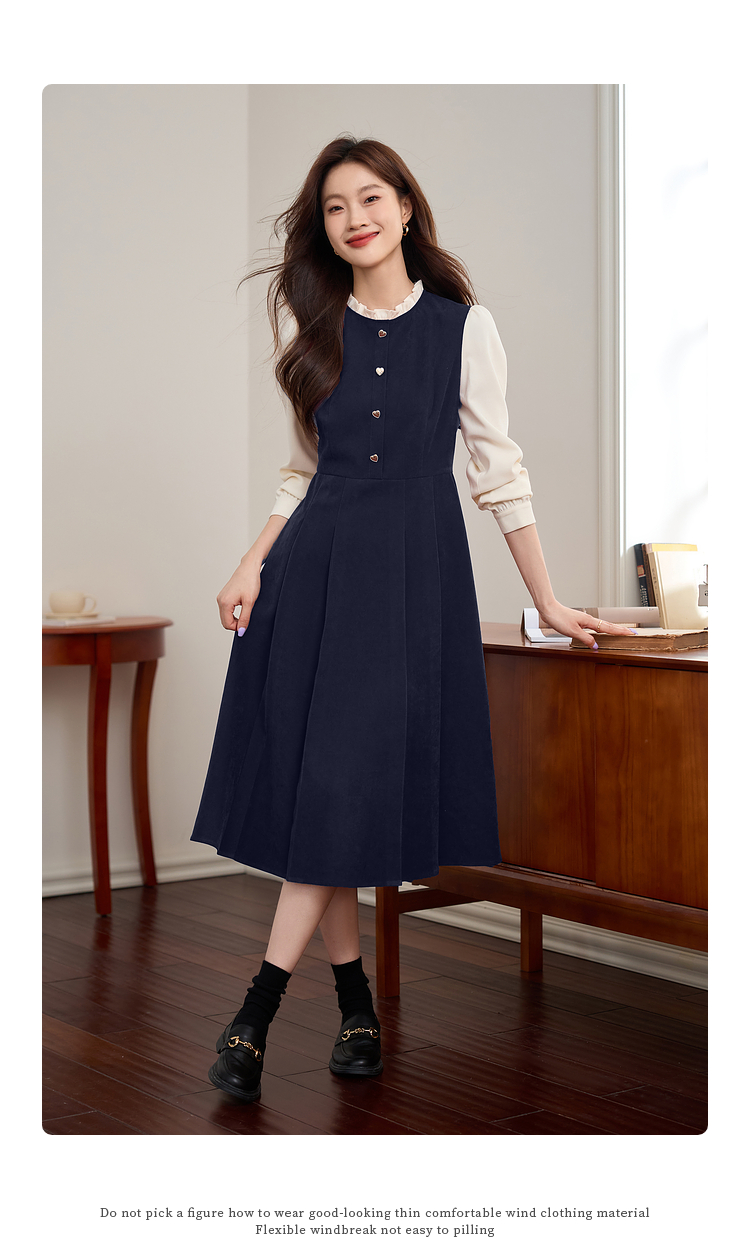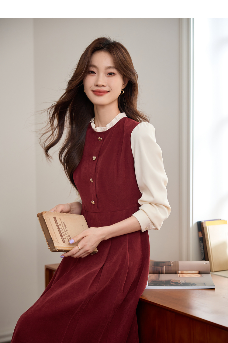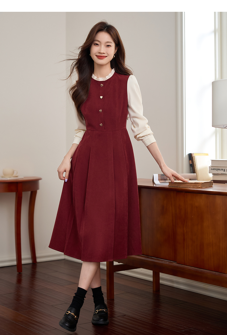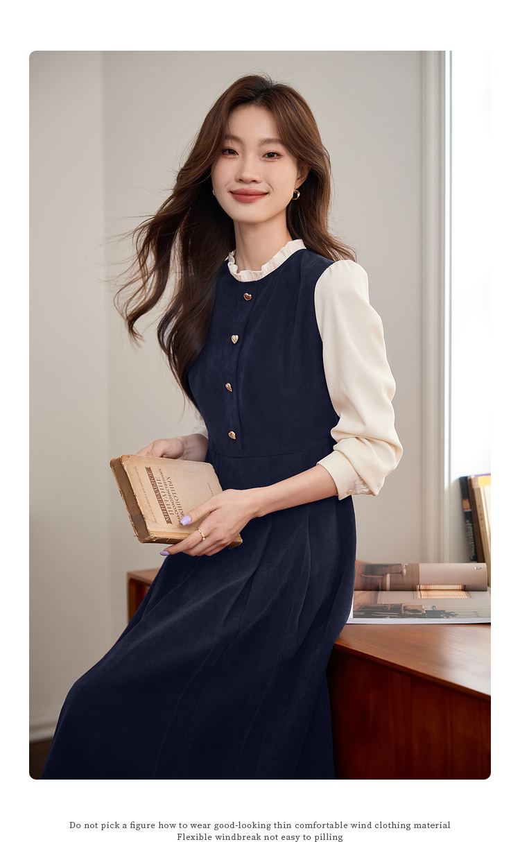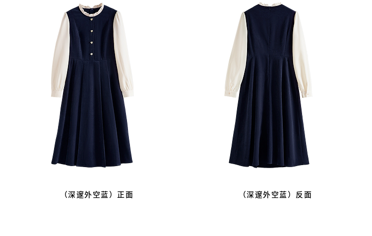 【专属特价】熙世界法式赫本小香风连衣裙秋季新款复古感长袖拼接假两件裙子