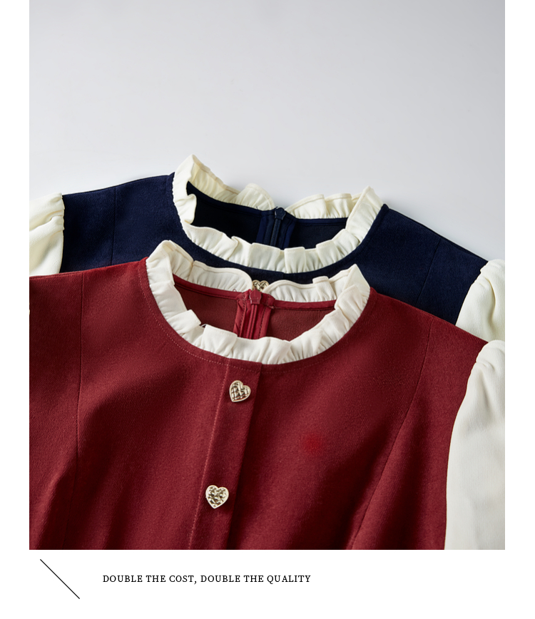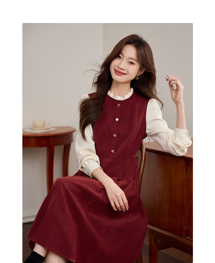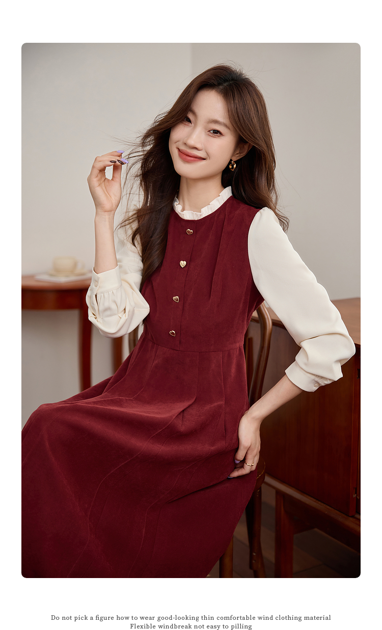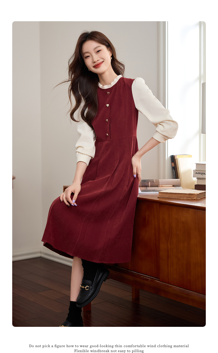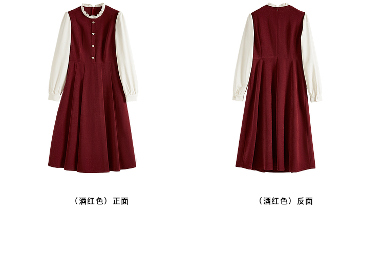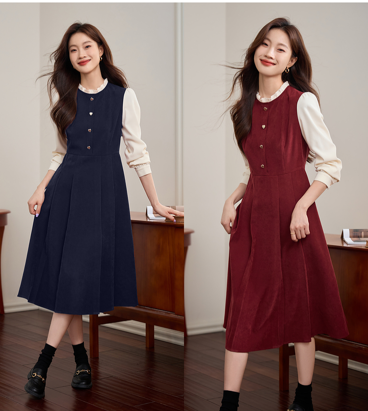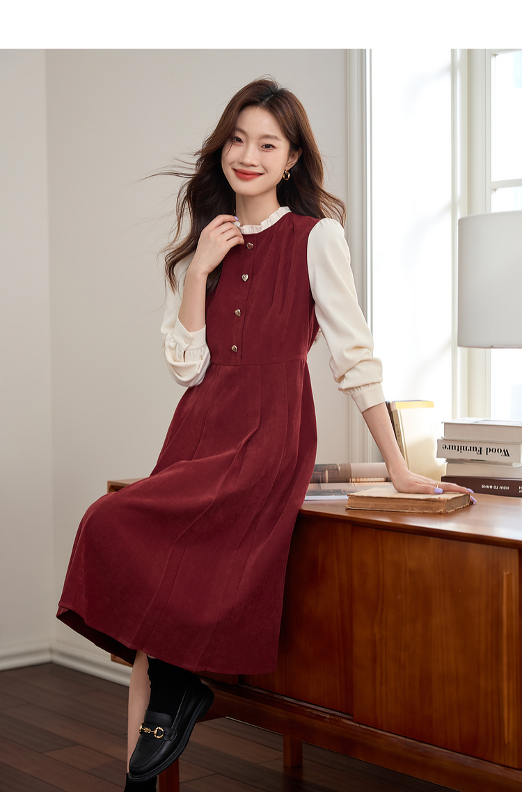 【专属特价】熙世界法式赫本小香风连衣裙秋季新款复古感长袖拼接假两件裙子