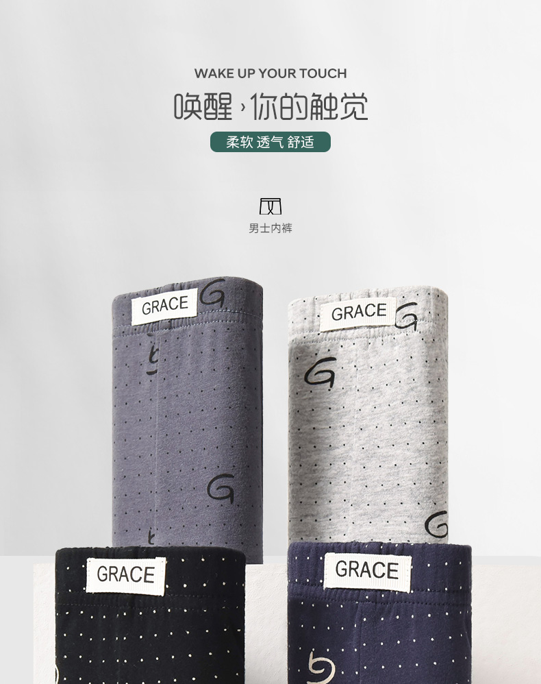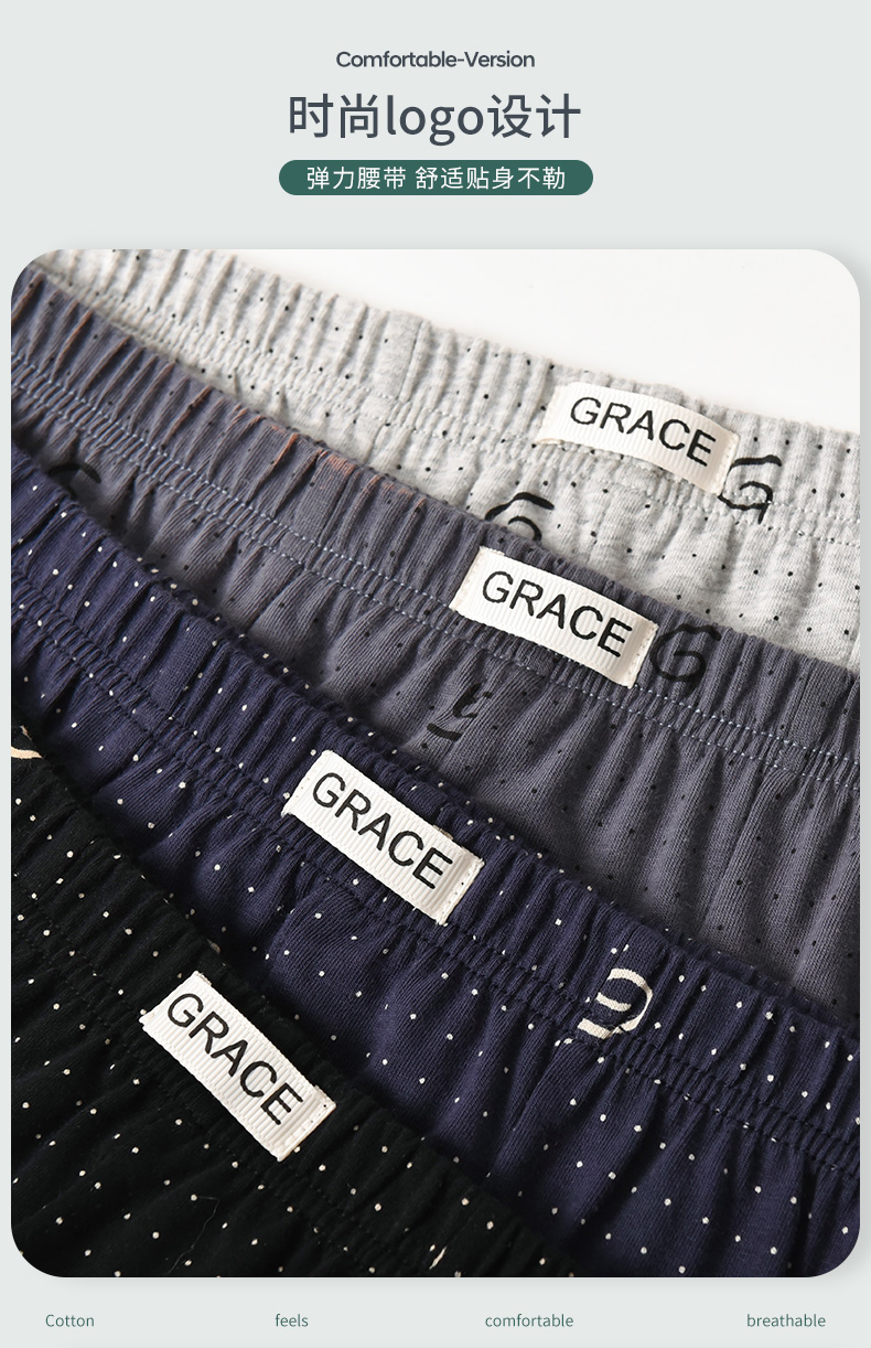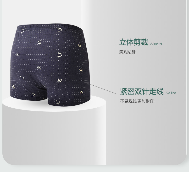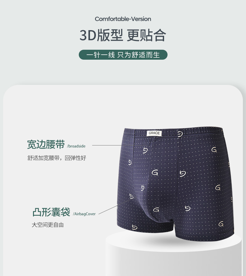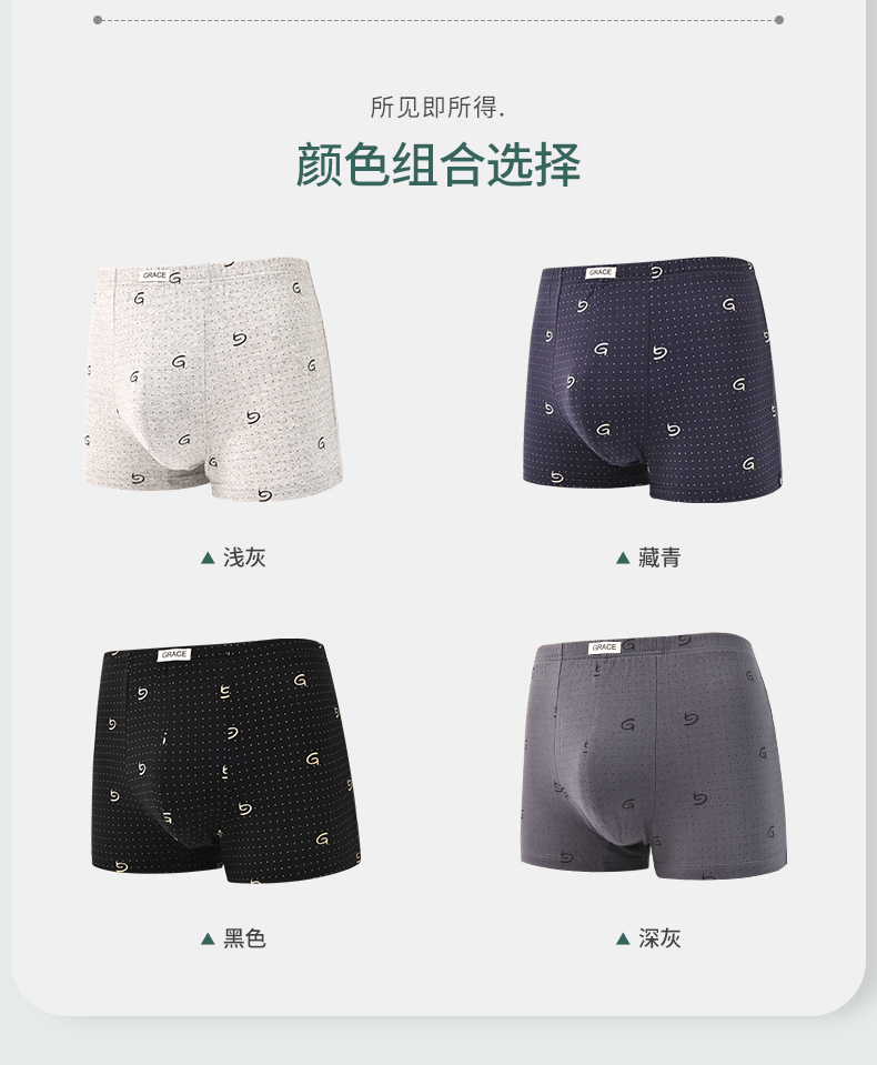 洁丽雅4条装纯棉大码男士内裤简约印花运动休闲中年平角裤衩裤头