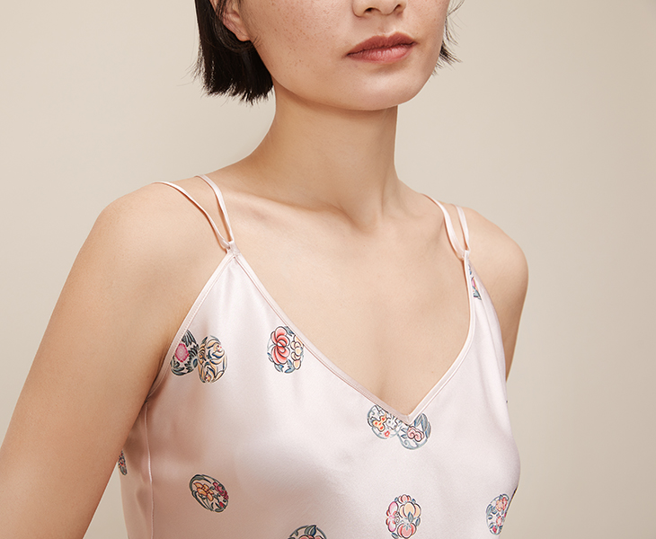 A型下摆,45度斜丝剪裁,衬托腰部纤细感,拉长身材比例,灵动飘逸。