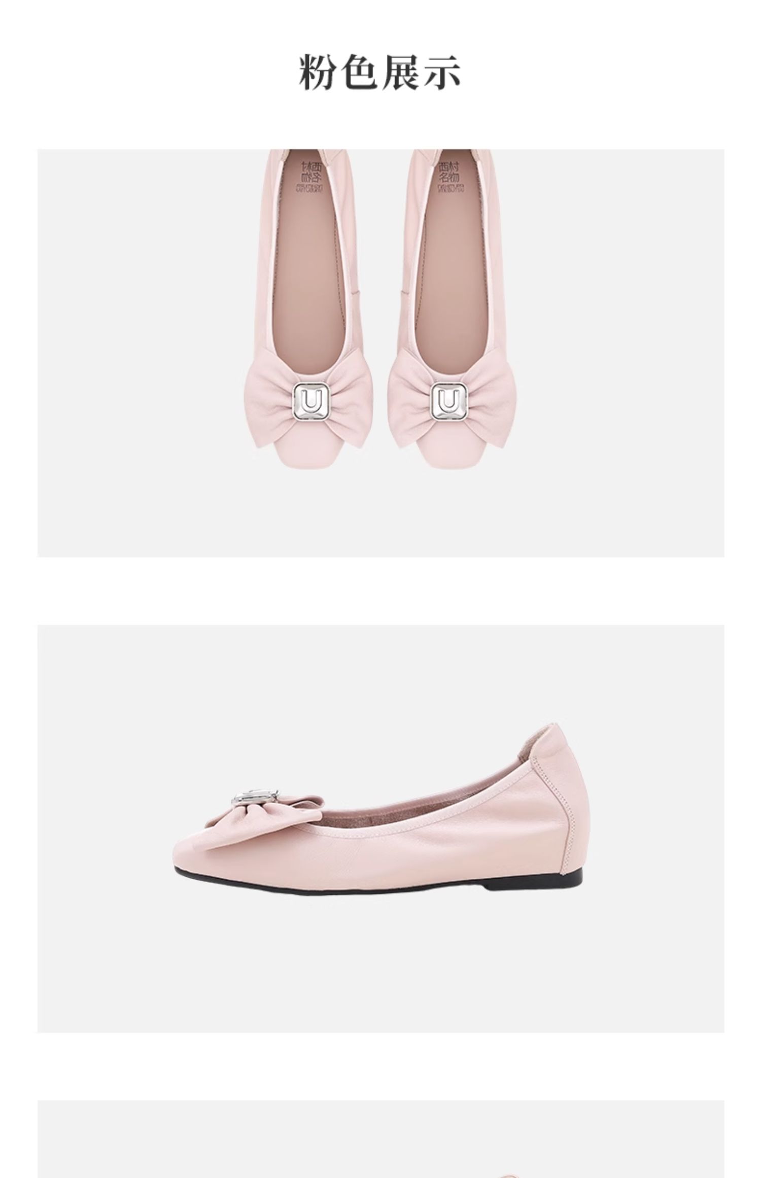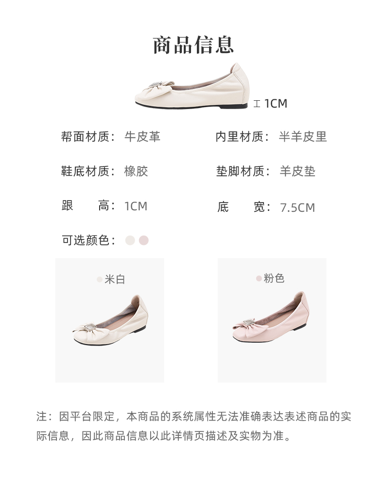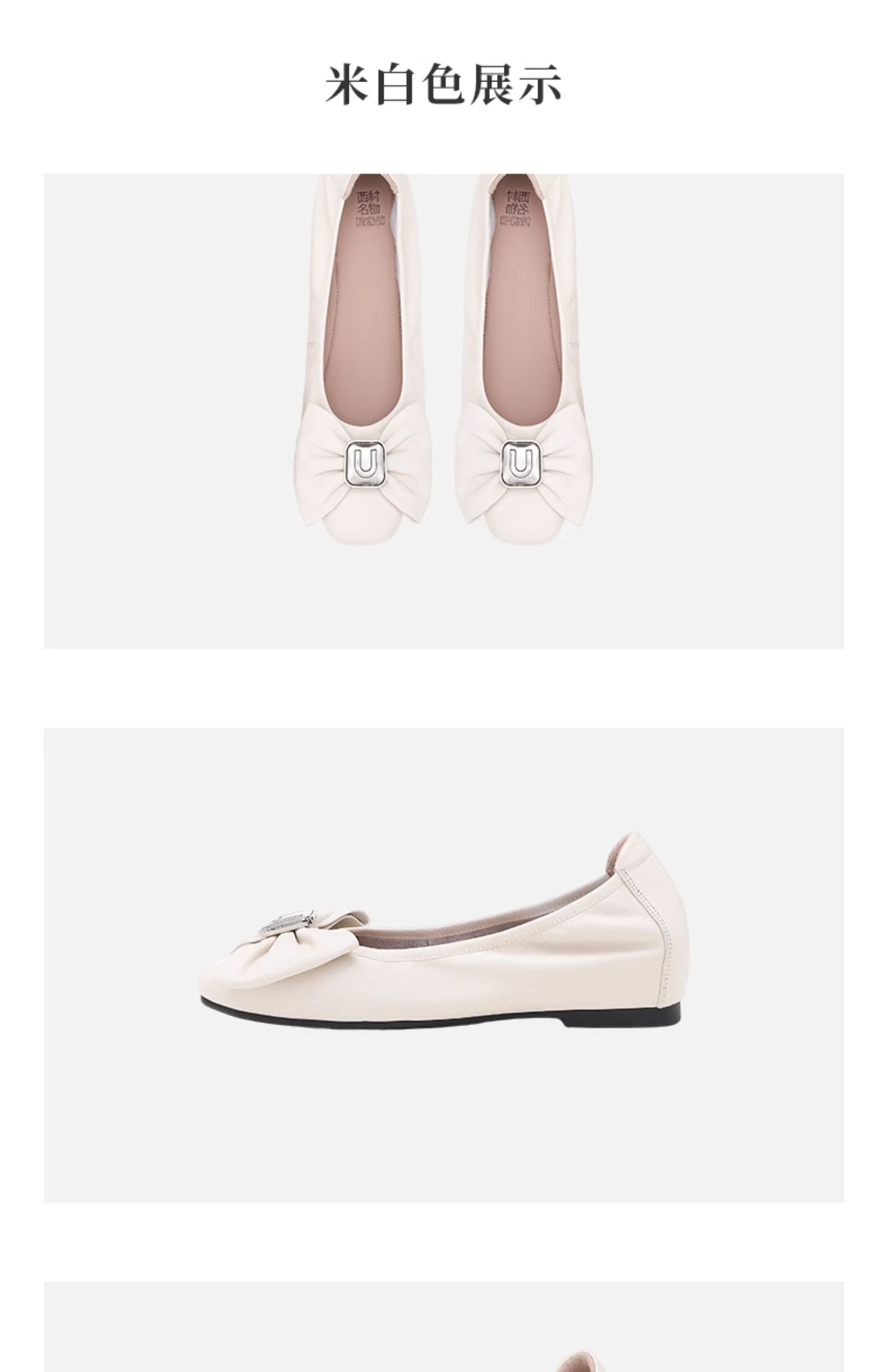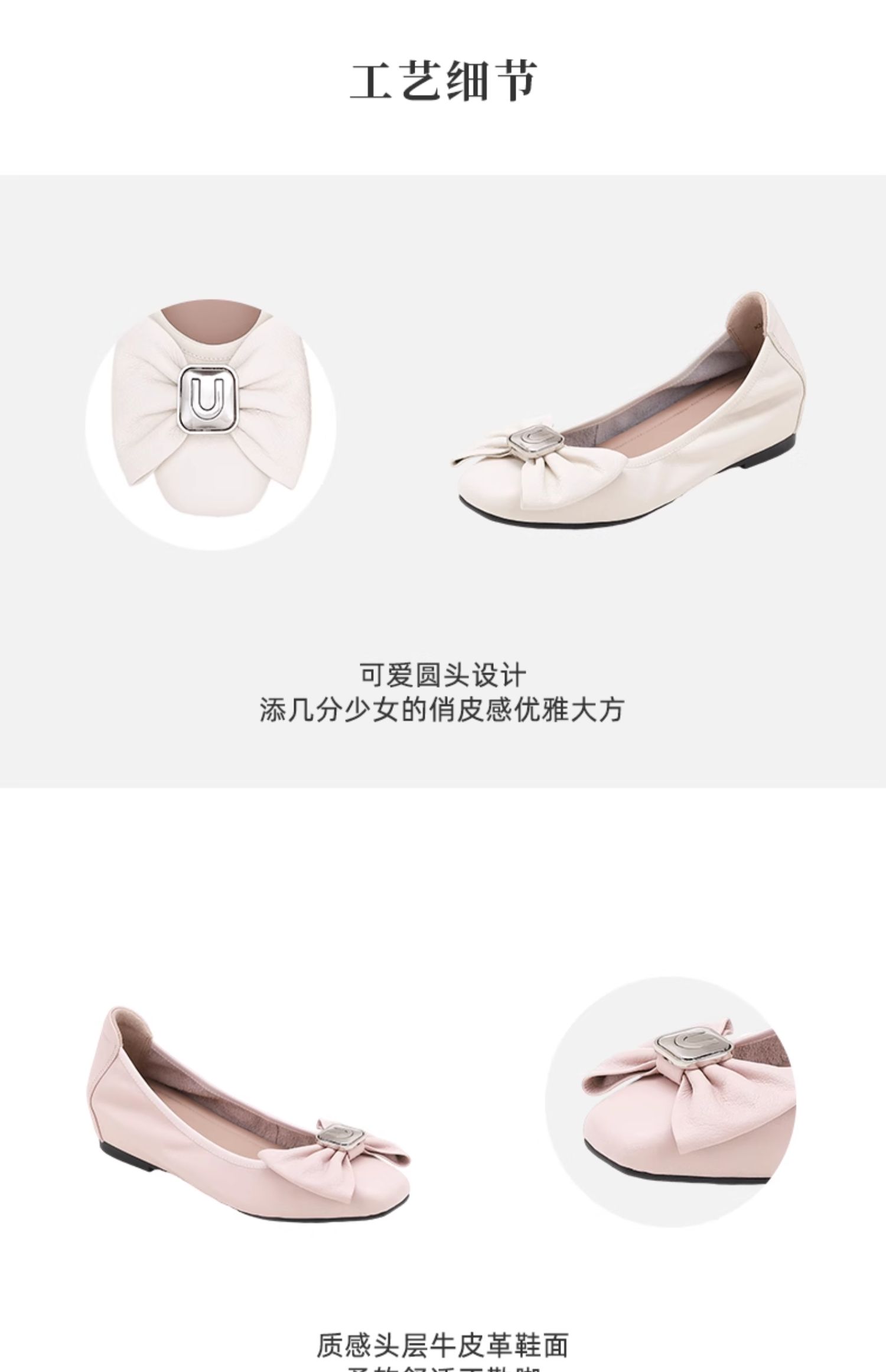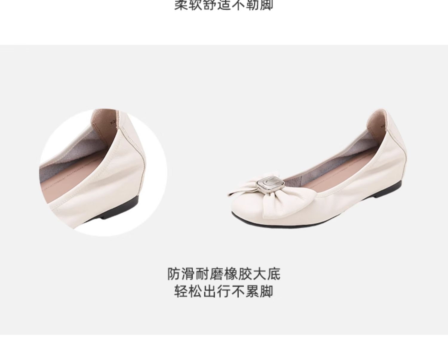 西村名物2024夏季新品法式浅口平底真皮软底小香风蝴蝶结单鞋女X24CE37721
