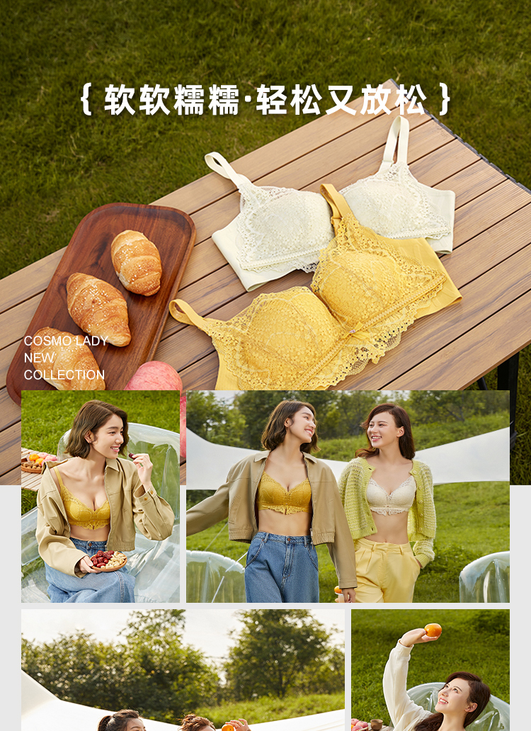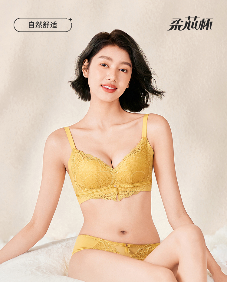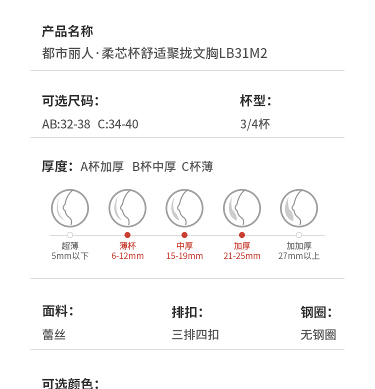 笔笔同款都市丽人自然舒适ABC杯适穿软泡芙蕾丝内衣三种厚度3/4杯常规文胸无钢圈三排扣新年本命年红品LB31M2