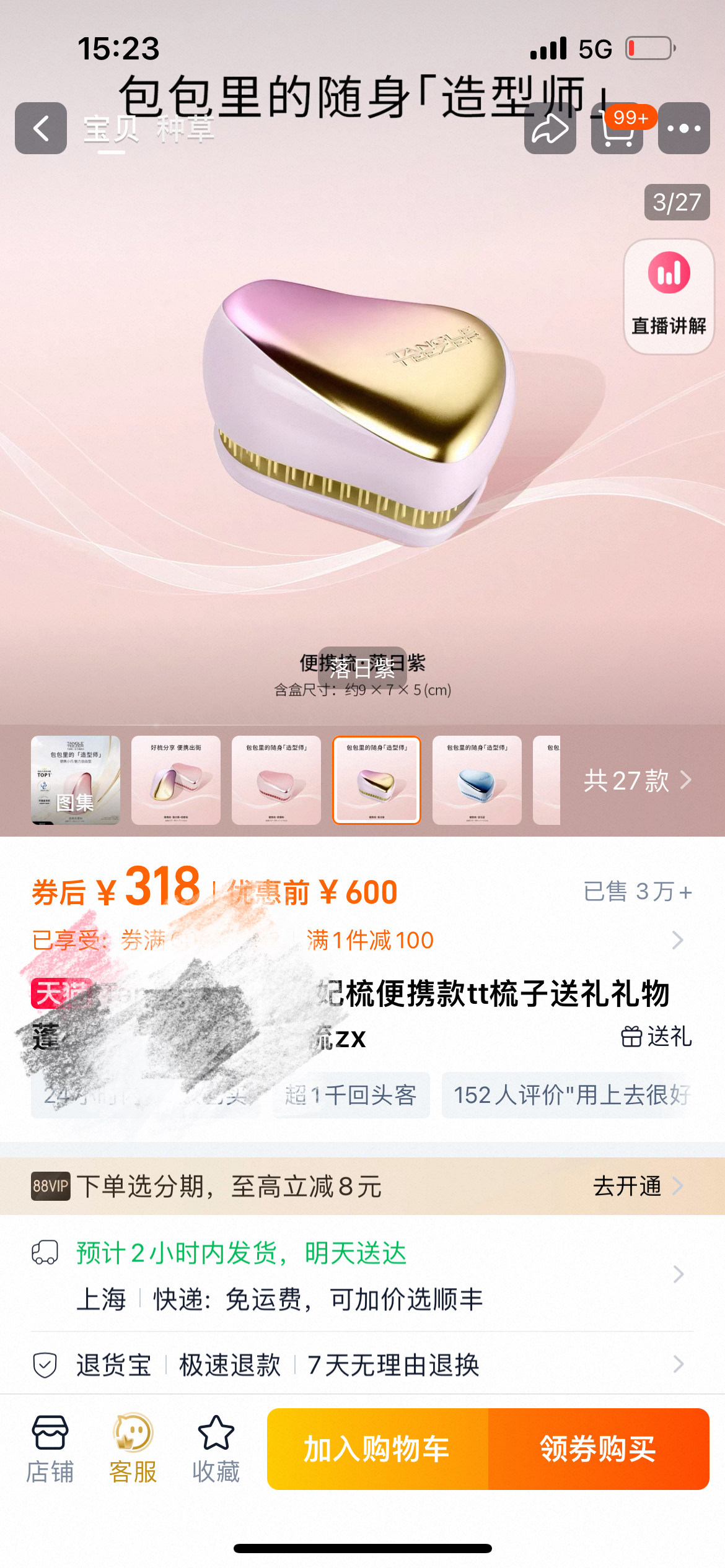 你们一直找我要的王妃梳来了~ 完全不会拉扯头皮 梳头发无头痛 巨好用! 平时放在包包里 随时随地整理头发 女孩的刚需! 自用款宠粉福利19.9元 给大家体验一下😘