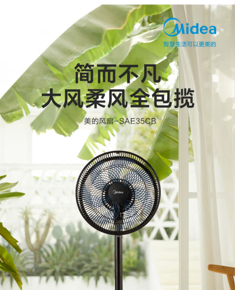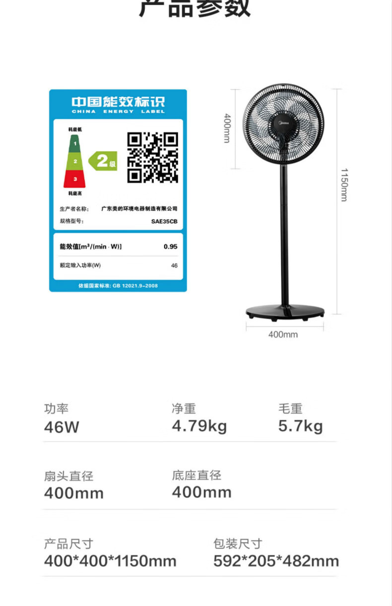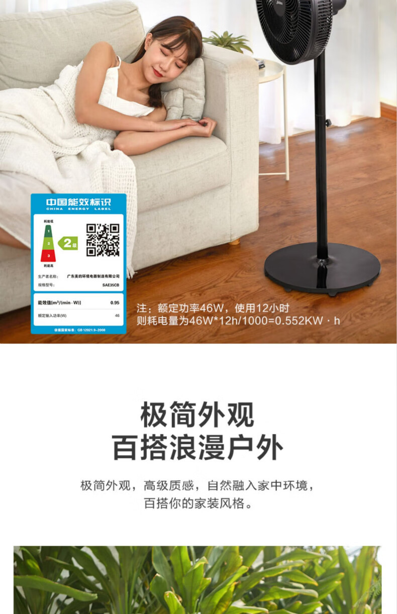 美的 14寸7叶大风力落地扇立式节能电风扇SAE35CB黑色