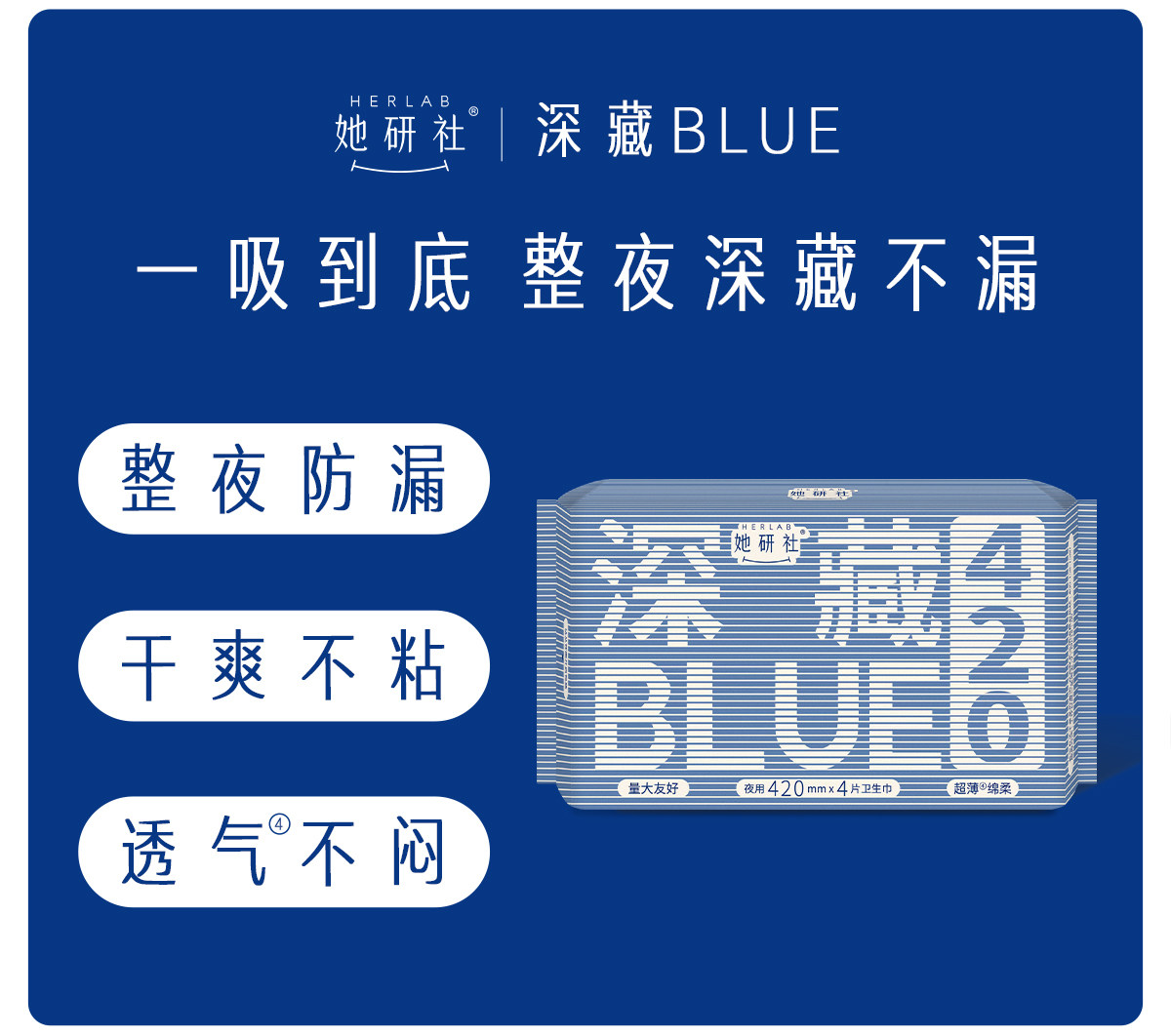 Herlab她研社 深藏BLUE棉柔卫生巾420mm*4片装