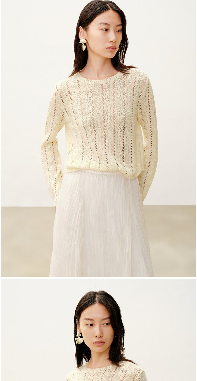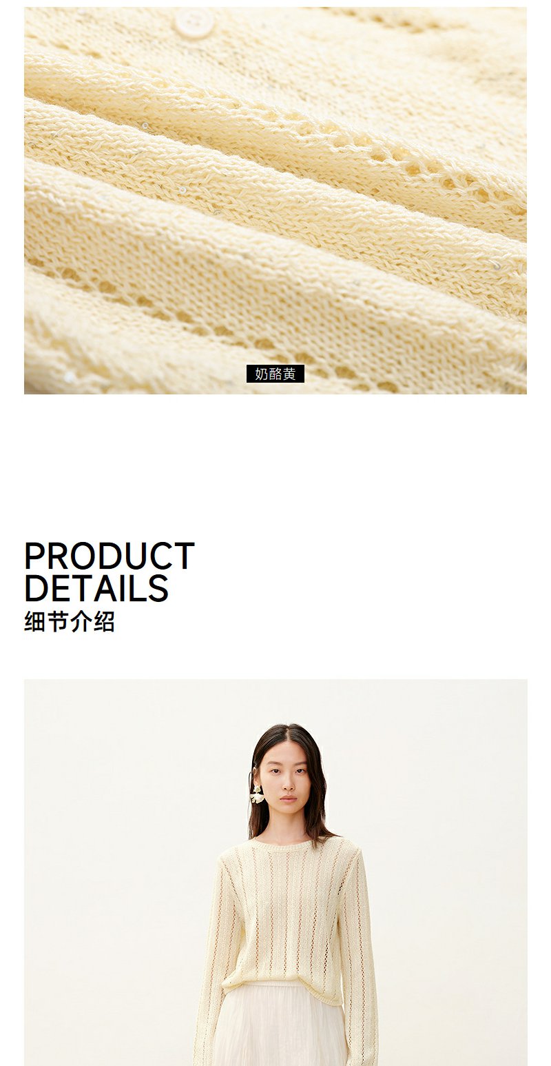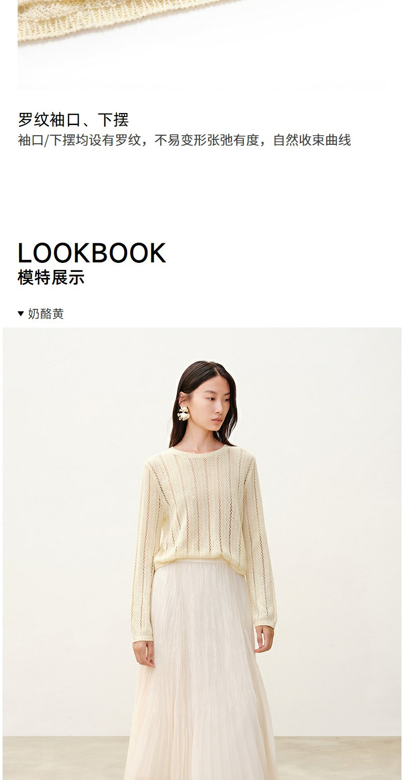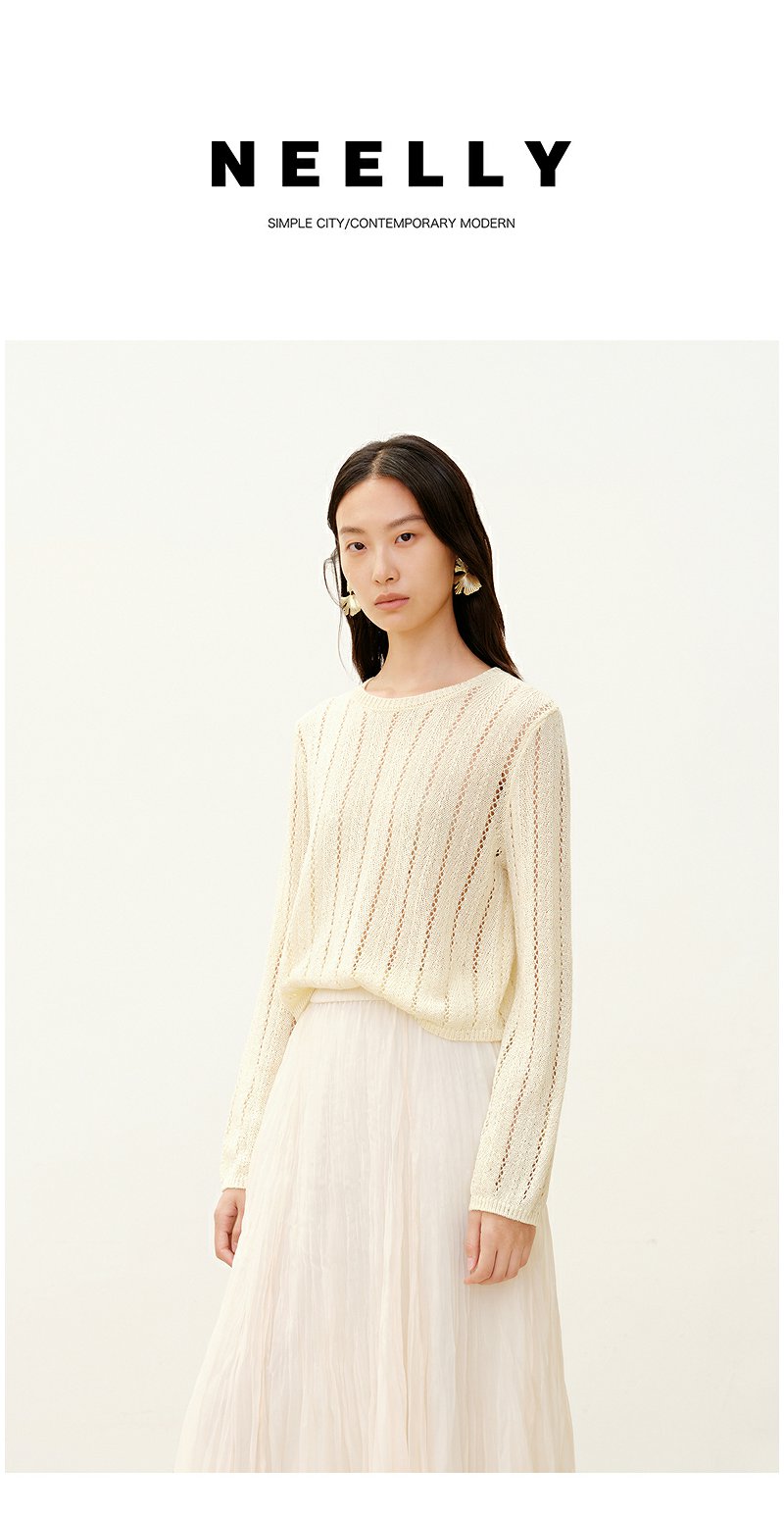 NEELLY纳俪商场同款秋季新款显白微暖镂空针织衫女宽松舒适上衣N25081A01053