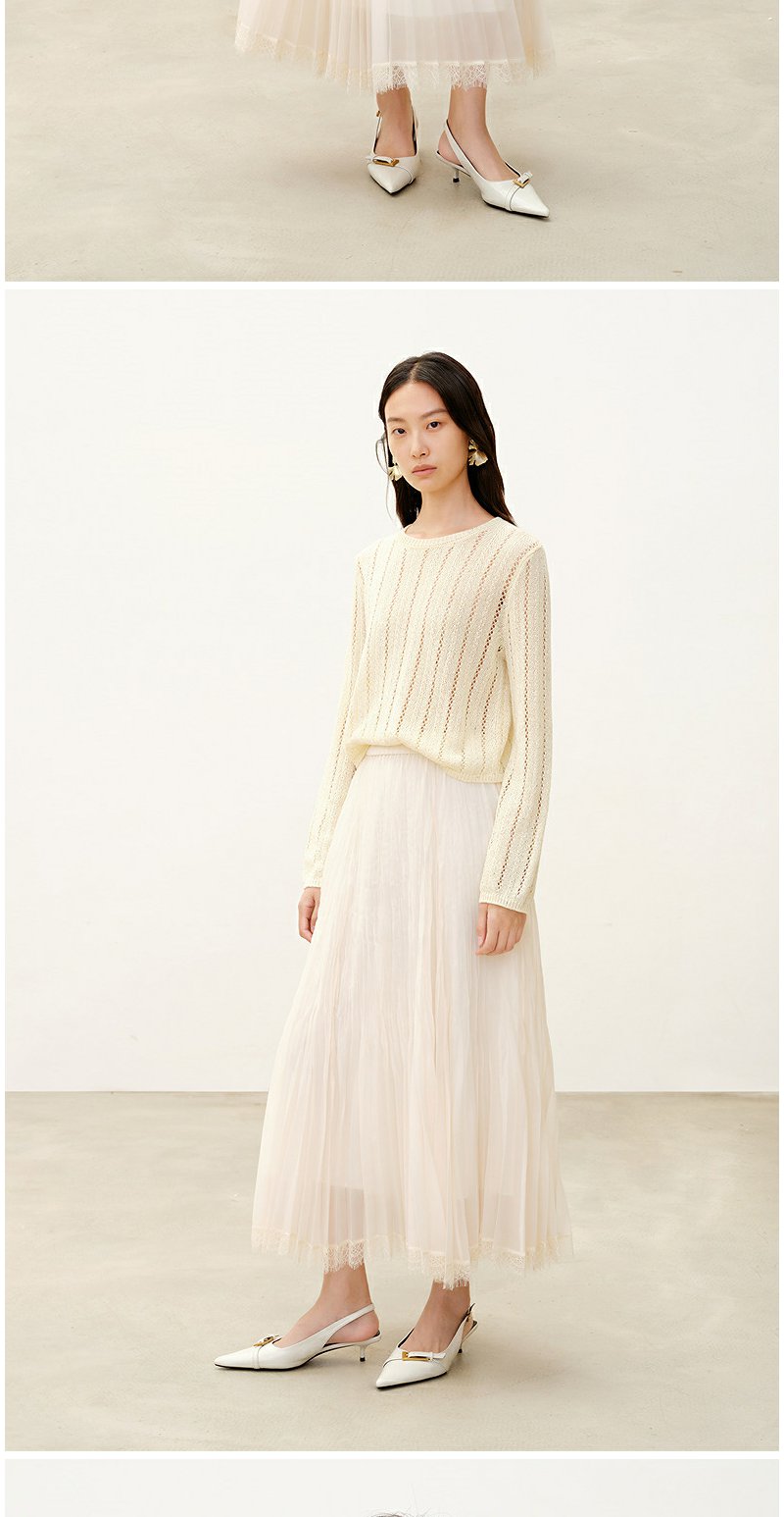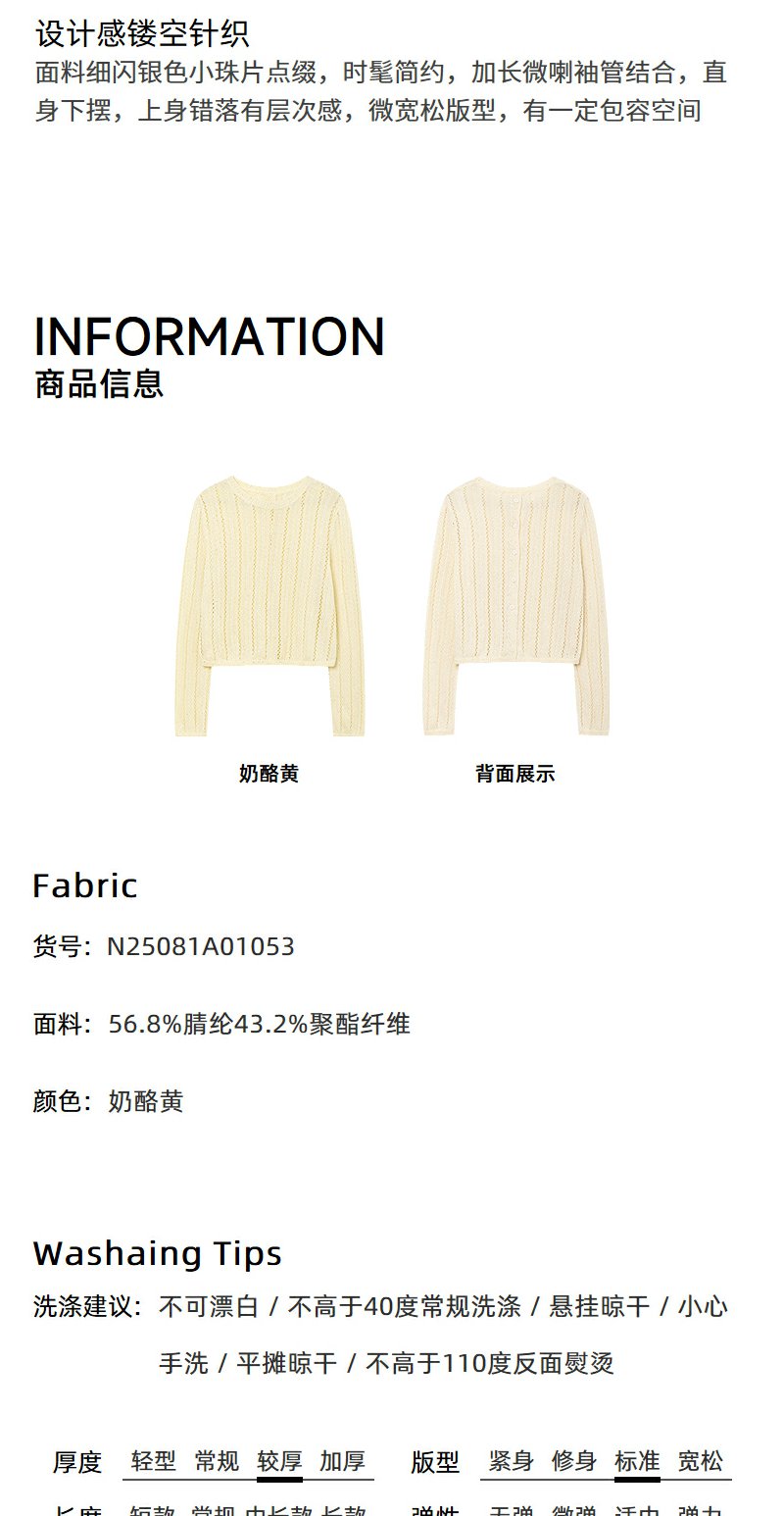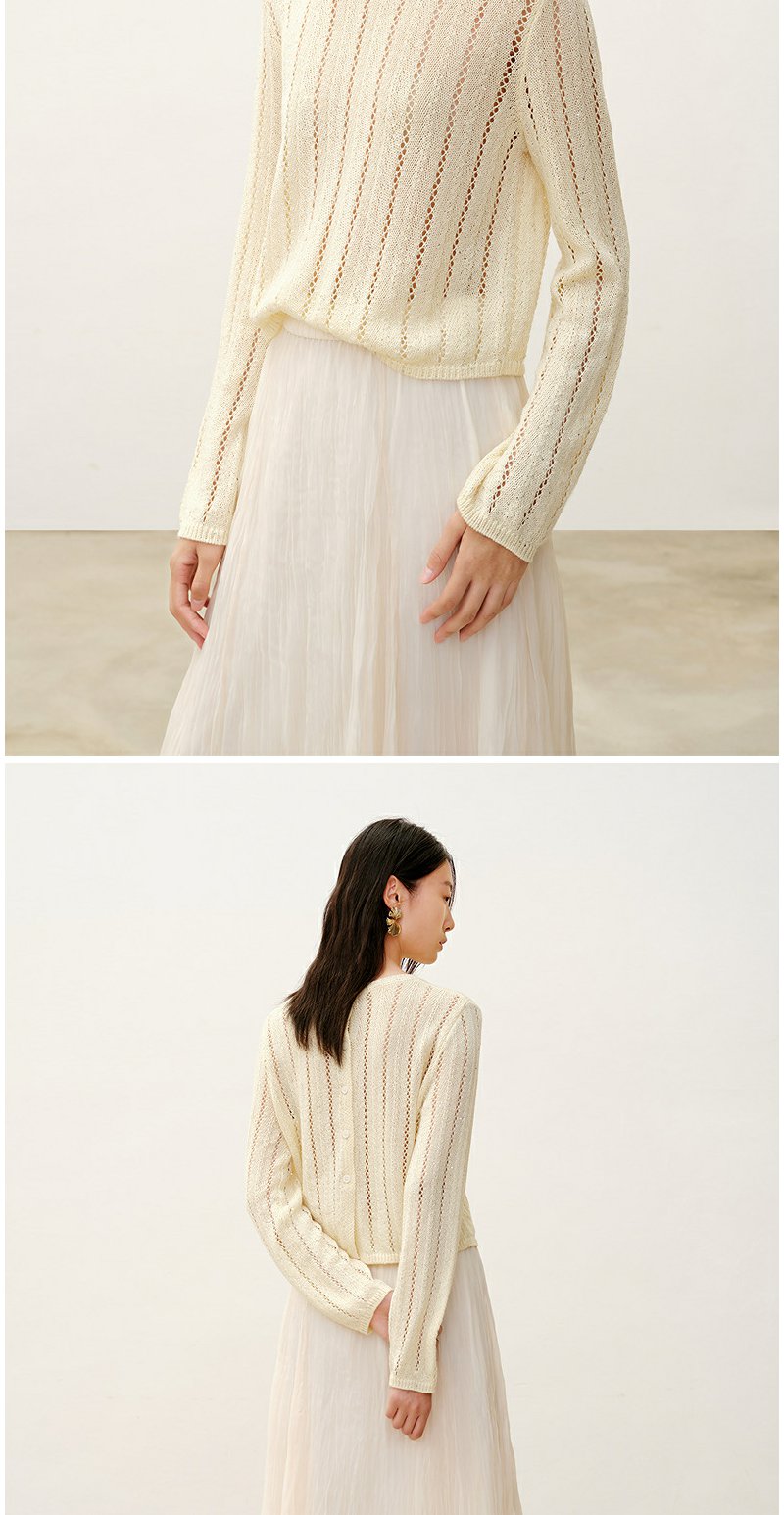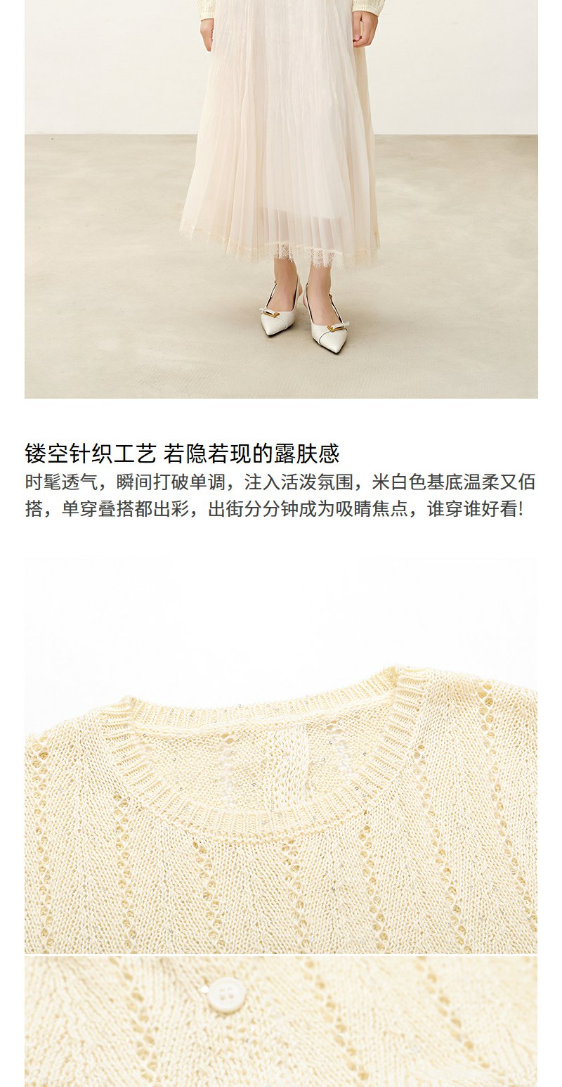 NEELLY纳俪商场同款秋季新款显白微暖镂空针织衫女宽松舒适上衣N25081A01053