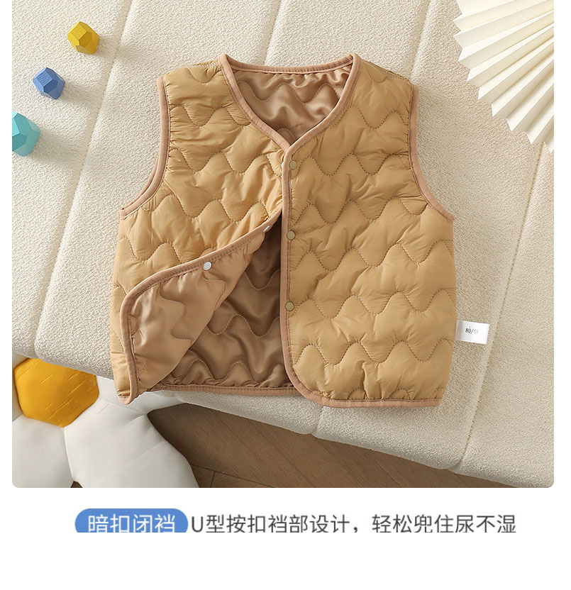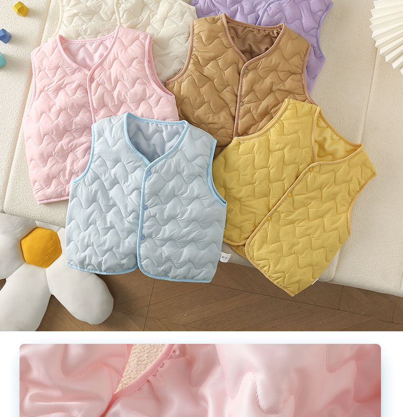 【49/任选2件】韩版宝宝冬季新款夹棉保暖外出幼儿波浪纹暖背外出马甲聚