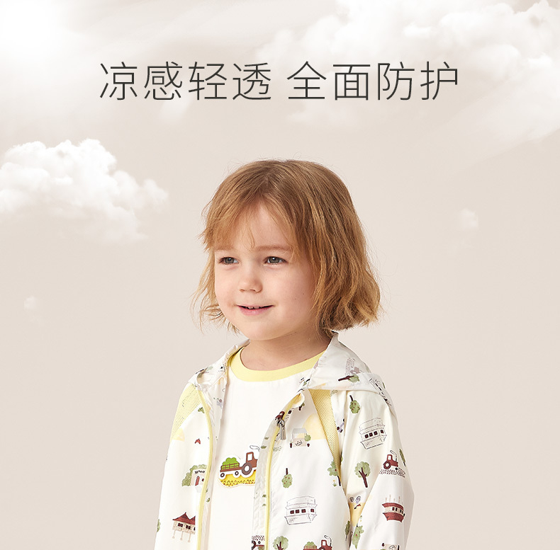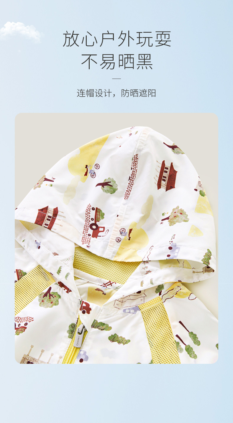 英氏儿童外套防晒衣防紫外线男童连帽短款外套春夏款YRWGJ1P240A